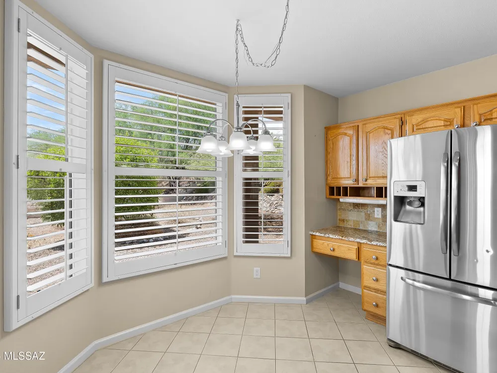Stunning views in a tight knit community against the Catalinas? Welcome to the highly desirable SaddleBrooke! This beautiful two bedroom two bathroom home is in the heart of it all! Large, open formal and living rooms allow for lots of room for grandkids or friends to gather. Beautiful desert-scape front and back yards to enjoy the incredible AZ winters! Spacious master bedroom with backyard access! Cozy kitchen with eat in dining and formal dining. Plantation shutters add a bonus element of sophistication to the space. Carpet where it counts and tile everywhere else. With resort-style amenities including clubhouse, creative arts& tech center, pools, dining, fitness, sports and social gathering facilities you are practically on vacation every day! We cannot WAIT to welcome you to the club