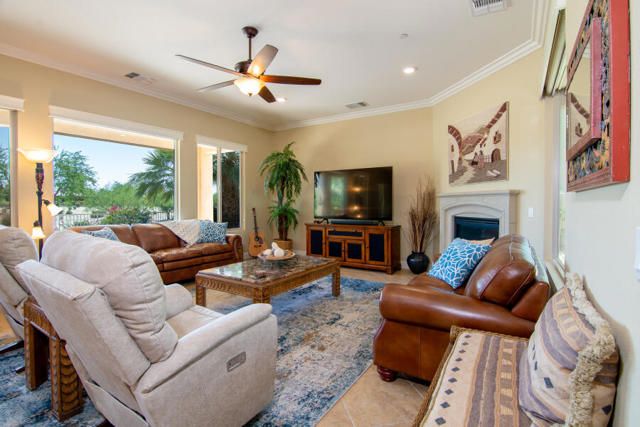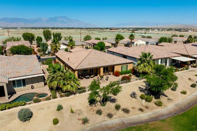 Unique Opportunity... This Lovely Californian Model is Highly Sought after... You'll Love the Premium East facing... Golf View off the 14th Tee on the Par 3 Executive Course! Beautiful Chocolate Mountains and Sonoran Golf View! A lovely Courtyard entry greets your guests. This ''Stunning'' Californian home features 2656 Sq Ft of Open and Inviting Space for Daily Living, & Relaxation! Conveniently located Atrium is great for extending your Gatherings & Ease in Entertaining! Enjoy 3 Bedrooms, 3 Baths, Spacious Great Room with a Fireplace! Custom Crown Moulding & Upgraded Baseboards, Neutral Tile through-out (Plush Carpet in Bedrooms). Gourmet Kitchen with Granite Counter Tops, plenty of Cabinets for Storage! Walk in Pantry! Roll Out Shelving! Formal Dining, plus a Large Breakfast Nook & Kitchen Island! Stainless Steel Appliances, Fridge Included! Butlers side pantry w/built in wine/beverage fridge! Primary Suite is King Sized, Beautiful primary Bath with Separate Tub & Shower, Dual Sink Vanity. Large Walk in Closet! Secondary Primary Bedroom is Queen Sized with Private Bath and Walk in Closet! 3rd Bedroom with walk in closet, Bath Adjacent. Patio with Covered Patio, Pavers, & Fire Pit... Enjoy the everchanging ''Chocolate Mountain'' views! Large 8712 sq ft lot, there is room to build a Lap Pool/Spa- However there are 2 Clubhouses with Pools, Spas & an Indoor Pool/spa! 3 Car Tandem Garage is oversized, plenty of room for storage, cars & a Golf Cart! Garage Epoxy Flooring! Tankless Water Heater. Don't delay, this home is priced to Sell, Motivated Seller! Sun City Shadow Hills offers the Best in Retirement Living, Over 60 clubs, Social Events... Concerts, Performing Arts, Excursions & So Much More! Banquet Room w/Catering Kitchen, Billiard Room, Craft/Music room(s), Library, 2 Fitness Centers, Bistros, Restaurant, 2 Golf Courses, Putting Greens, Driving Range, Tennis, Pickle Ball, Boccie/Shuffleboard, Doggie Parks, Walking trail w/pond views! Nearby Shopping, Dining, Entertainment, Acrissure Arena, and low HOA dues... make this Community an Ideal Choice!