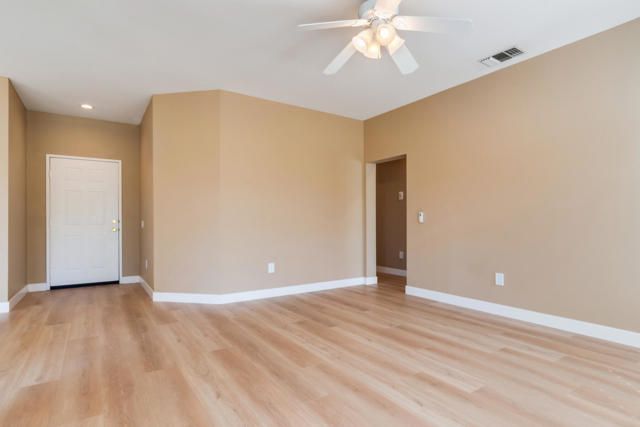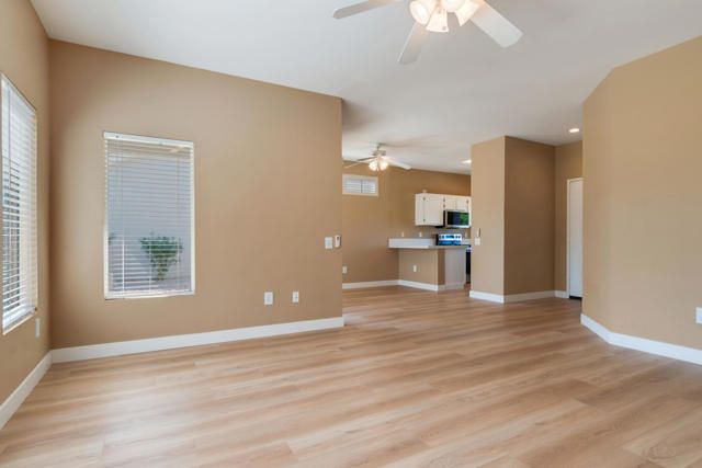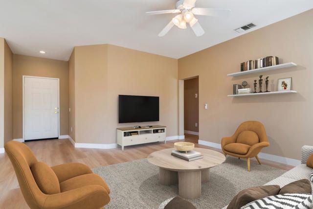 Welcome to a beautifully renovated 2-bedroom, 2-bath home in Sun City Palm Desert, an active 55+ community designed for vibrant, healthy living. This open-designed Limoges model offers the privacy of a house with the carefree feel of a condo. The kitchen boasts quartz countertops and new stainless steel LG appliances. Both bathrooms feature quartz countertops and modern fixtures. New luxury vinyl flooring, baseboards, interior paint, window coverings, and new LG washer and dryer complete the upgrades. The spacious primary bedroom includes an en-suite bath with an enclosed shower and tub, plus a walk-in closet. The second bedroom can serve as a guest room or office. The guest bath offers an oversized walk-in shower. Located near scenic greenbelts, walking trails, and two golf cart gates providing easy access to shopping, this home supports an active lifestyle. Community amenities include pools, fitness centers, golf courses, tennis courts, and a busy social calendar with clubs and events. HOA dues cover exterior maintenance, roof repair, gardening, premium cable TV, and high-speed internet, offering low-maintenance living.Don't miss this rare chance to live affordably in Palm Desert's most sought-after active adult community. Schedule your private tour today and start enjoying the active, carefree lifestyle you deserve!