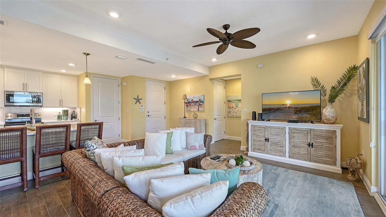 Welcome to Marina Walk at Harbour Isle, where coastal style meets everyday convenience just minutes from Anna Maria Island’s award-winning beaches. This newer 2-bedroom, 2-bath condo was professionally decorated and furnished by the original owner in 2020, lightly used, and offered turnkey furnished with over $50,000 in designer furniture and artwork included. The open floor plan is filled with natural light and features tile flooring throughout, a modern kitchen with quartz countertops, stainless-steel appliances, and soft-close cabinetry, plus plantation shutters and custom slider blinds. The split-bedroom layout provides privacy for guests, and recent updates include a new HVAC system (January 2025). Additional highlights include generous closet space, a private storage unit for beach gear, and covered under-building parking. Marina Walk residents enjoy a heated pool, splash pad, and playground, along with full access to the Harbour Isle Beach Club—featuring a resort-style heated pool, cabanas, fire pits, kayak launches, fitness center, walking trails, and the popular Sky Bar & Restaurant overlooking Anna Maria Sound. Located just one mile from Anna Maria Island, with boating next door at the full-service marina, this condo offers an exceptional coastal lifestyle. While never rented, 5-day minimum rentals are allowed, making it ideal for personal use, investment, or both. Move-in ready and perfectly positioned—schedule your private showing today.