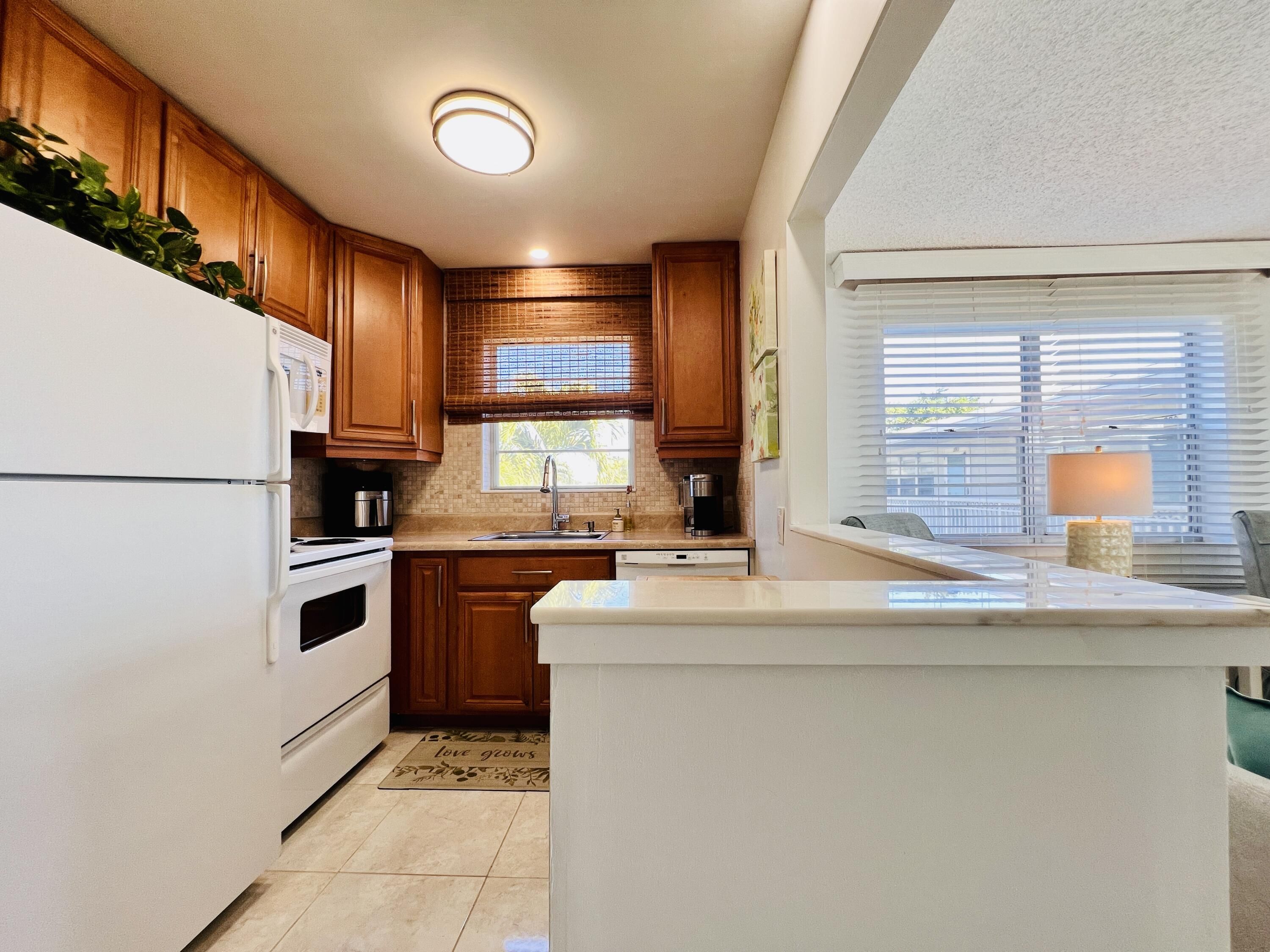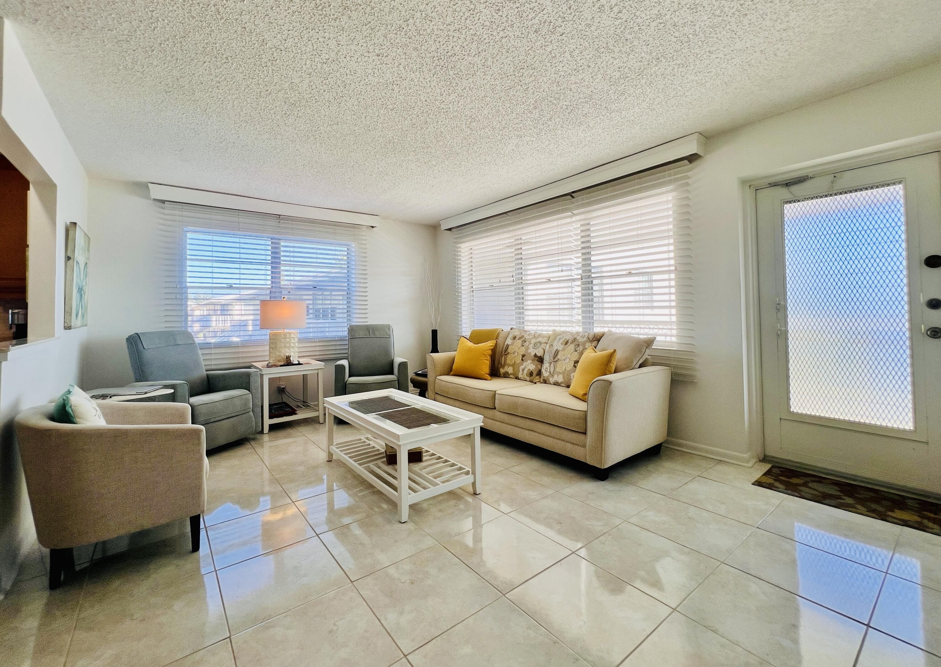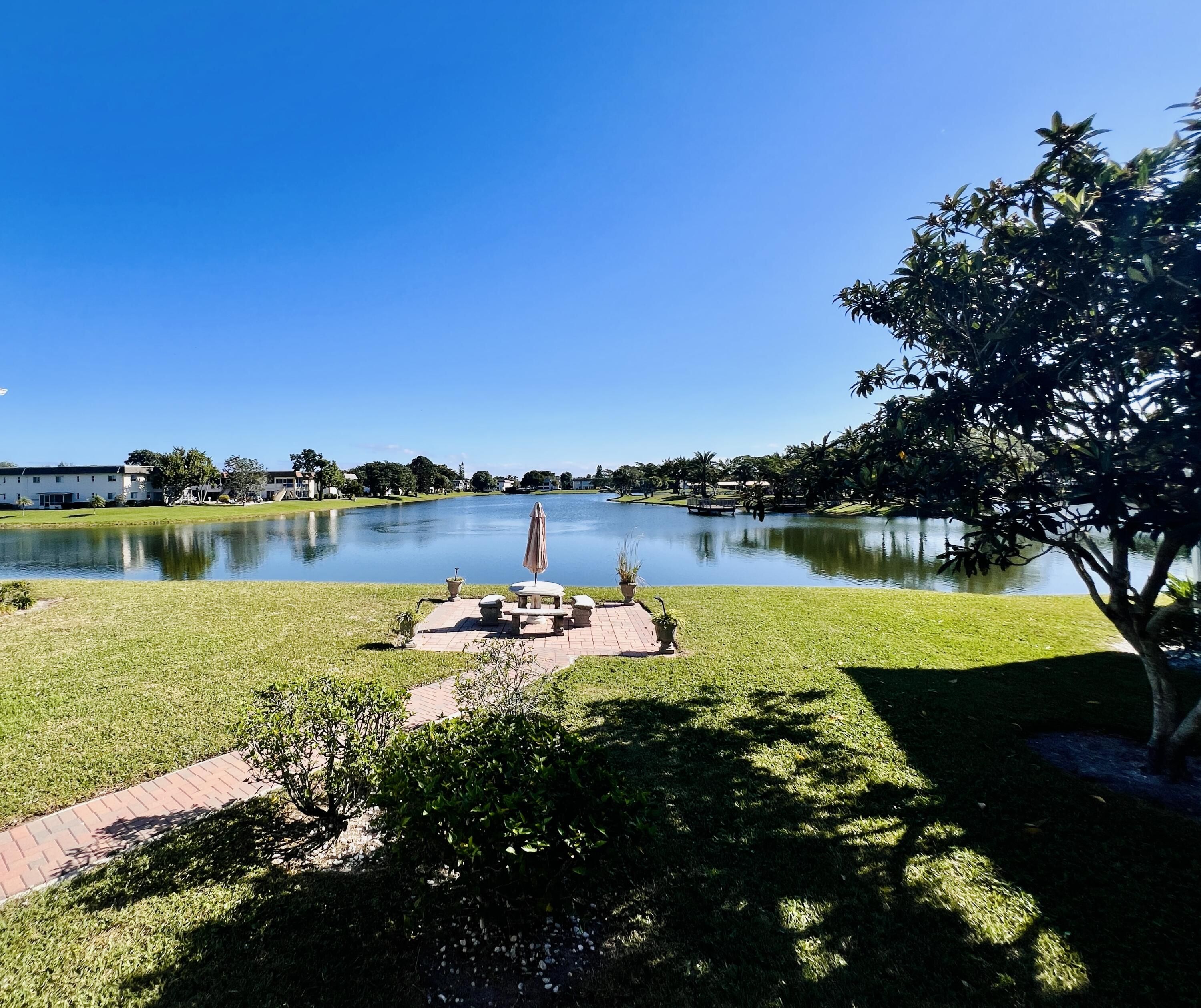 GORGEOUS IN 55+ CENTURY VILLAGE! Move In Ready Beautifully Updated CORNER 1/1.5 With Water Views From the Living Area! Cheerful & Bright Open Concept Living Area With Gleaming Tile Flooring. Pretty Updated Kitchen Opens to the Living/Dining Area. Updated Baths. Lovely & Spacious Bedroom Suite With Wall of Closets, Full Updated Ensuite Bath With Step-in Shower, and Access to the Enclosed Lanai. Seasonally Used Tasteful Furnishings & Contents Are Included in the Sale. Chatham S Is A Lovely Building With Two Waterside Resident Patios, a Lift, Second Floor Laundry, and a Fantastic Location! Century Village Is A Vibrant 55+ Community Centrally Located in Highly Desirable Palm Beach County, Florida! Enjoy Resort Style Living With Loads of Amenities and Activities... shows, movies, clubs, pools, security, and transportation service. The Clubhouse features a theater, indoor pool, card room, community/party room, billiard room, shuffleboard, tennis, pickleball, bocce, and two outdoor pools, Numerous heated outdoor pools throughout the community. Separate fitness center with gym and outdoor heated pool & resistance pool. Two guarded gates and 24-hour roving security patrol.