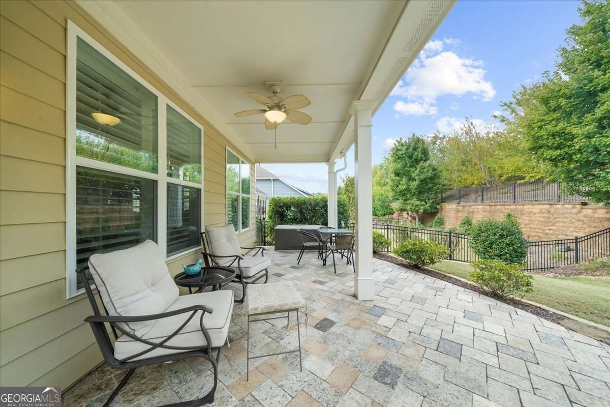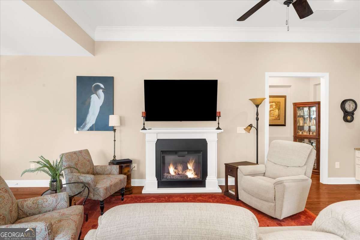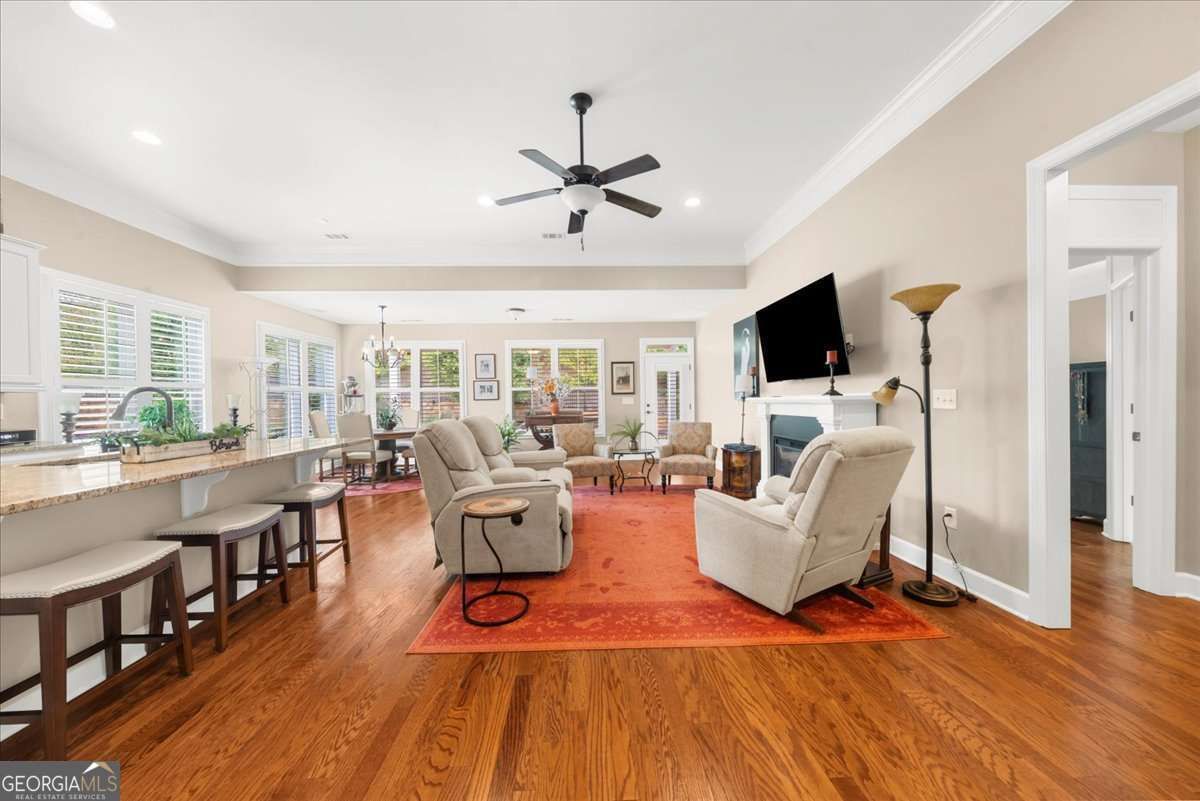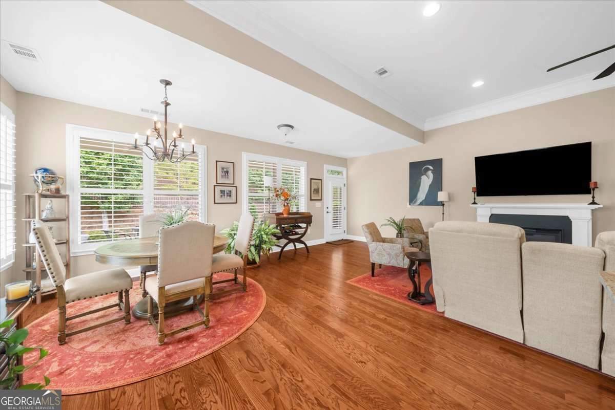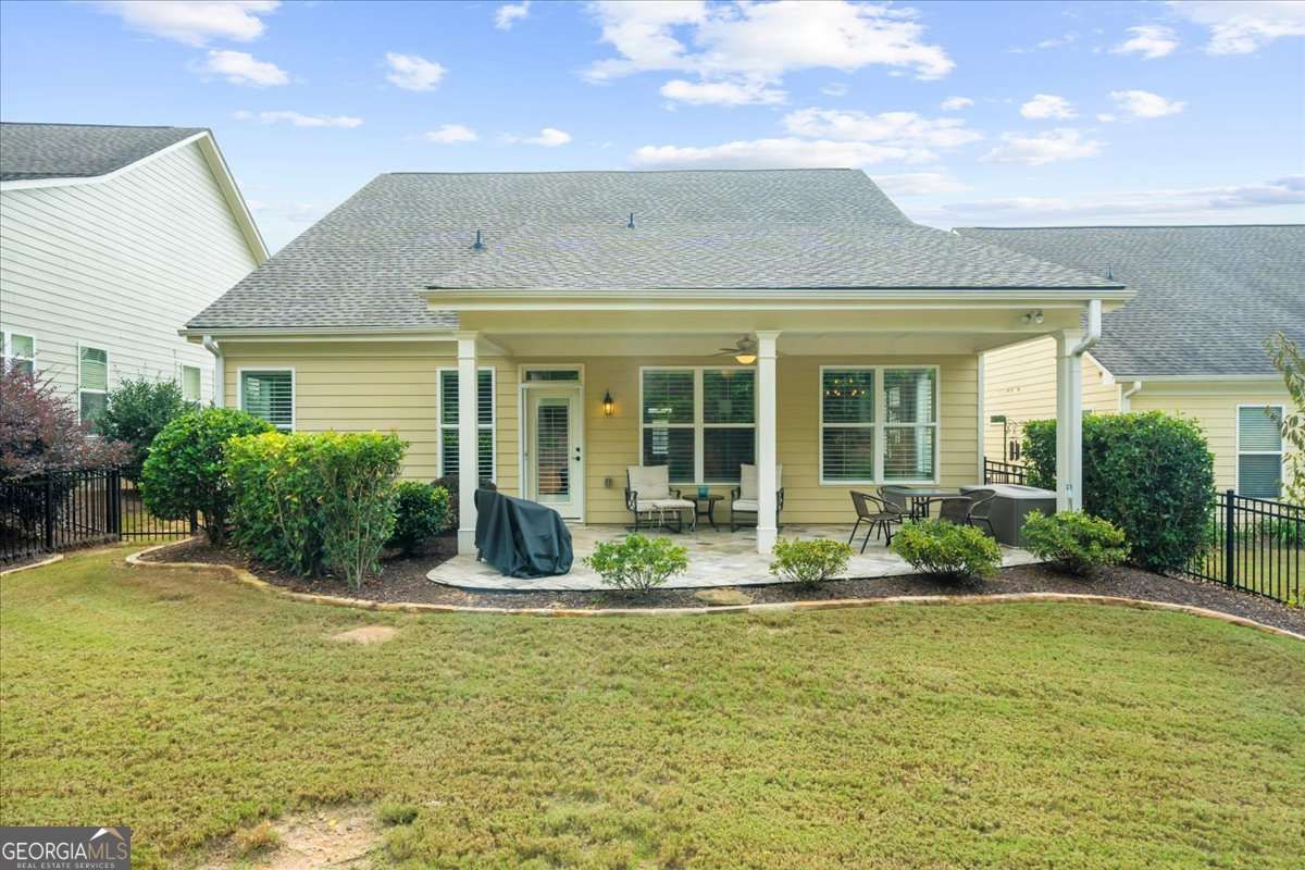 Welcome to the award-winning 55+ community of Cresswind at Lake Lanier. This meticulously maintained Beechwood model showcases pride in ownership and offers a comfortable living experience with 1,654 square feet of thoughtfully designed space. Interior Highlights include two spacious bedrooms, and two full baths, an open sunroom, spacious kitchen and dining areas and a cozy desk with a granite top and built-in bookshelves. An unfinished bonus room offers flexibility for storage or future customization. The interior features neutral paint colors, natural light that fills the home, complemented by crown molding in the great room and primary bedroom. Beautiful hardwood floors run throughout the living areas, while ceramic tiles enhance the baths and laundry room. Elegant plantation shutters are installed throughout, providing style and privacy. A glass and screened storm door let in fresh air when desired and offers views from the living room. An electric fireplace provides a warm and inviting ambiance. Kitchen features include desirable white cabinetry; attractive light granite countertops; stainless-steel appliances, featuring an electric range that is also plumbed for gas, a refrigerator and dishwasher. A spacious pantry provides plenty of storage for kitchen essentials. The spacious island features seating, a double sink, and a sleek stainless-steel dishwasher. The sizable primary bedroom suite is enhanced by a tray ceiling with a ceiling fan, contributing to both comfort and visual interest. The en-suite bath features a walk-in shower, dual vanities with drop-in sinks set in elegant granite counters, a double door storage closet and a spacious walk-in closet for ample storage. The secondary bedroom and bath are ideal for providing convenience and privacy for visitors. The home also features a 444 sq ft unfinished bonus room, perfect for additional storage needs. This space is plumbed for a bath, offering the opportunity to finish it for extra living space as desired. A generous laundry room includes cabinets and a sink for added functionality. Both the washer and dryer are included with the property, ensuring a seamless move-in experience. Step outside through the retractable screen door to a fully fenced, private backyard oasis. The large, covered patio, originally 8 ft, has been extended to 14.5 ft and is finished with beautiful granite pavers, stone edging, and river rock for effective drainage. A natural gas line is installed, making grilling on warm summer nights convenient and enjoyable. Lush landscaping surrounds the backyard, featuring trees, tea olives, hydrangeas, and additional plantings for a vibrant and inviting outdoor space. An extended garage provides extra space for vehicles or storage. A new roof was installed in 2024, ensuring peace of mind for years to come. The award-winning Cresswind at Lake Lanier boasts a 43,000 sq ft, 3-story clubhouse with indoor and outdoor pools, kayaking, fishing, courtesy boat docks, over 120 clubs, arts & crafts room, pickleball, tennis, indoor & outdoor pools, gym, dance & fitness classes, poker, games, billiards, plays, chorus, concerts, dances and more! An on-site activities director, property manager and maintenance crew keep everything running smoothly. The residents are welcoming, friendly and anxious to include new neighbors in all the activities! I have lived at Cresswind at Lake Lanier for 12 years and I know you will enjoy the Cresswind lifestyle!