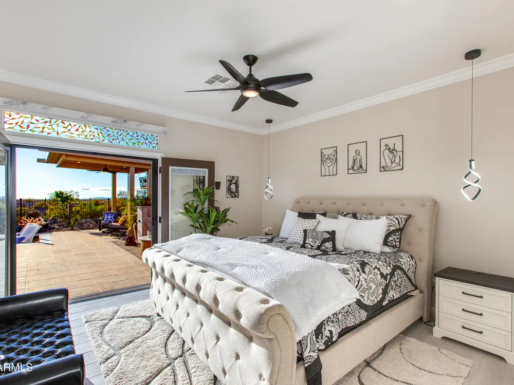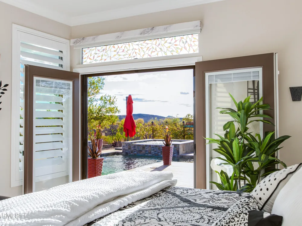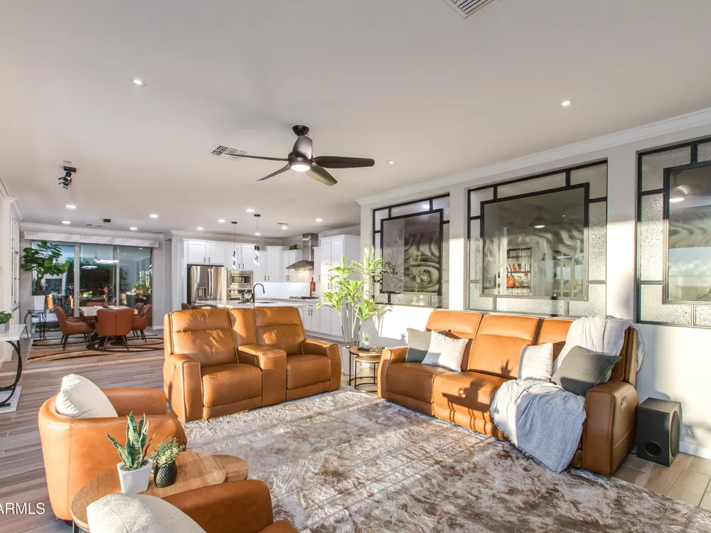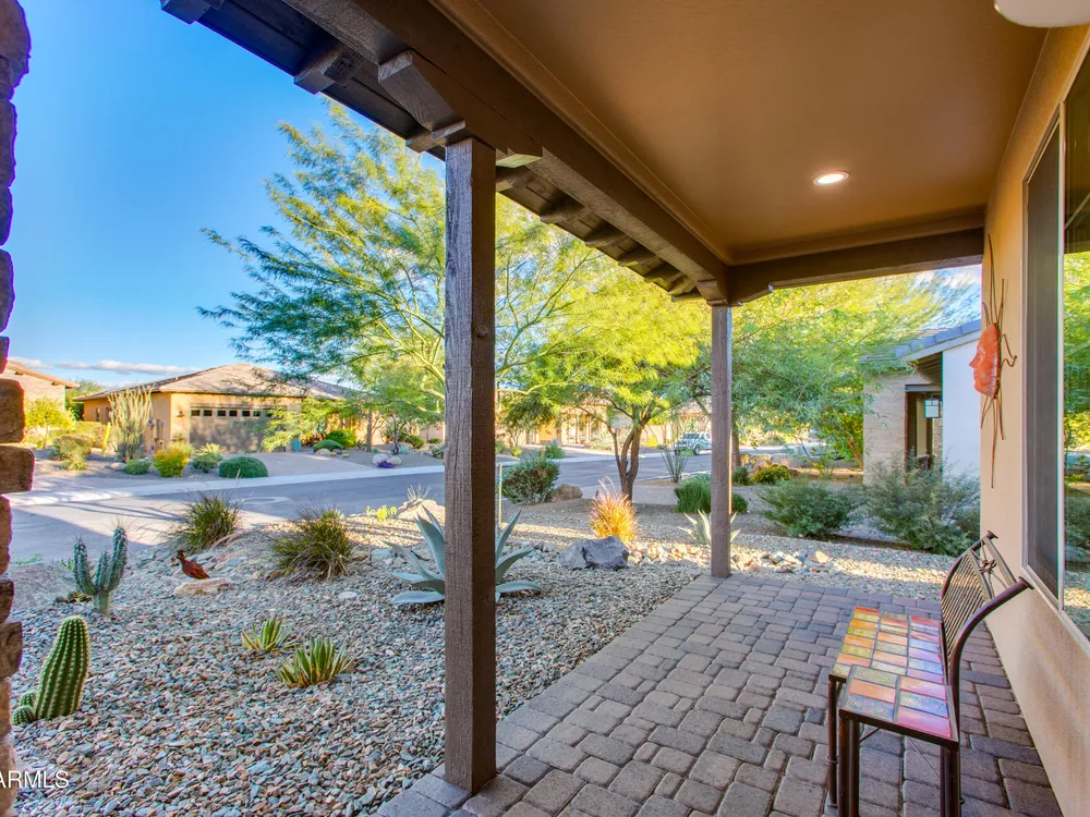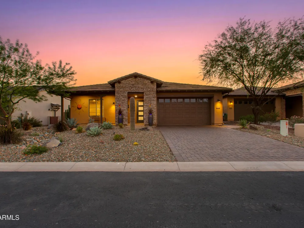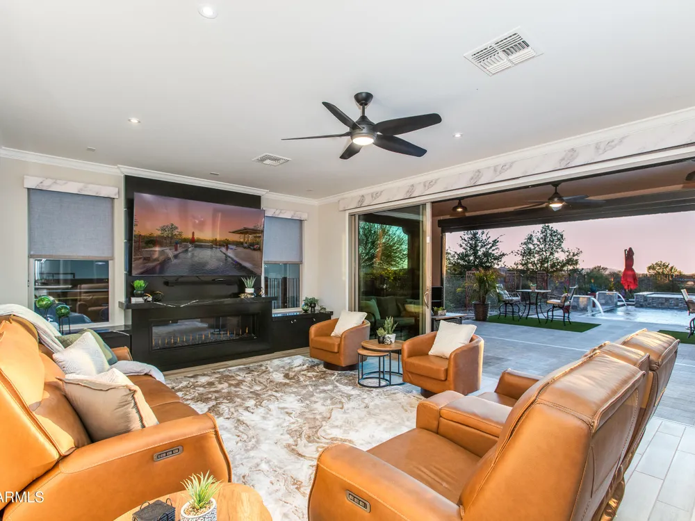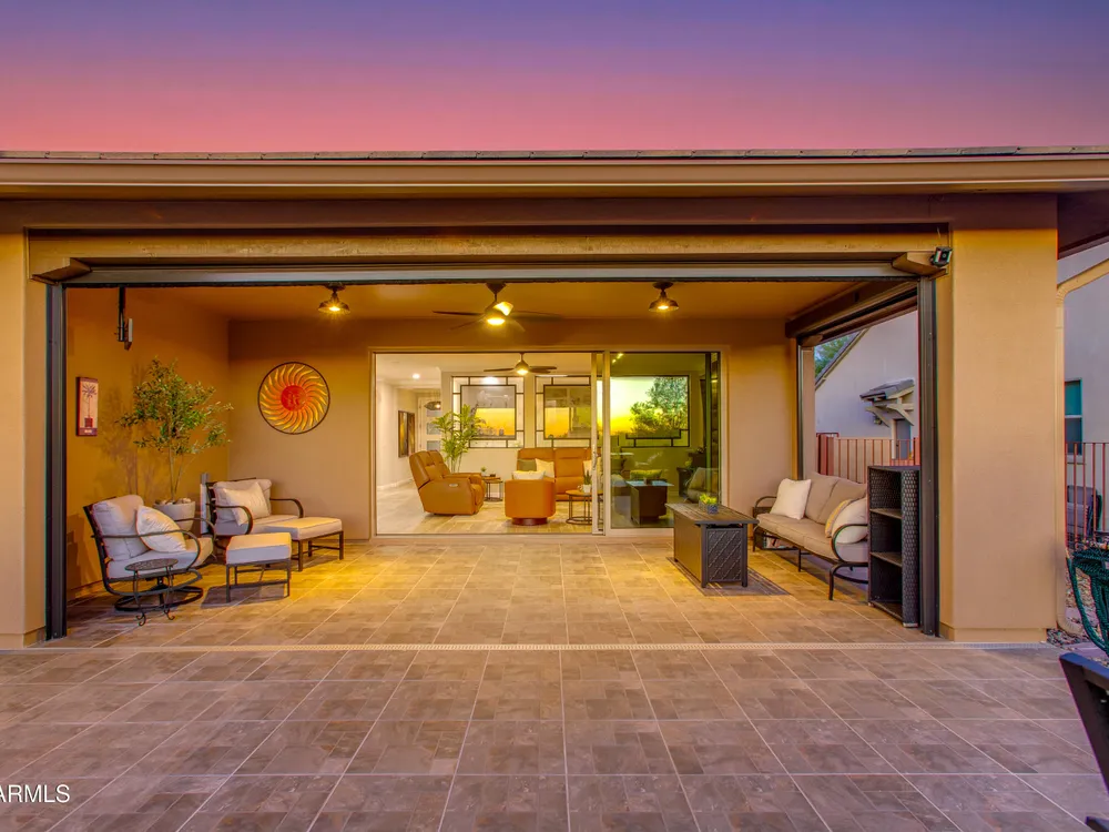 Turnkey opportunity! This beautifully remodeled Shea-built Cypress model comes fully furnished and includes a golf cart, making it truly move-in ready. Step outside to your custom-designed System pool and spa featuring a travertine surround, water features, and a spill-edge design—perfect for relaxing or entertaining while enjoying breathtaking Arizona sunsets. Upgrades abound inside and out, including Exterior Rhino Shield paint, fresh interior paint, and a LifeSource Whole-House Water Filtration System servicing every faucet, shower, and even the pool and spa! Enjoy outdoor living at its finest under the lighted pergola with ceiling fan, or beside the firepit with built-in half-moon seating, and surrounded by upgraded landscaping, including a custom fountain. The power shades enclose the patio to give you an additional serene outdoor living space looking out to the manicured yard, pool, and the sunset view. Inside, you'll find tile flooring throughout, custom glass office dividers with integrated lighting, French doors into the den, crown molding, a fireplace insert, dry bar, surround sound (inside & out), and motorized sunshades. Additional touches include epoxy-sealed garage floors, paver sealant refresh, and a custom front door glass insert with a COOL retractable screen. This home exudes comfort, quality, and style - a rare turnkey retreat ready to enjoy in Wickenburg Ranch!