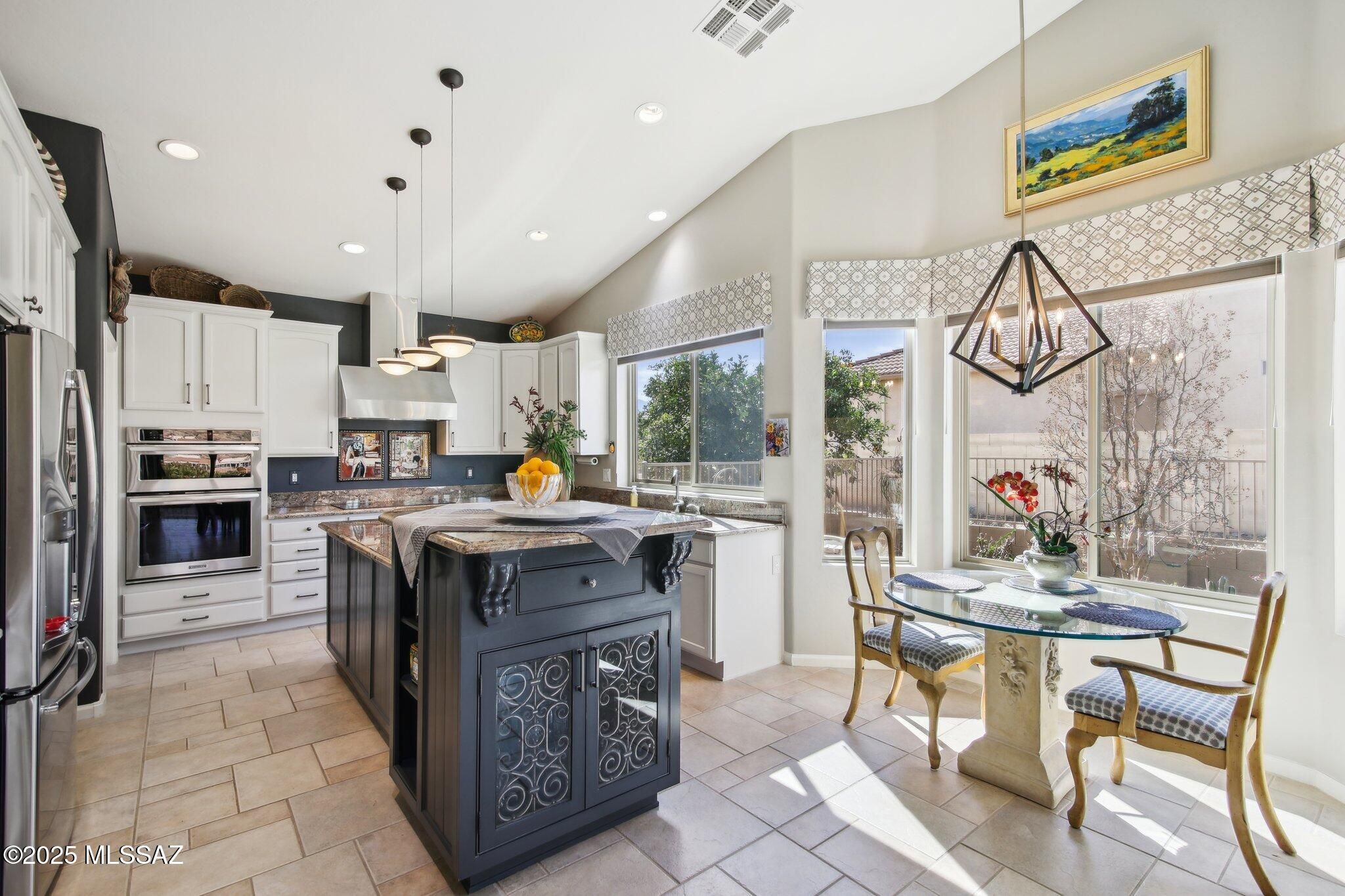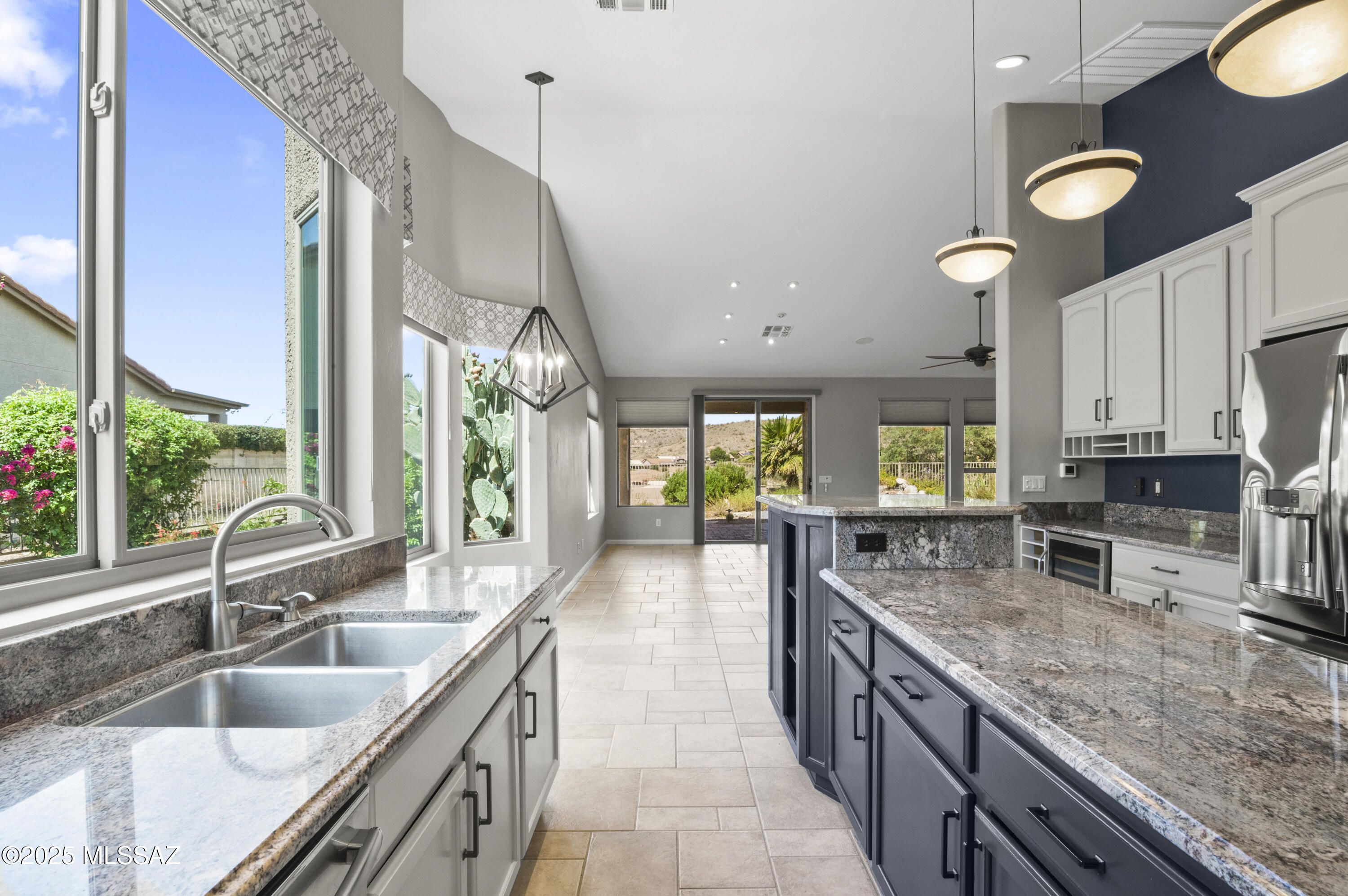 Fabulous PONDEROSA SaddleBrooke home on elevated lot w/golf course and desert mtn views overlooking 3 fairways. Lots of extras: wine fridge, raised kitchen bar area for entertaining, granite counters in kitchen/quartz in baths; extended kitchen area for casual dining/game table; rollout shelving throughout; gas fireplace; storage galore (with custom cabinets/master walk-in closet); custom glass French doors to office/den; large primary suite offers extended seating area, zero-grade glass shower and custom cabinetry; up & down shades & fans throughout; garage with paver drive to side golf cart garage and storage; casita with kitchenette, new vinyl flooring and paint - perfect for guests/studio;