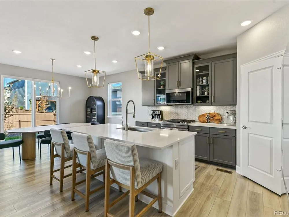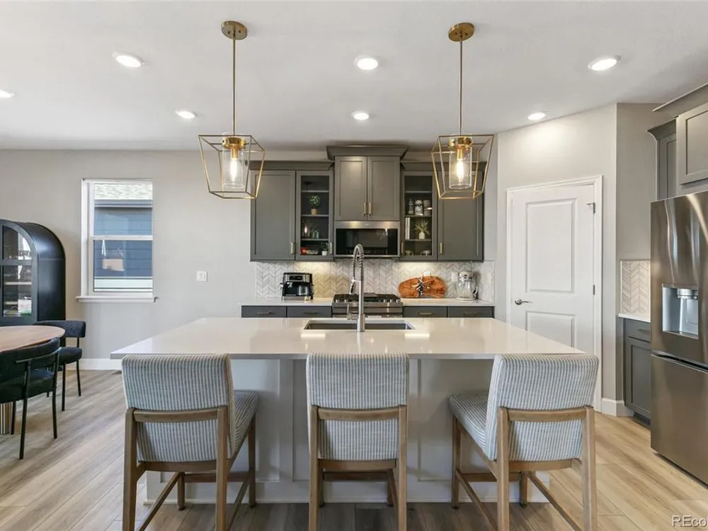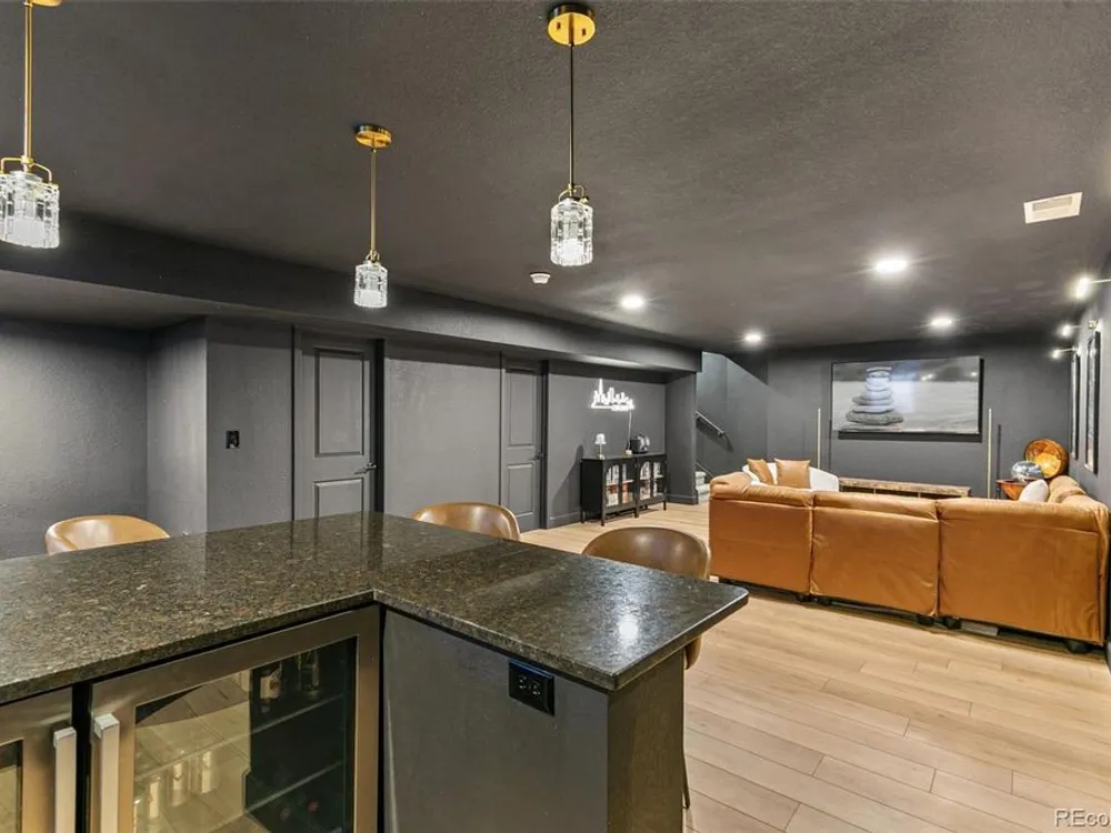 Modern Style Meets Everyday Comfort in This Castle Rock Gem! Welcome to 3885 Red Valley Circle — a stunning newer construction home that perfectly blends modern design, comfort, and efficiency. With eye-catching curb appeal, this home features durable cement siding, elegant stone accents, and a charming covered front porch that invites you right in.Step inside to discover a light-filled, vaulted floor plan designed for today’s lifestyle. The spacious main-level office, framed by beautiful French doors, offers the perfect place to work from home. The upgraded gourmet kitchen will impress even the most discerning cook, showcasing quartz countertops, high-end appliances, under-cabinet lighting, and sleek brushed gold fixtures that add just the right touch of modern luxury. An eat-in nook makes it the heart of the home, ideal for gathering with friends and family.Upstairs, the bright loft provides excellent flex space — perfect as a media room, play area, or easily converted into a fourth bedroom. The upper-level laundry adds everyday convenience. Downstairs, the finished basement is a showstopper, featuring a custom bar area and a sumptuous three-quarter bath — ideal for entertaining or relaxing in style. Enjoy Colorado’s sunny days in the large, fenced backyard with low-maintenance xeriscaping designed for energy efficiency and easy care.With thoughtful upgrades throughout, a modern open layout, and eco-friendly features, this Castle Rock beauty is move-in ready and sure to impress!