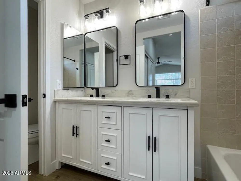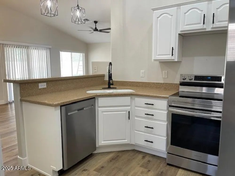 This is beautiful remodel 2 master bedroom 2 bath home in Pebblecreek with so many amenities. Golf, tennis, pickleball, indoor and outdoor pools, game room, dining, ballroom, fitness center and more. The home has a new electric stove, and it also has a gas stub or 220V for both the stove and laundry room. New vanities, toilets, all lighting and fan fixtures, counter tops and flooring.