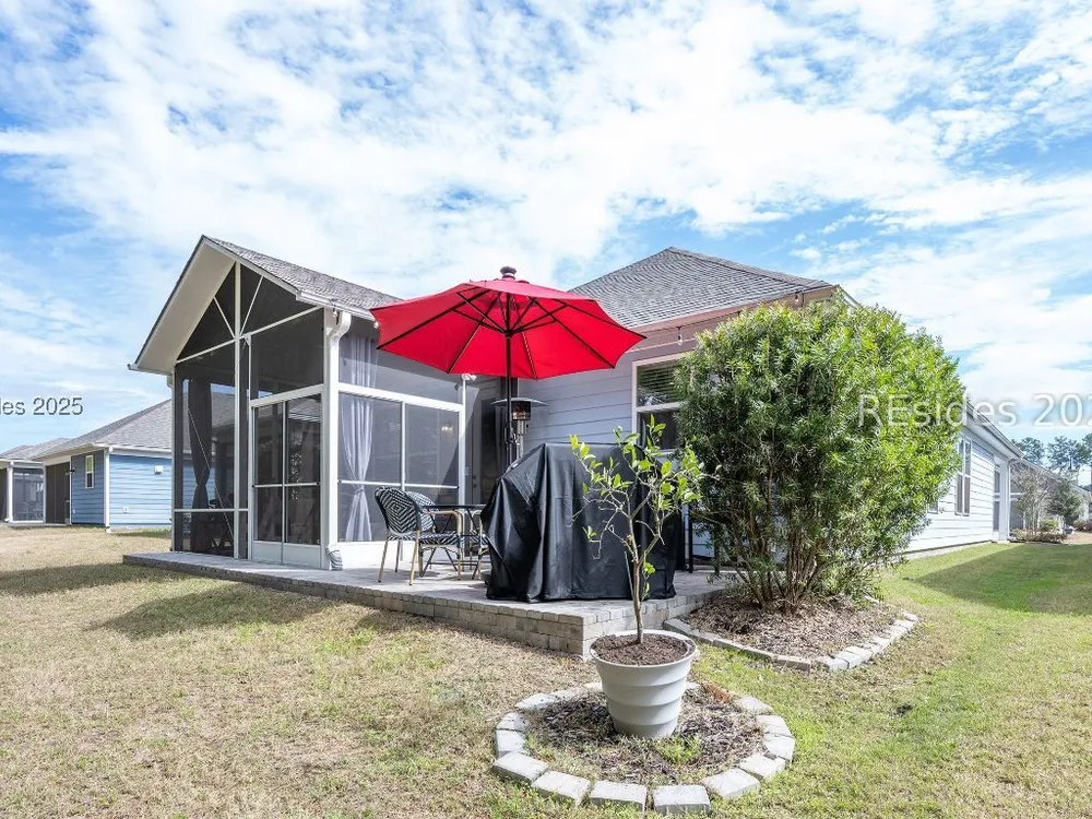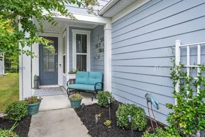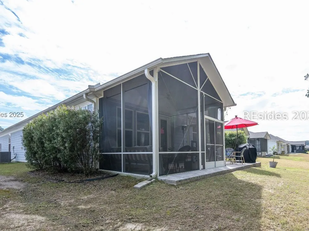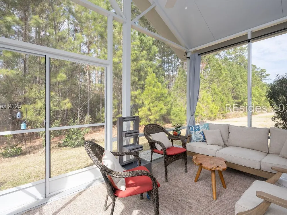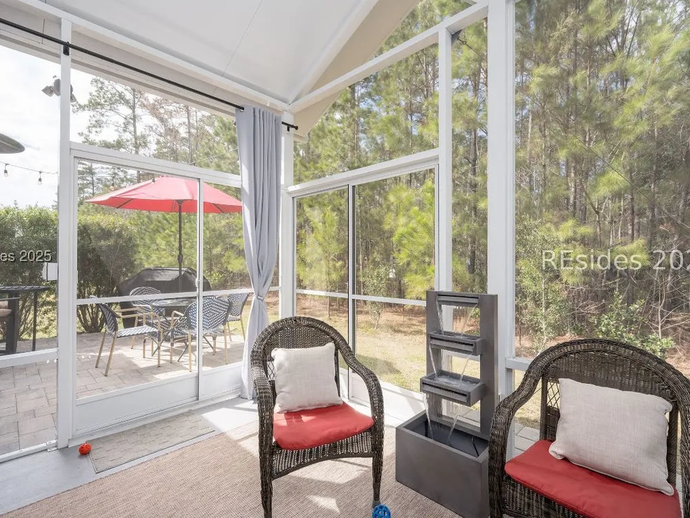 Welcome to this beautifully enhanced 2021 Compass model, thoughtfully designed with all the right extras: a sun-drenched added sunroom, screened porch, walk-up attic, gas range, custom trim work, and prewired TV setup. With 1,553sf of smart open-concept living, this home feels spacious and stylish, perfect for entertaining. You'll love the chefs kitchen with its oversized island, two generous bedrooms, two full baths, and a versatile flex room ideal for an office or third bedroom. Tucked away on a private, wooded lot and located near the Argent Lakes Amenity Center, this home puts you right in the heart of the vibrant Sun City lifestyle.