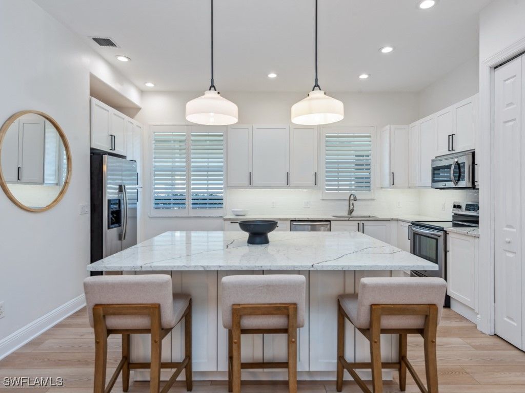 Discover paradise in the Cotton Green enclave of award-winning Fiddler’s Creek. This impeccably maintained single-family home blends casual elegance with Southwest Florida allure. It's perfect as a full-time residence, seasonal escape, or investment gem. Enter a light-drenched open layout with soaring ceilings, luxury vinyl floors, crown molding, and plantation shutters. The expansive great room seamlessly connects to a gourmet kitchen boasting professional appliances, abundant custom cabinetry, and a quartz-topped breakfast bar. Three spacious bedrooms ensure privacy, highlighted by a tranquil primary suite with oversized windows, dual walk-in closets, and spa-like en-suite bath. The epoxied two-car garage easily accommodates large vehicles or a golf cart. Step outside to your private screened lanai and custom pool with spa. Lush tropical landscaping surrounds the lanai, creating the ideal setting for sunset cocktails and Naples-style relaxation. Fiddler’s Creek delivers resort-caliber amenities: a 54,000 SF clubhouse, cutting-edge fitness center, full-service spa, multiple pools, tennis, pickleball, bocce, jogging trails, and optional equity golf on a championship course. Gulf-access marina, plus Marco Island beaches and Fifth Avenue’s upscale dining and shops just minutes away. Furnishings available for seamless turnkey transition.