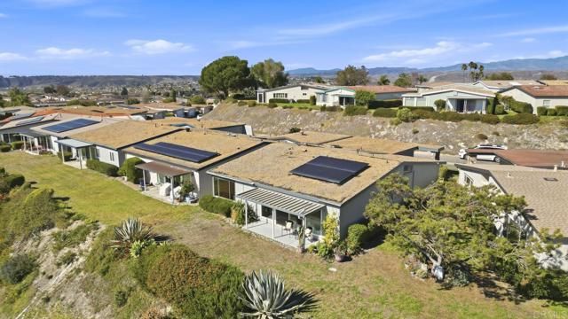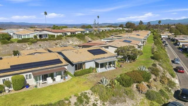 Discover relaxed coastal living in this detached single story home in Oceanside's coveted 55+ Oceana XII commununity! 3890 Vista Campana South #39 boasts 2 bedrooms, 2 bathrooms with 1,347 square feet of living space with multiple patio spaces featuring panoramic views. Located in one of the most desirable areas of Oceana, this property offers a bright, open layout featuring an updated kitchen with modern finishes and abundant storage. Entertain friends and family from the enclosed sunroom including bar sitting and a perfect spot to enjoy the coastal breezes and beautiful Oceanside nights. The property features energy efficiency throughout the home including solar panels as well as a 240 volt outlet to charge your electric vehicle. The Oceana community features resort-style living with beautifully maintained grounds, pool, spacious lounge area and community activities plus HOA fees include water and trash. Conveniently located to shopping, restaurants, harbor, beaches and more, 3890 Vista Campana South #39 is not to be missed!