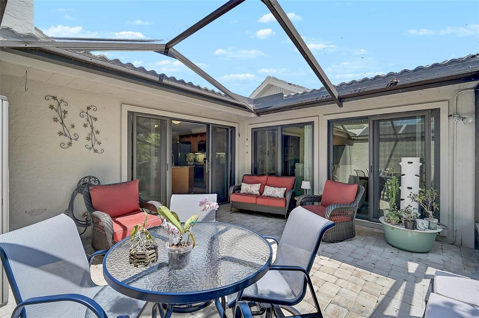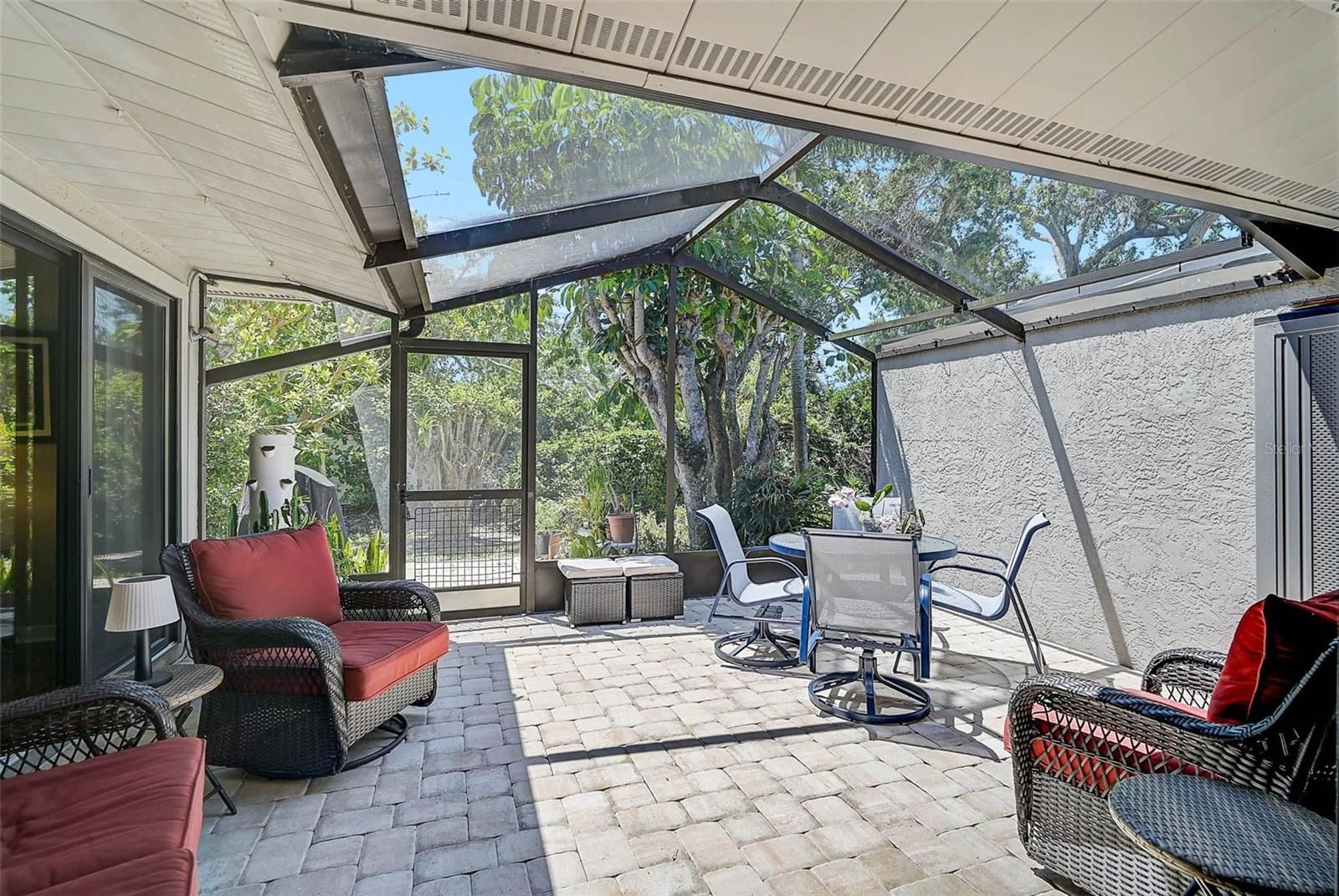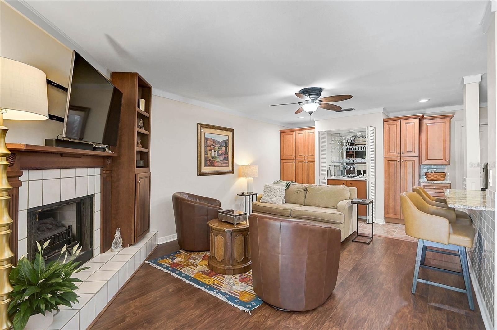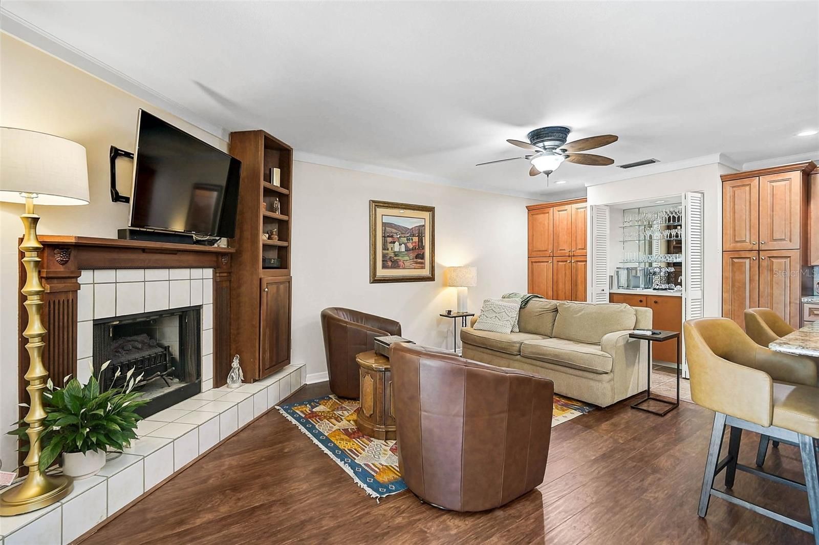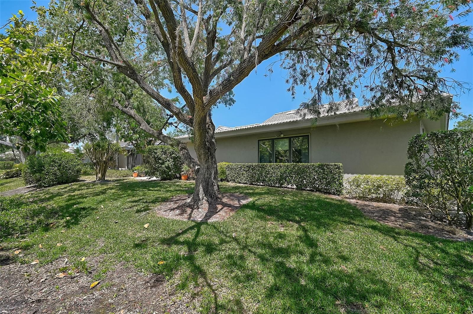 Welcome to this beautifully updated 2 Bedroom, 2 Bath villa that lives like a single-family home—without the hassle of exterior maintenance! Located in one of Sarasota’s most desirable 55+ communities, this pet-friendly villa (1 pet up to 35 lbs) offers privacy, space, and luxury in an unbeatable location. Lakeshore Village South is a small, 32-villa enclave with its own heated community pool and a socially active atmosphere for those who wish to participate. Step inside to discover a stunning, fully remodeled chef’s kitchen with rich cabinetry, soft-close drawers, pull-out shelving, and gorgeous granite countertops. The cabinetry continues into the family room, which features a wood-burning fireplace and a custom wet bar—ideal for entertaining. A formal living and dining area offers additional space to host guests or relax in comfort. Enjoy peace and serenity on the extended pavered lanai, surrounded by mature landscaping and accessed via impact-rated sliding doors. The setting feels like your own private park—quiet, green, and perfect for outdoor living. You’ll love the elegant crown molding, new flooring, and thoughtful updates throughout the home. The laundry area is neatly tucked away behind bi-fold doors for convenience and function without sacrificing aesthetics. The primary suite is generously sized with a large custom walk-in closet, a fully renovated bath, and a separate office/sitting area with built-in cabinetry. The second bedroom is bright and spacious, perfect for guests, and located adjacent to the updated guest bathroom, which reflects the same level of quality and detail. Additional features include: 2019 A/C Hot water circulation booster Keypad garage entry Ring door alert system This home offers not just a place to live, but a complete lifestyle. For just $200/year, owners can access additional amenities including a large clubhouse with a full kitchen and dining area, a heated saltwater pool, pickleball and tennis courts, and catch-and-release fishing. All this, just 20 minutes from Siesta Key Beach, consistently ranked the #1 beach in the U.S., and only minutes from top-rated medical facilities, shopping, dining, and quick access to I-75. Don’t miss the Virtual Tour and Matterport 3D Walkthrough—you’ll feel like you’re already home! Schedule your private showing today—this gem won’t last long!