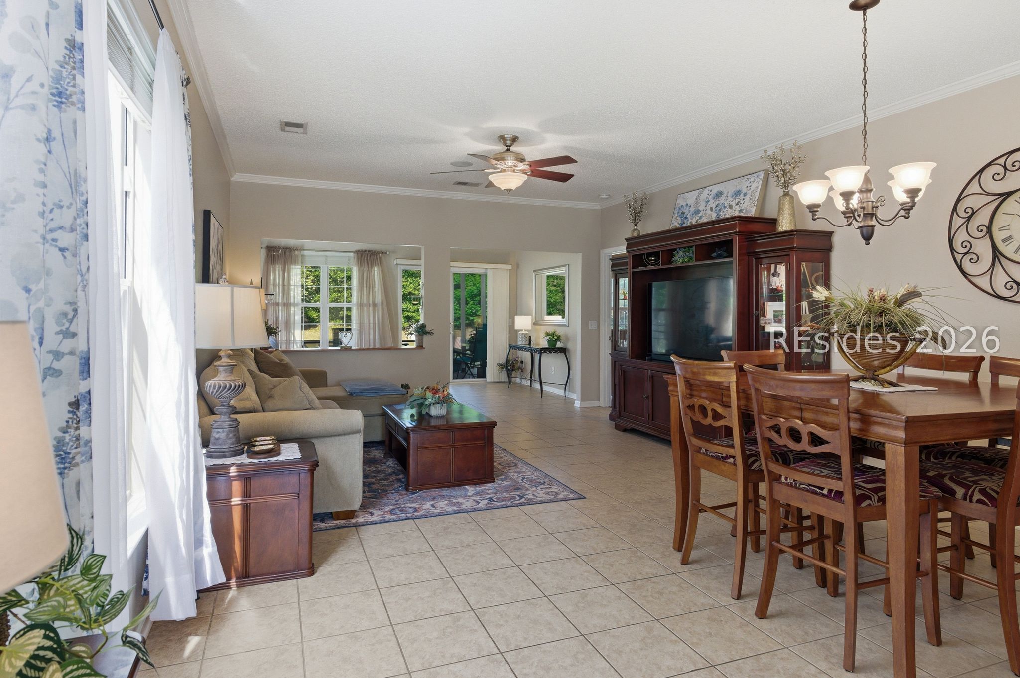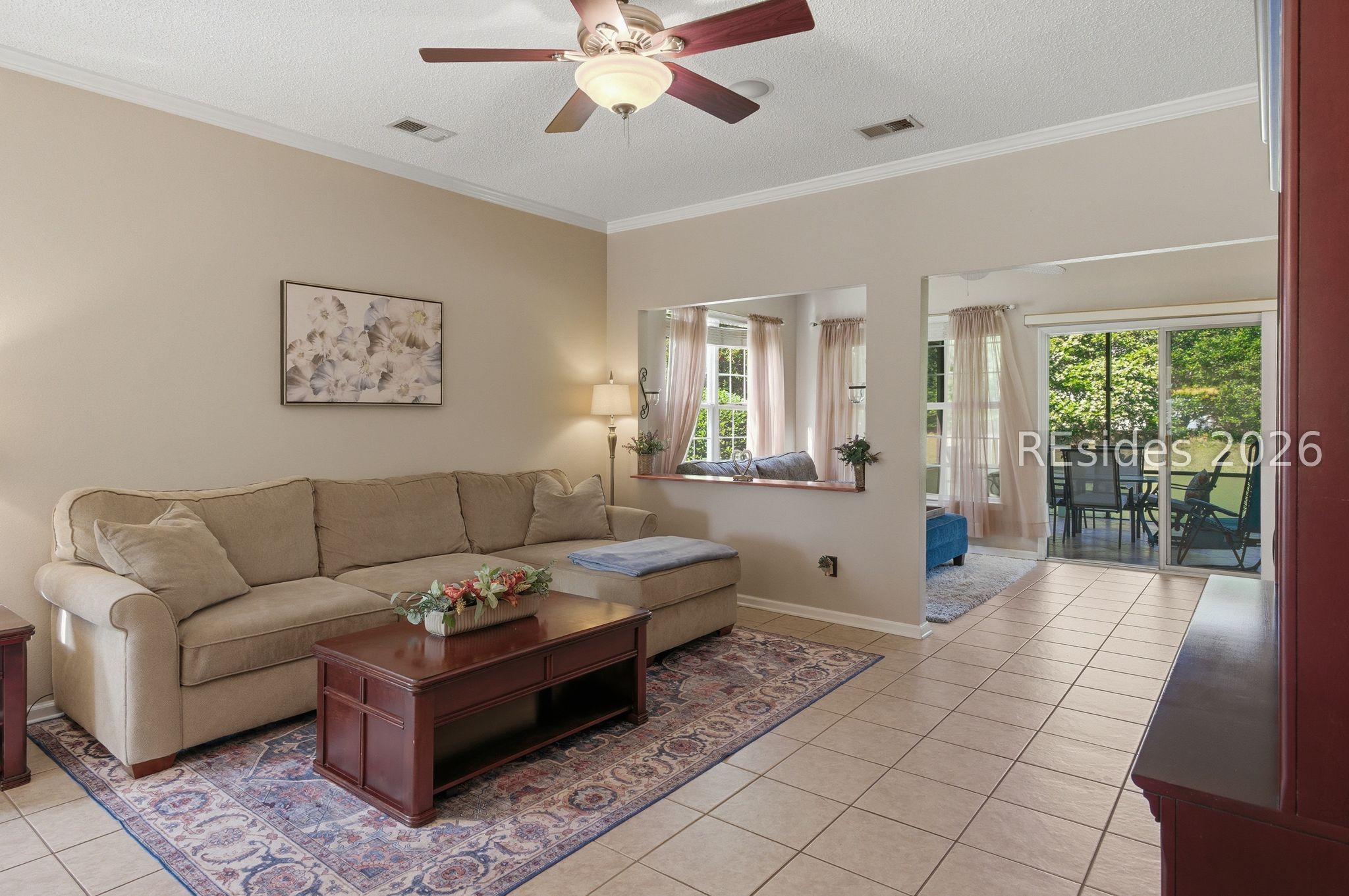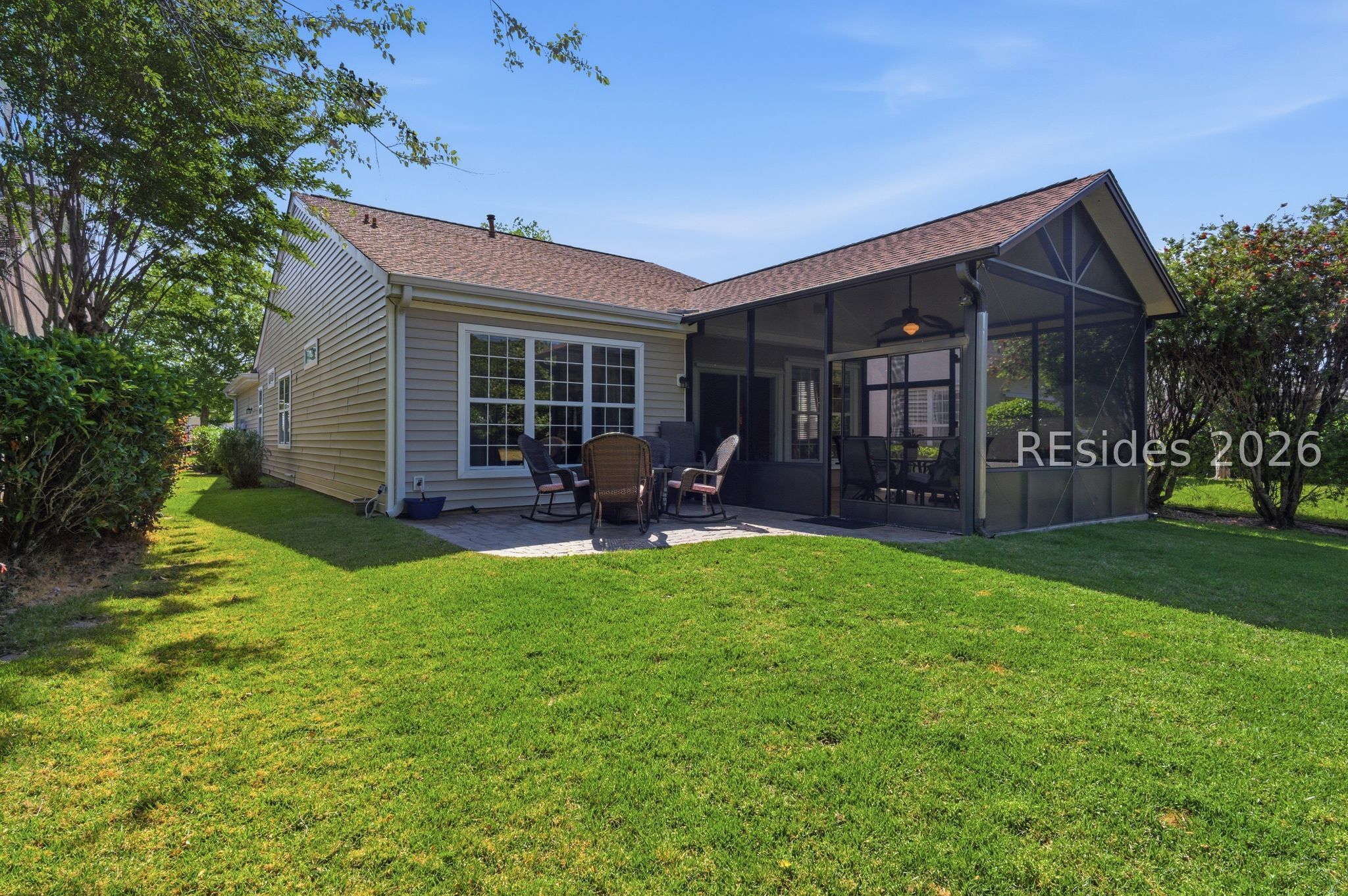 Beautiful 3BR/2BA Heather model in Sun City Hilton Head featuring a Carolina room + screened lanai with hard roof and paver patio-perfect for indoor/outdoor living! This well-maintained home offers exterior vinyl siding (2018-No Stucco!), engineered hardwood in the primary suite, and a whole-house speaker system. The spacious kitchen includes newer stainless steel appliances, tile backsplash, Gas stove, and new bucket sink, plus a convenient Maytag washer/dryer. The primary suite has a Tiled Walk-in shower, raised vanity, and large walk-in closet. The Office/Den/3rd bedroom includes a Murphy bed (conveys) for added flexibility. Major Updates: Roof (2017), Complete HVAC (2019), Hot Water Heater (2021). Additional features include a slider screen for the garage door, extra fridge in the garage (conveys), and window treatments throughout. Enjoy a private, lush landscape view and ample living space in one of Sun City's most popular floor plans and world class amenities! 39 Basket Walk Dr is move-in ready and waiting for its new owner!