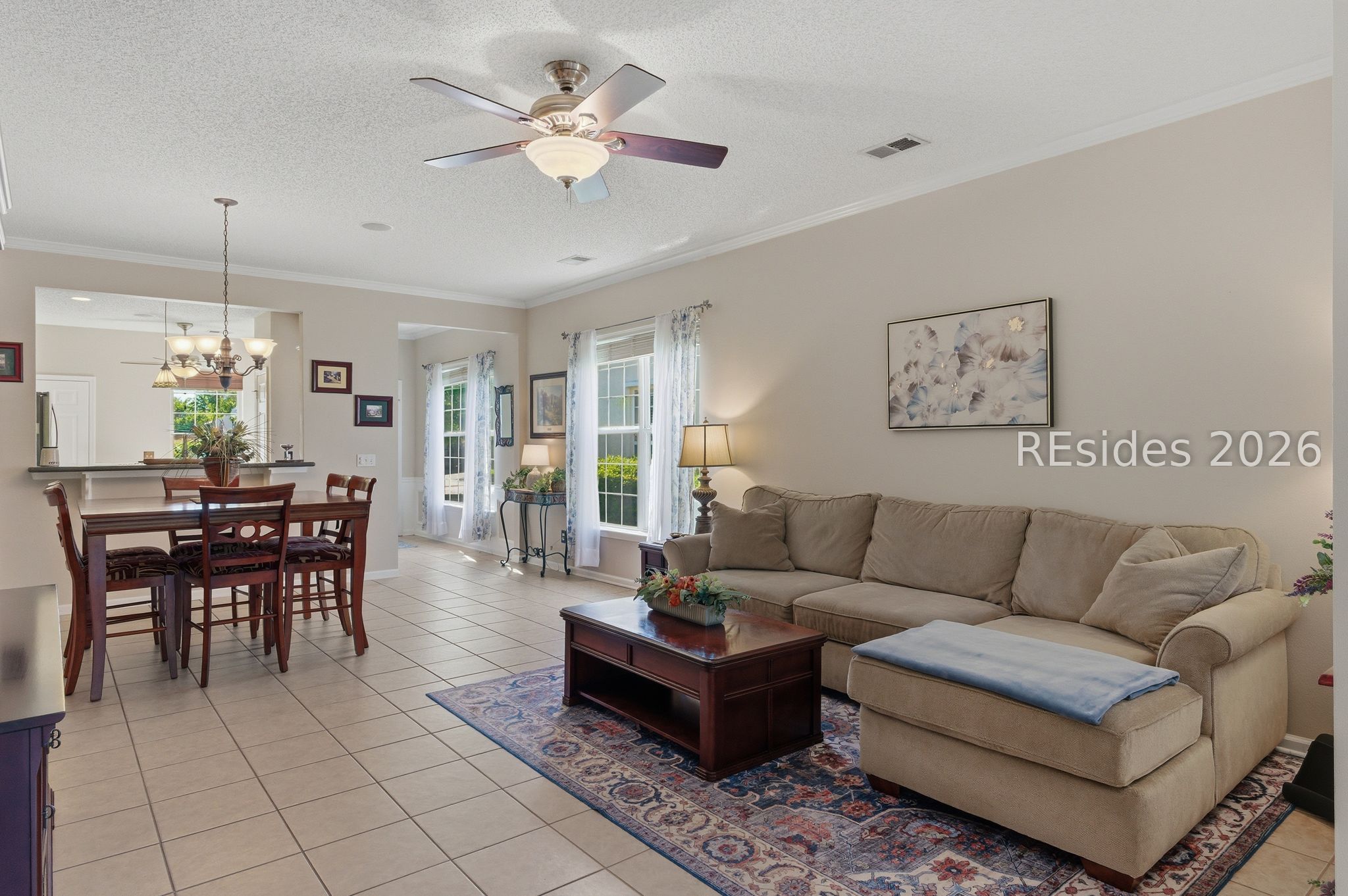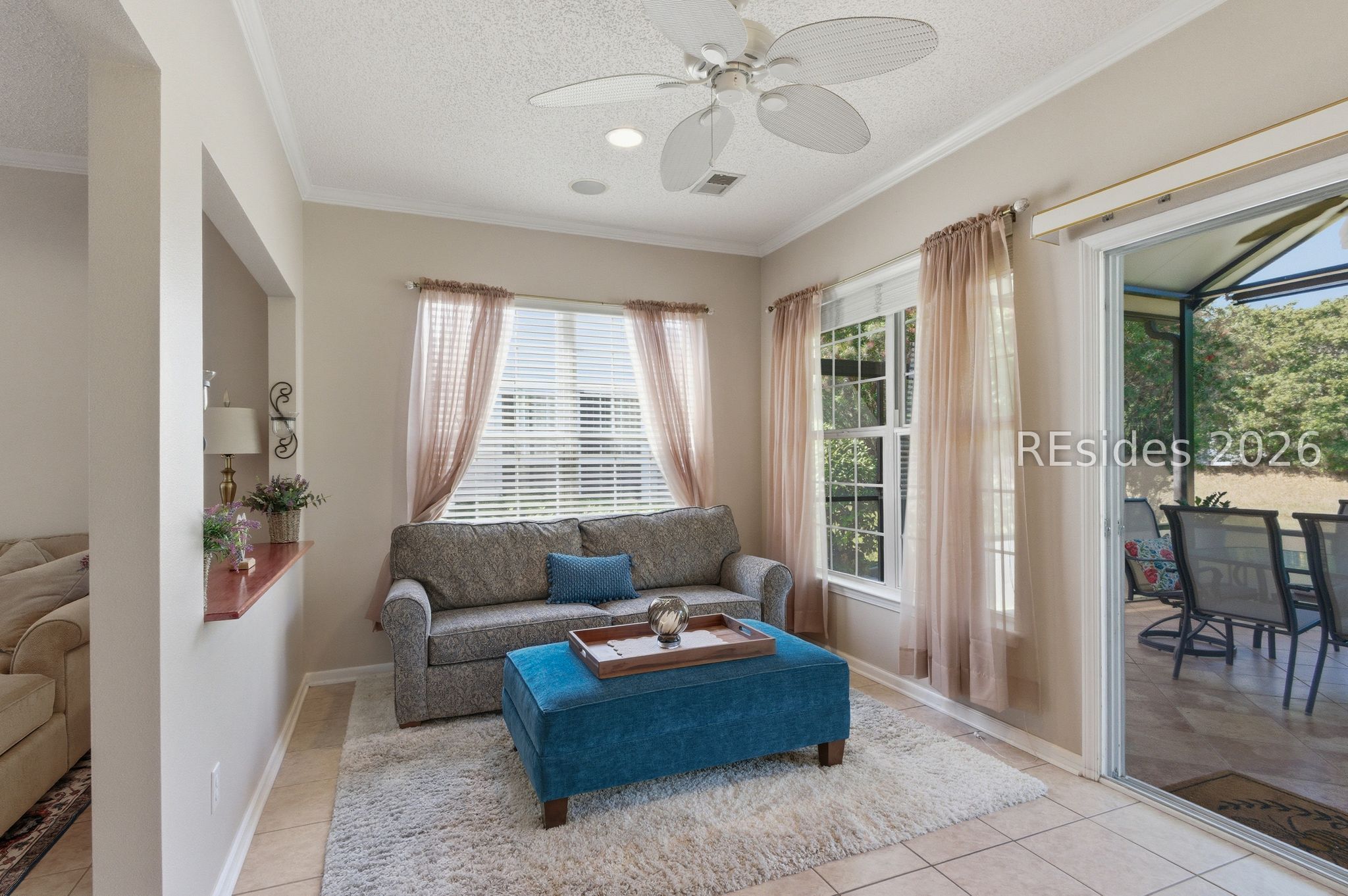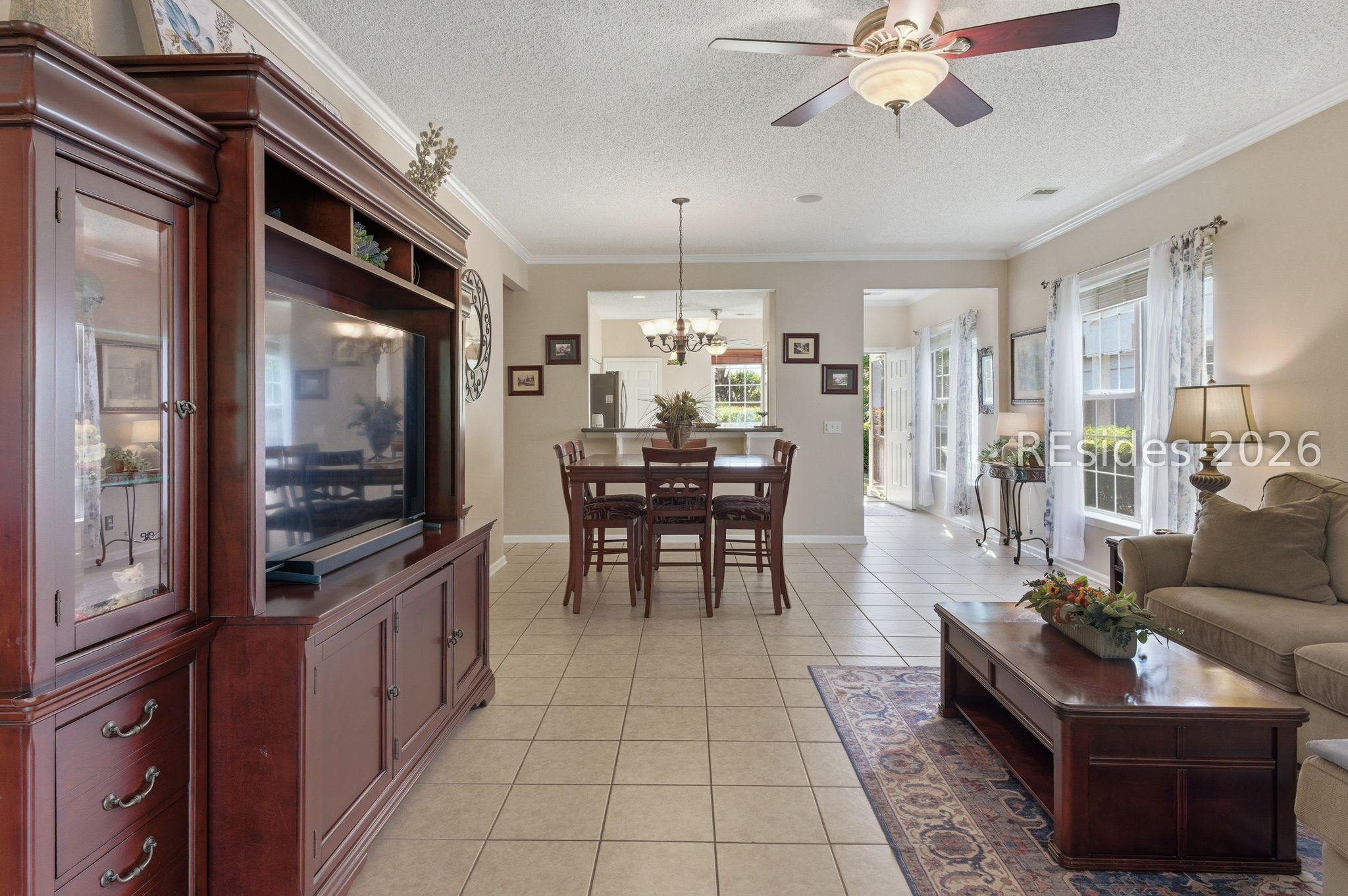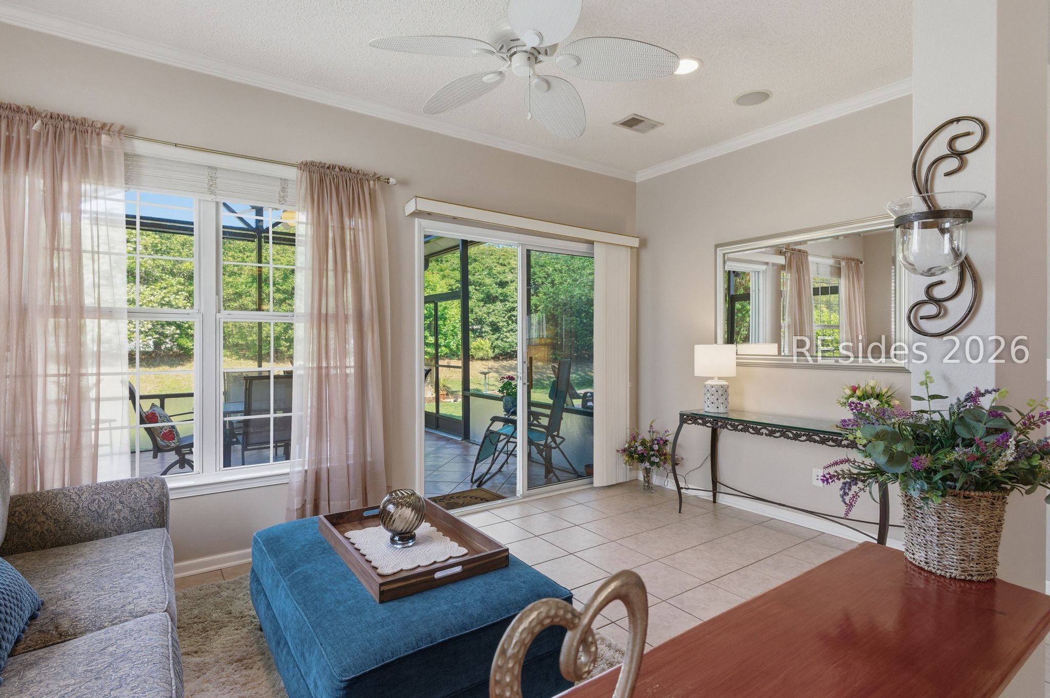 Beautiful 3BR/2BA Heather model in Sun City Hilton Head featuring a Carolina room + screened lanai with hard roof and paver patio-perfect for indoor/outdoor living! This well-maintained home offers exterior vinyl siding (2018-No Stucco!), engineered hardwood in the primary suite, and a whole-house speaker system. The spacious kitchen includes newer stainless steel appliances, tile backsplash, Gas stove, and new bucket sink, plus a convenient Maytag washer/dryer. The primary suite has a Tiled Walk-in shower, raised vanity, and large walk-in closet. The Office/Den/3rd bedroom includes a Murphy bed (conveys) for added flexibility. Major Updates: Roof (2017), Complete HVAC (2019), Hot Water Heater (2021). Additional features include a slider screen for the garage door, extra fridge in the garage (conveys), and window treatments throughout. Enjoy a private, lush landscape view and ample living space in one of Sun City's most popular floor plans and world class amenities! 39 Basket Walk Dr is move-in ready and waiting for its new owner!