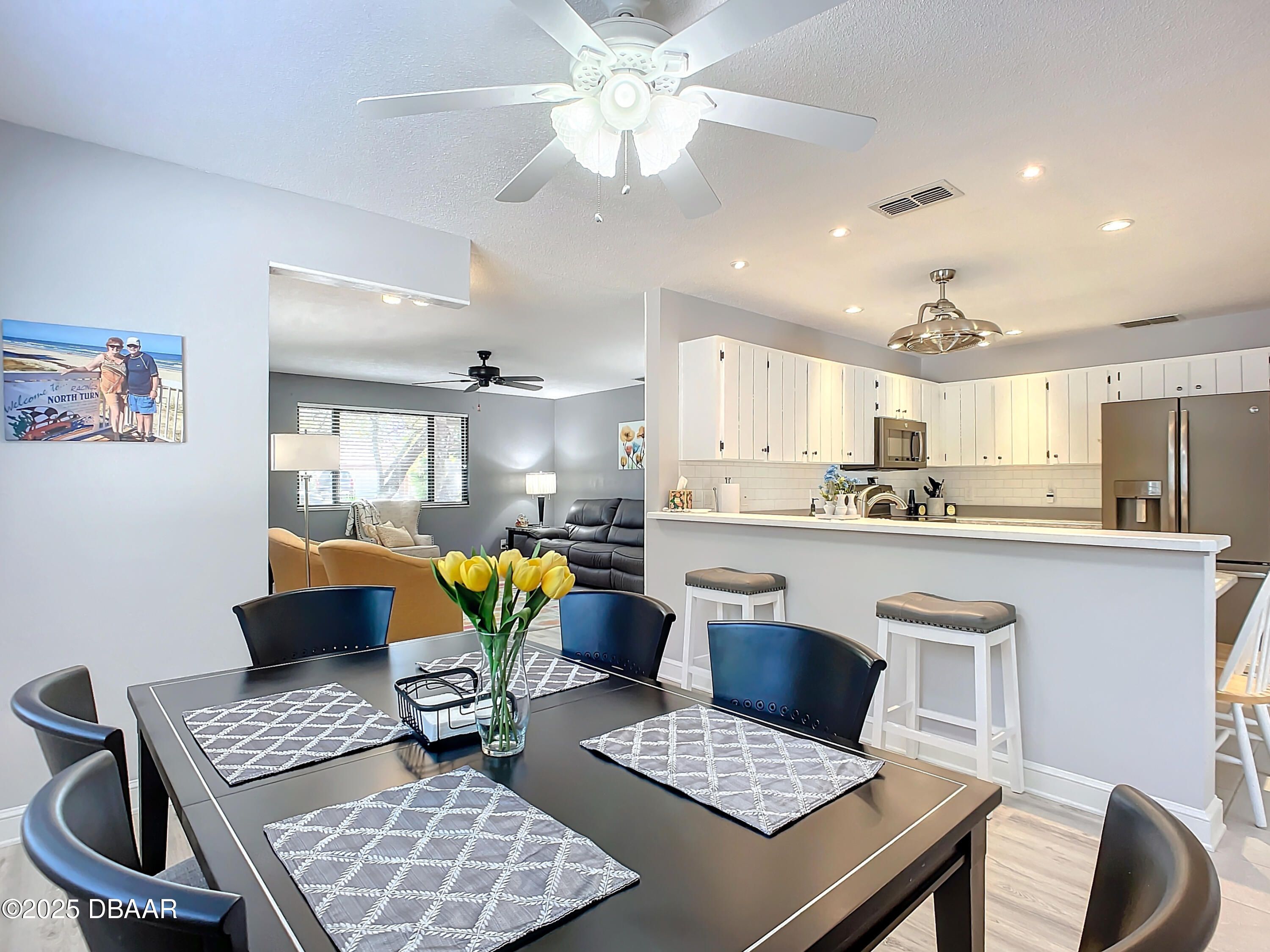 Now thoughtfully reduced by over $10,000 — exceptional value for a beautifully upgraded home in Summer Trees III. Welcome to this beautifully updated 2-bedroom, 2-bath attached home located in the highly desirable Summer Trees III, an Active Adult 55+ community. From the moment you enter, you'll appreciate the quality, care, and attention to detail throughout. The home offers spacious, open living areas with luxury vinyl plank flooring and tile throughout, creating a clean, modern aesthetic. Fresh, neutral tones enhance the light and airy atmosphere, while thoughtful touches—including updated outlets and cover plates—reflect the overall pride of ownership. A brand-new roof installed in 2021 adds further value and peace of mind. The kitchen features stainless steel appliances, a breakfast bar, and an open flow to the dining room—perfect for entertaining or everyday living. The split-bedroom floor plan offers privacy for guests or family. Both bathrooms have been beautifully renovated with modern finishes, new fixtures, upgraded commodes, and zero-entry, curbless walk-in showers that combine sleek design with everyday functionality and safety. Additional features include an interior laundry area and a heated and air-conditioned Florida room, providing flexible space for relaxing, hobbies, or entertaining. Summer Trees III is a well-maintained community with a host of amenities: a clubhouse, pool, tennis and pickleball courts, shuffleboard, and miles of shaded walking and biking paths. The low annual HOA fee includes lawn care, digital cable TV, internet, and exterior house painting every six years. A community termite bond is included, and RV storage is available for a small annual fee. Conveniently located near shopping, dining, medical services, and just minutes from I-95 and the shores of Daytona Beach, this home offers both comfort and convenience. With a recent price reduction of over $10,000, this home represents a rare opportunity to own a beautifully updated villa in one of the area's most desirable active adult communities.