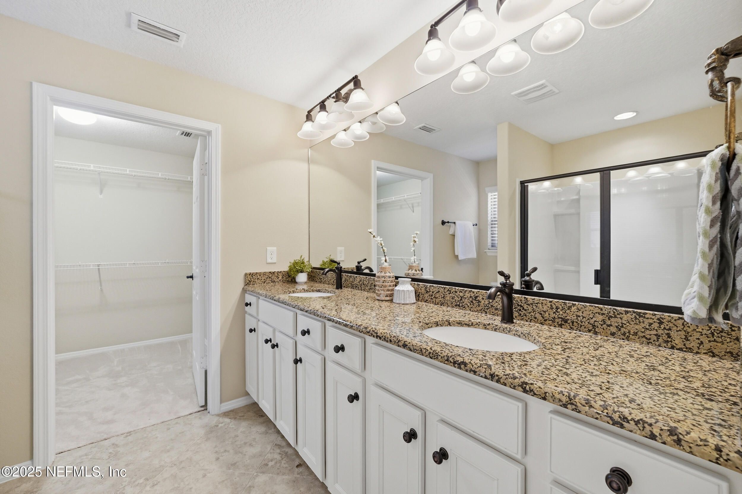 Welcome to this beautifully maintained home in the highly desirable 55+ community of Del Webb Ponte Vedra! As you approach, you'll notice the gorgeous landscaping and paver driveway. The main living area features rich hardwood floors and a bright, open concept. The kitchen boasts white cabinets, granite countertops, a reverse osmosis water system, and stainless steel appliances. Private Screened Lanai! The primary ensuite includes dual sinks, granite counters, a walk-in shower, and a spacious walk-in closet. Freshly painted and move-in-ready, this home also features several updates, including a new HVAC installed in 2020, a new refrigerator in 2021, hurricane shutters, and a water softener. Del Webb Ponte Vedra offers resort style pools, pickle ball & Tennis courts, spa, sauna, fitness, clubs and activities galore-all in a gated, golf cart friendly location just minutes to the beach! This home is conveniently located close to the main gate and walking distance to the club.