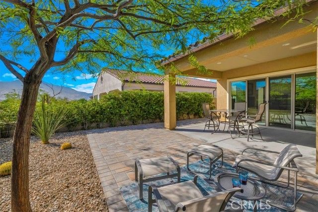 This lovely 2 + 2 plus + office, with an expansive view, is being offered with the solar system (paid for) and a 2-1 buydown on the buyers loan, as the sellers financed subsidy, paid at closing.!! Lowering the interest rate for 2 years (see supplements section or call agent for more more information). Built in 2021, this 1832 square foot Del Webb Rancho Mirage property offers high ceilings, and an open floor plan. A private landscaped backyard with interlocking bricks and a dog run, provides a expansive view of the majestic Mount San Jacinto. This Phase 5 Tuscan-style home features up-graded flooring in both bedrooms, and up-graded floor tile through the remainder of the home. The kitchen features up-graded granite counter tops and cabinetry. The home is wired for a security system. The garage is over-sized with space for a golf cart; it's insulated and has a dedicated air conditioning system. No need to assume a solar lease on this property - the seller owns the system. Per seller, there are 13 solar panels on the south side of the home. (Per Seller cost was $18,200.) The guard gated 55+ Del Webb Community offers low maintenance living and an active lifestyle. There are 6 miles of walking paths among the beautiful desert landscape to walk the dog and meet new friends. We have a