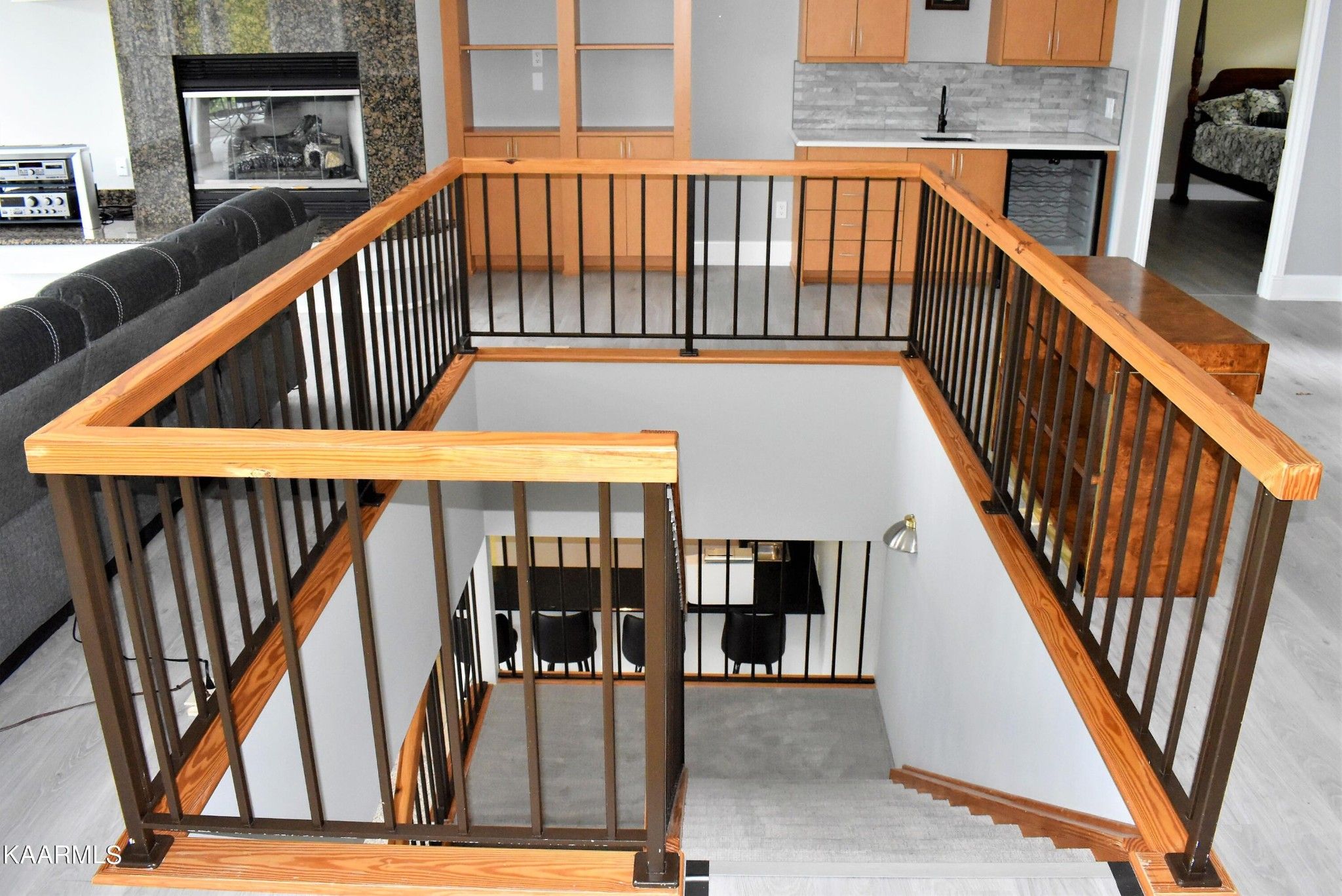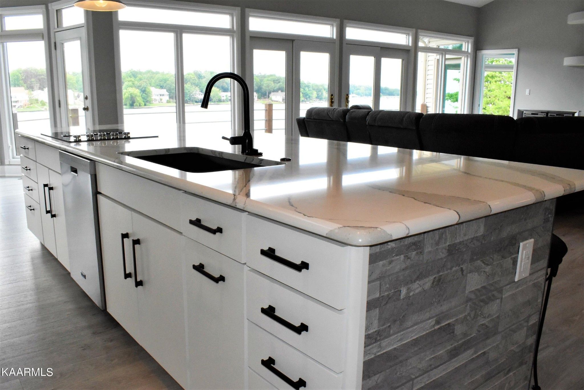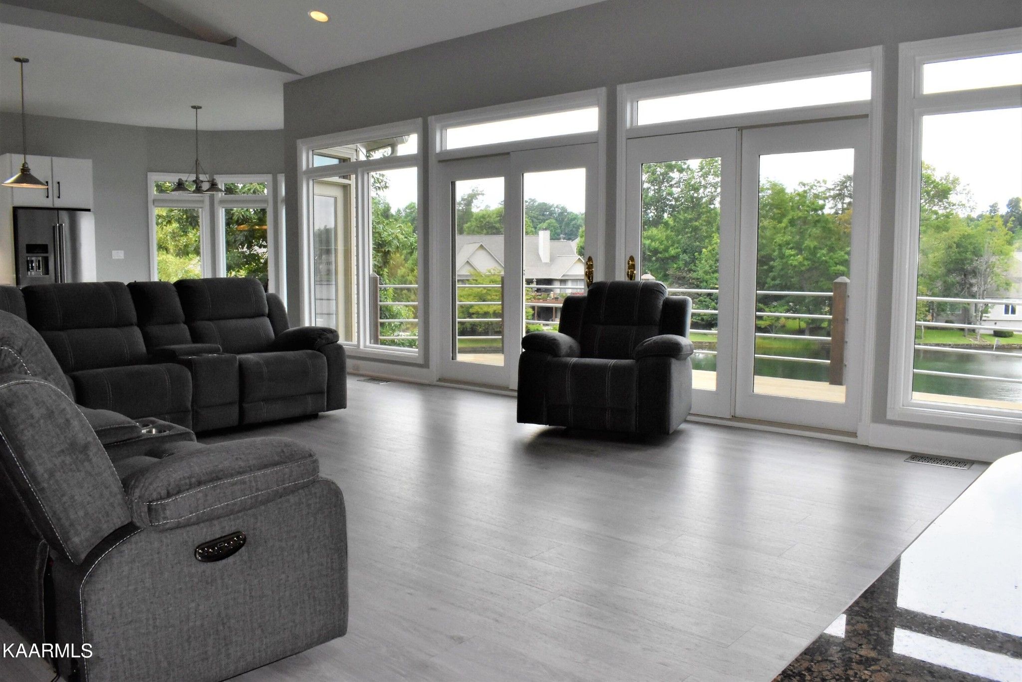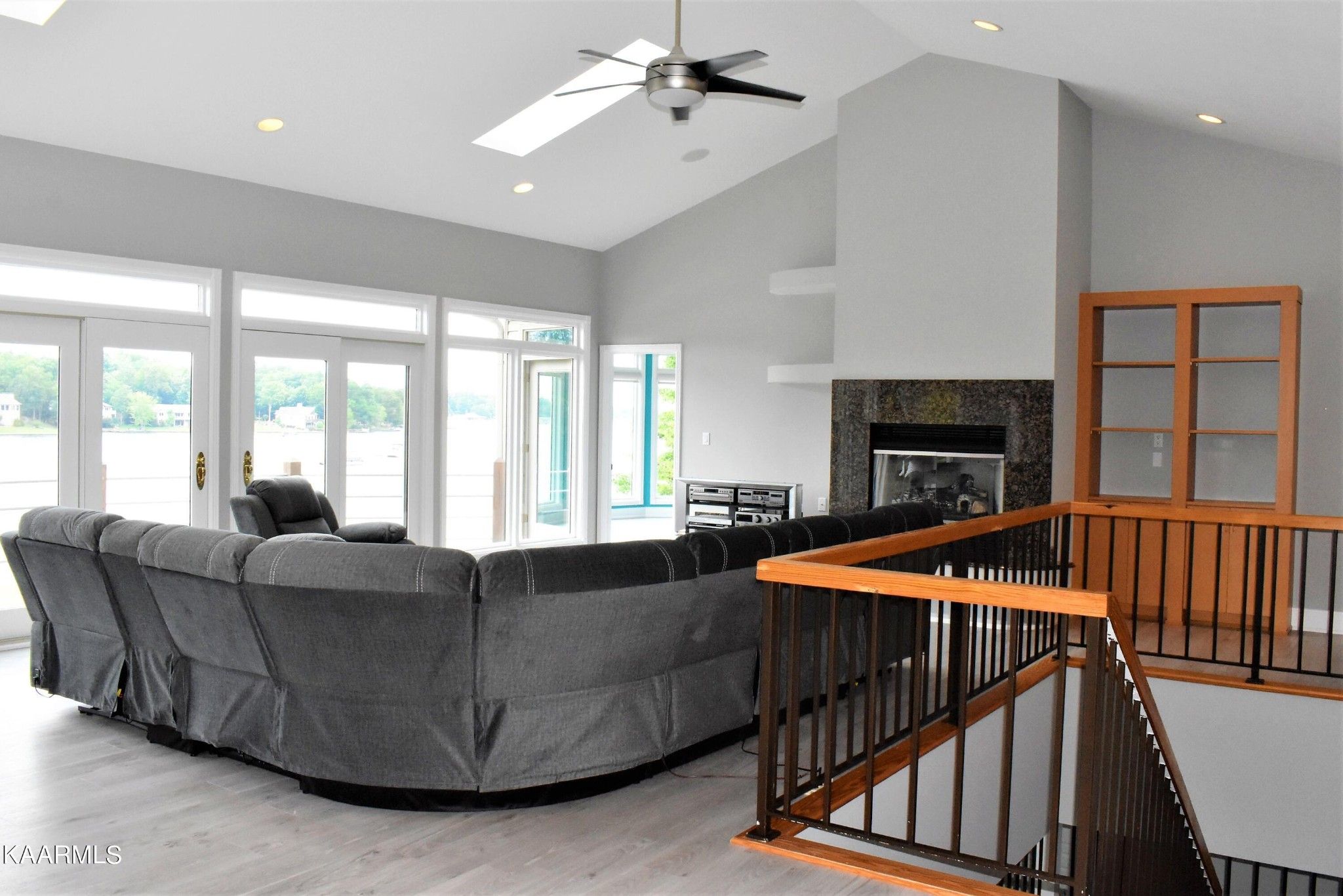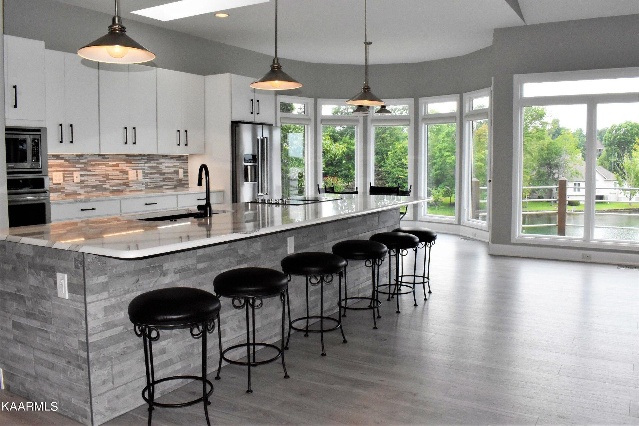 LAKEFRONT WOW!! This amazing Lake Dartmoor home provides everything and more. From the moment you enter the home you will see the breathtaking views! This remodeled area is open plan with soaring ceilings and a wall of windows. The gourmet kitchen has an abundance of custom cabinets, granite countertops, breakfast bar and breakfast bay. Walk in pantry. The main living area has built in wet bar with wine cooler. Custom built-in cabinetry, custom fireplace. The master suite again offers breathtaking lake views. Spacious ensuite bathroom with large custom tiled walk-in shower. Custom fitted walk-in closet. Spacious guest bedroom with ensuite bathroom. Utility room and guest half bathroom complete the main level. Access to large deck. The lower level, again with amazing views from all rooms, has recreation room with built in wet bar with breakfast bar. Exercise room/ office (equipment included), Sauna room, guest bedroom, ensuite bathroom. Storage room with access to crawlspace. Access to deck and dock. Professionally landscaped that includes a water feature. New roof in 2019. (Sauna, and Gym equipment will remain.) If you are looking for a lakefront home with breathtaking views from all living areas, this is it!!!