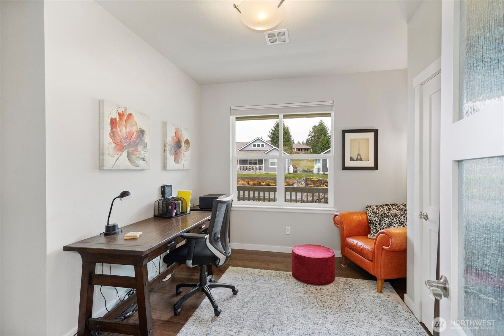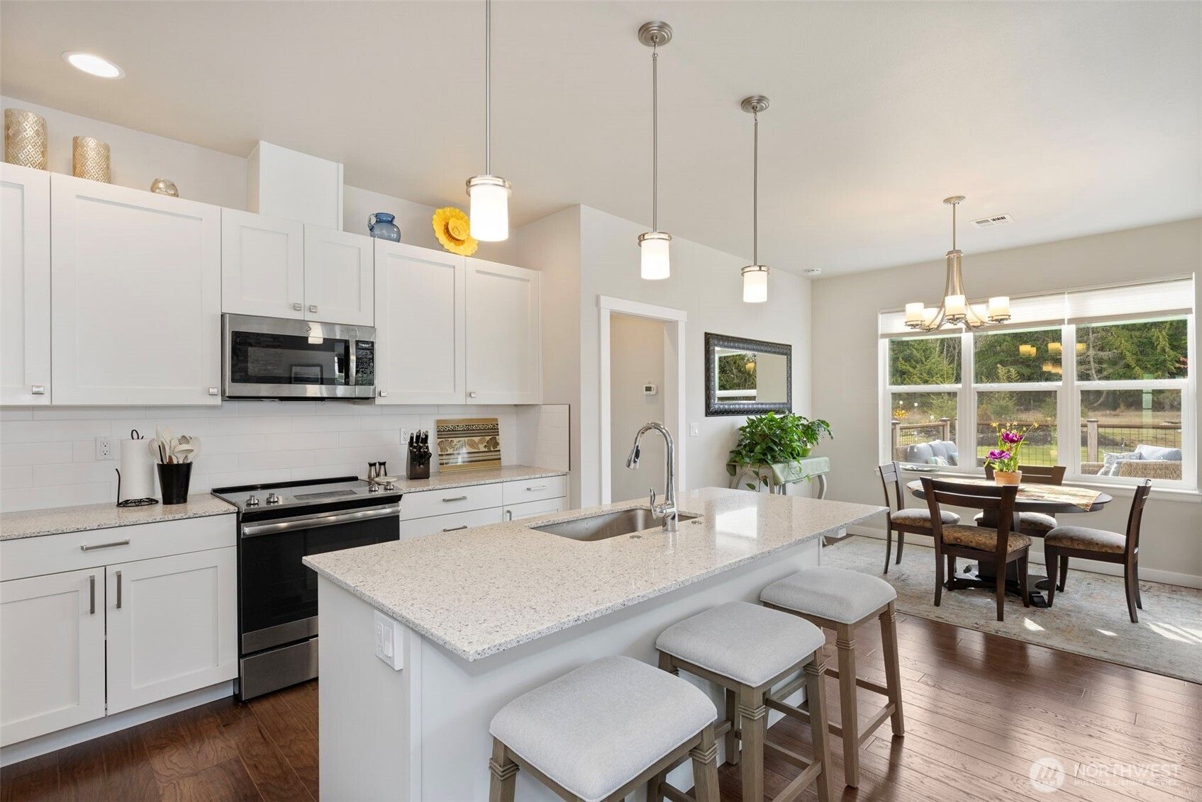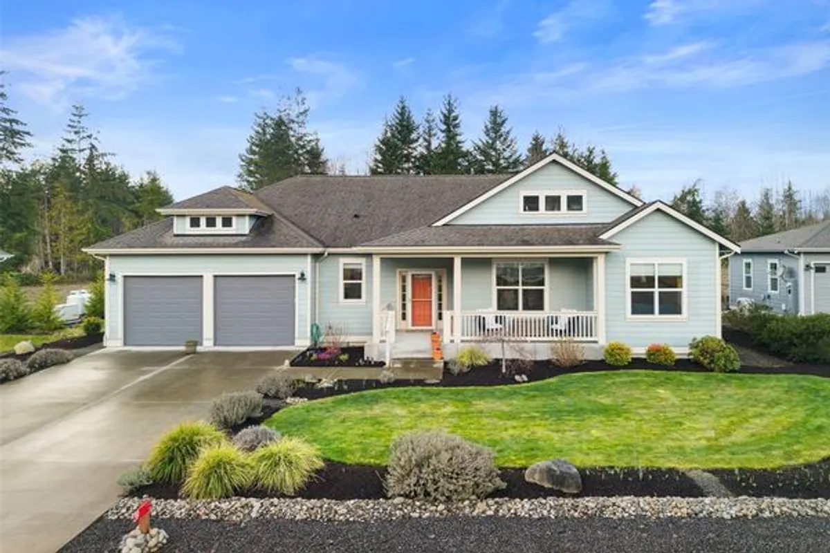 Surrounded by the natural beauty of the Olympic Peninsula, this warm and inviting one level home in Olympic Terrace 2 offers comfort, light filled spaces, and an effortless Port Ludlow lifestyle. Better than new, this meticulously maintained home is designed for easy living with three bedrooms plus a versatile office or den. Featuring a bright, open great room layout that feels both welcoming and functional, there’s room for everyone! With warm-toned engineered hardwood floors throughout, lacquered doors and trim, expansive windows, and a striking floor to ceiling stone wrapped gas fireplace, character abounds. The sunny kitchen includes quartz countertops, stainless appliances, and a large island—perfect for casual meals or entertaining. The spacious primary suite provides a relaxing retreat with walk in closet and private ¾ bath, while a separate full bath offers convenience for guests. A generous laundry/mud room and fully finished double garage with ample storage enhances everyday ease. Modern comforts include heat pump heating and cooling, a solar attic fan, and a whole home water purification system. Set on a level half acre lot, enjoy native landscaping and effortless outdoor living on the 637sf composite deck with peek-a-boo mountain views, or just relax on the cozy covered front porch. Located on a quiet cul de sac near hiking trails and minutes to golf, pickleball, marina, and South Bay Club and Village amenities—this is a special place to truly feel at home.