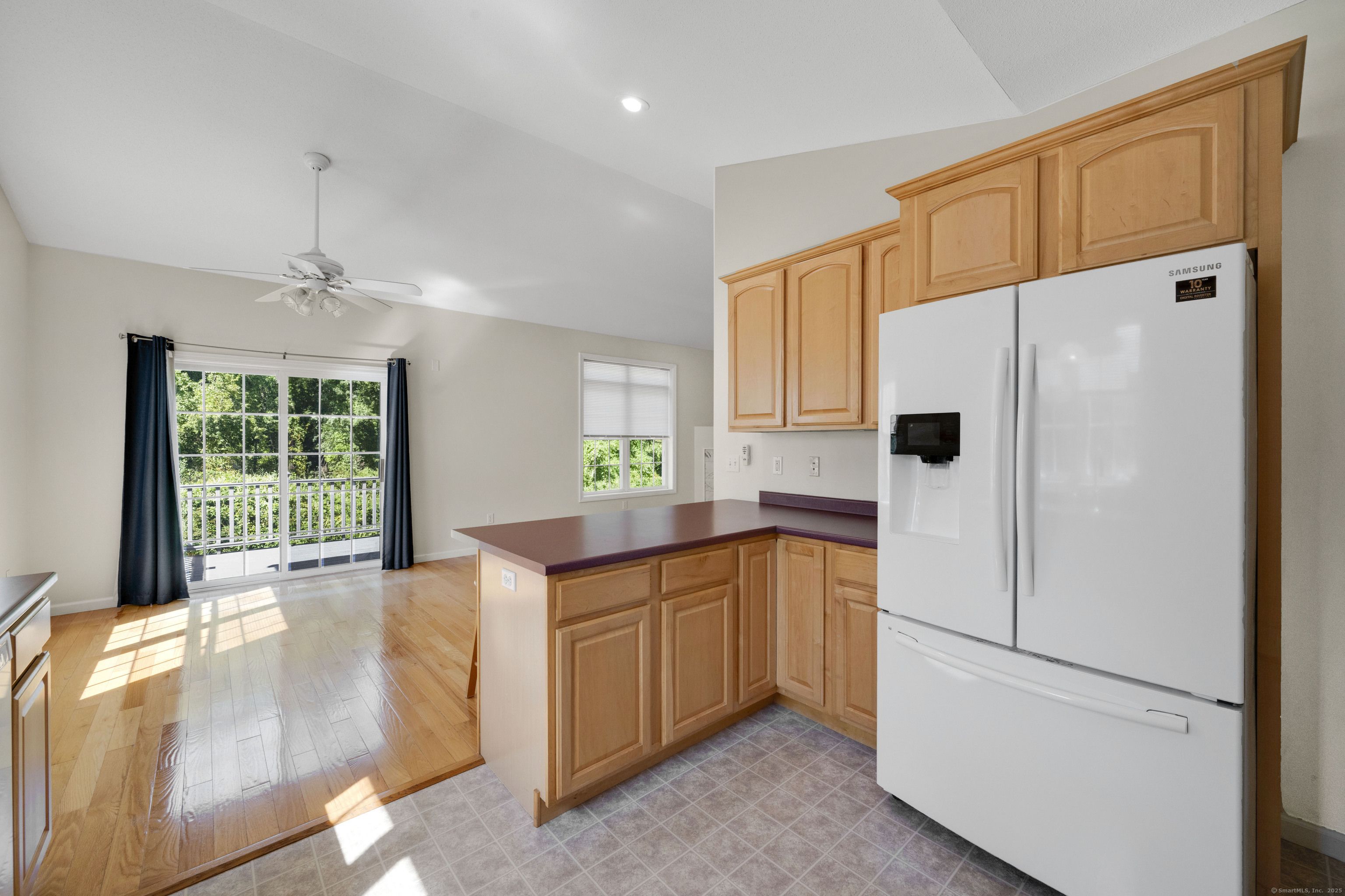 Welcome to Autumn Fields, a peaceful 55+ community! This well-kept, free-standing ranch condo features a two-car garage and backs onto serene woods. Located across from the Senior Center, it offers an open floor plan with a fully equipped kitchen, dining area with sliders to Trex decking, and a spacious living room with a cozy gas fireplace. The primary bedroom includes new carpet, a walk-in closet, and a full bath. A second bedroom and 500 sq ft of finished lower-level space-with another full bath-are perfect for guests, a home office, or entertaining. First-floor laundry and a newer hot water heater add convenience and value.