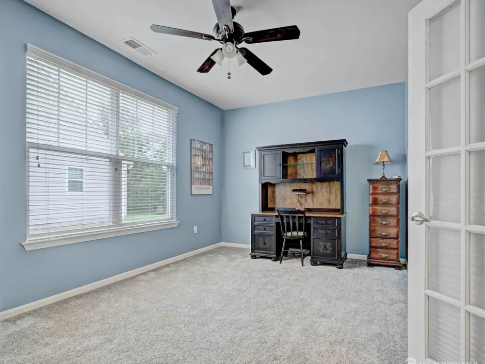 Beautifully maintained one-story home in the vibrant Sterling Point 55+ community. The open floor plan features a spacious living room with fireplace, hardwood floors, recessed lighting, and sliding doors to the patio overlooking green space. The gourmet kitchen offers granite countertops, stainless steel appliances, wood cabinetry, and pantry. The primary suite includes two walk-in closets and a luxurious ensuite with dual vanities, large walk-in shower, and water closet, while two additional bedrooms (one with French doors) provide flexible space for guests or an office. Extras include a two car garage, full laundry room, and finished bonus room above the garage. Residents enjoy a newly renovated clubhouse, fitness center, outdoor pool, bocce, billiards, movie theater, and scenic trailsconveniently close to highways, airport, shopping, and dining