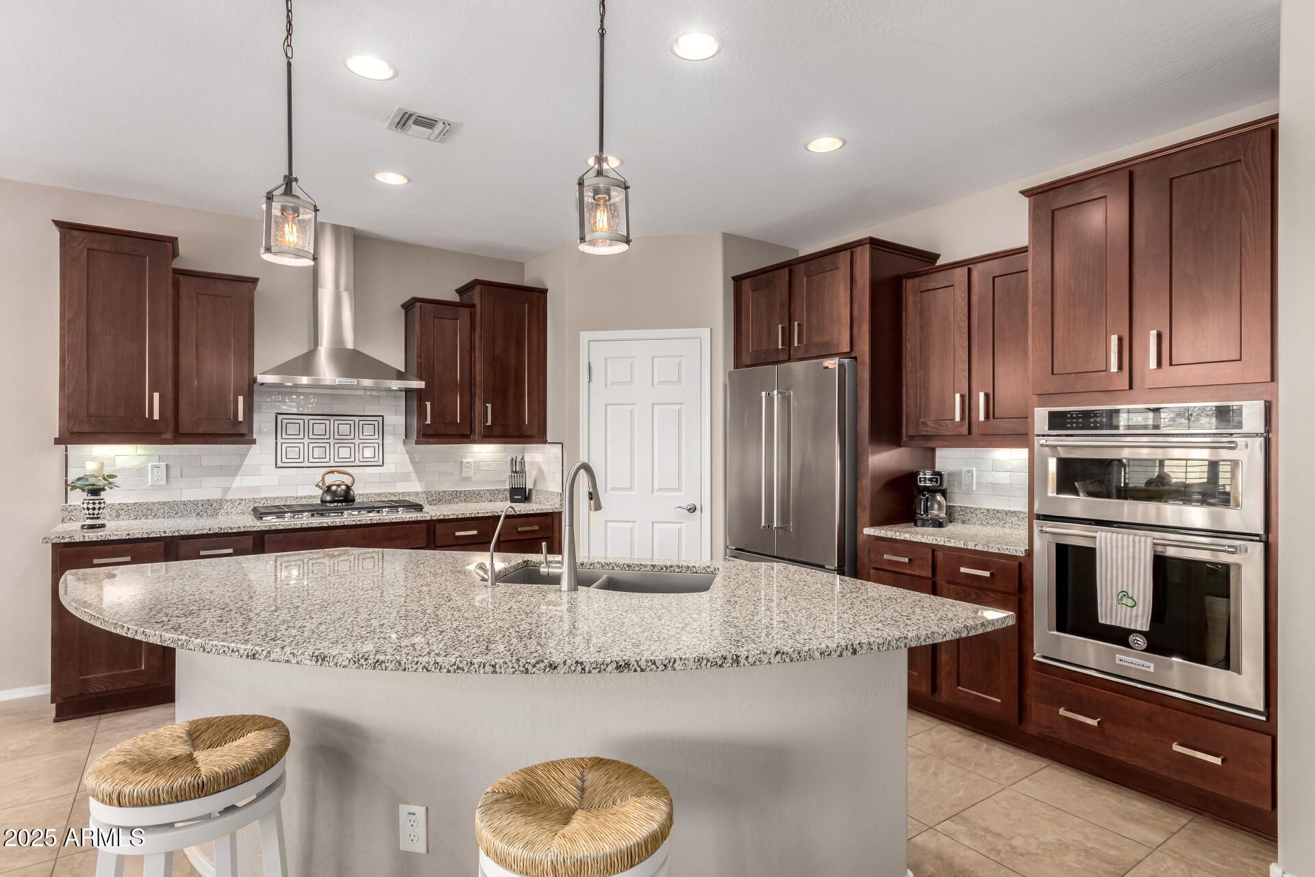 EXPLORE INSPIRED RESORT LIVING!! Live in your own beautiful, smartly designed home w/ open floor plan & amazing Chef Lux kitchen w/ Shaker cabinets, granite counters, decorative tile b/splash, s/c drawers, pull out shelves, pots/pans drawers, gas cooktop, SS appliances, pendant lighting & walk in pantry! Capture the SPECTACULAR SUNSET VIEWS of Walker Butte from the extended paver private patio or while relaxing in the open Great room w/ built in entertainment wall. In addition to FULLY FURNISHED, features include designer tile floors, carpeted bedrooms & Plantation Shutters thru-out, 4' garage extension (add 5' more on one side), topped w/OWNED SOLAR/energy savings$$!! Spacious Primary Suite w/ dual sinks & walk in closet! This STUNNING home is available for QUICK MOVE-IN! Why WAIT?? Sun City Anthem at Merrill Ranch offers a 48,000 SF recreation center w/ craft rooms for quilting, pottery, glass works, jewelry & crafts, spacious ballroom w/ stage for dancing, theatrical productions, concerts & more. PLUS full gym, work out rooms, indoor lap pool & spa, walking track, cafe area, card rooms, poker tables, pool table, ping pong table, business center, class room for interesting seminars! Troon Poston Butte Golf Course is one of the nicest in the area. Sun City offers Pickleball, Tennis, Bocce Ball, Horseshoes, Shuffleboard, clubs for all activities.......LIVE WHERE THE SURROUNDINGS DELIGHT, INSPIRE & CHALLENGE YOU!