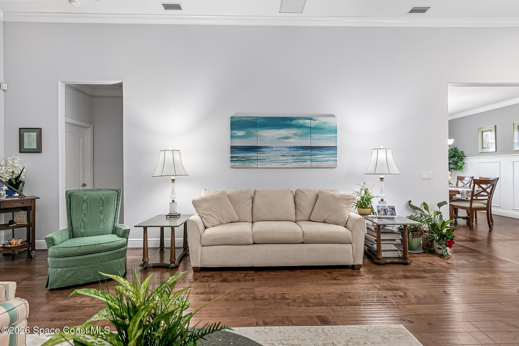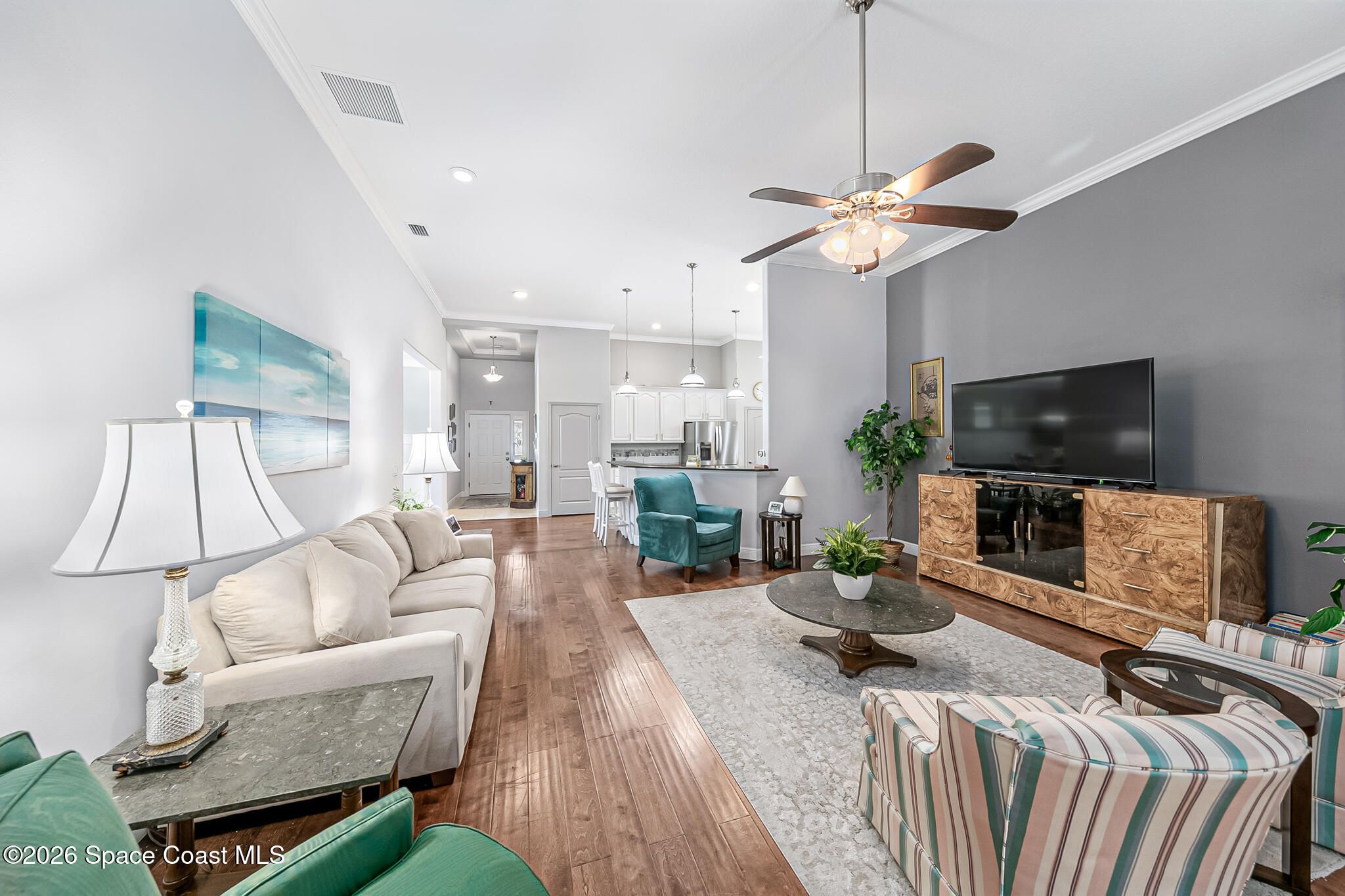 Welcome to the HEART OF VIERA'S MOST PRESTIGIOUS 55+ COMMUNITY OF HERITAGE ISLE. This Beautiful 4 bedroom 3 bath home comes with many upgrades Including an Open Floor Plan with Hardwood Floors Throughout, Upgraded Kitchen Cabinets, Whirlpool Stainless Appliances, Stainless Wine Cooler, Island with Stainless Steel Top, Crown Molding Throughout, Beautiful Primary Suite, Primary Bath has Double Sinks, Walk In Closets, Garden Jetted Tub, Walk In Shower, 3 Car Garage with Pavered Driveway, Brand New Accordion Shutters & Electric Hurricane Impact Shade on Porch. Roof (2023), AC (2020). Amenities Include: Golf, Tennis, Pool/ Spa, Basketball, Club House, Fitness Center, Shuffle Board. THEY HAVE IT ALL! Close to The Brevard Zoo, Tons of Shopping & Entertainment, short drive to I-95, less than 10 min to Beaches, 20 min to Port Canaveral Cruise Lines, 30 min to Kennedy Space Center, 45 min drive to Orlando and Theme Parks. This home is truly a must-see. DONT MISS OUT! Prof photos coming soon.