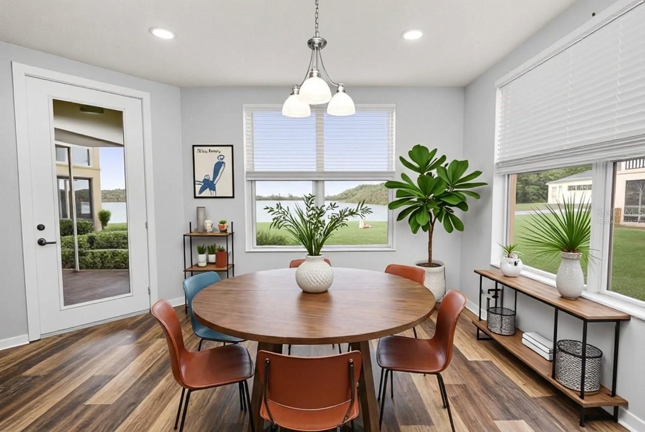 One or more photo(s) has been virtually staged. Welcome to the Carriage Homes at Carillon Lakes, where space, style, and tranquil lakefront living come together. This stunning ground-floor residence offers 1,812 square feet of thoughtfully designed living space with sweeping views of picturesque Lake Melody. Featuring an open-concept layout and a desirable split-bedroom floor plan, this 2-bedroom, 2-bath home is ideal for both everyday comfort and effortless entertaining. At the heart of the home, a generous family room, dining area, and well-appointed kitchen flow seamlessly together, all framed by a wraparound view of the lake. The kitchen boasts a built-in breakfast bar and opens to a large bonus room through double pocket doors—perfect as an elegant dining space, cozy den, home office, entertaining lounge, or even a third bedroom. An inside utility and laundry room with shelving and direct garage access adds convenience and abundant storage. Off the foyer, one wing hosts a guest bedroom and full bath, while the opposite wing leads to the spacious and private primary suite. A hallway with walk-in and bi-fold closets enhances privacy before opening to the tranquil primary retreat. The en-suite bath features dual vanities, a large soaking tub, an oversized walk-in shower, and a private water closet. From the primary bedroom, step directly onto your screened-in rear patio—an ideal spot to relax, unwind, and enjoy the peaceful lake views. A second patio door provides easy access back into the main living area, creating a seamless indoor-outdoor flow. And the lifestyle doesn’t stop at your front door. Carillon Lakes is a resort-style, gated community offering 24-hour guarded security, a clubhouse with event spaces, a sparkling pool and spa, and lighted basketball, tennis, and pickleball courts. Residents also enjoy scenic walking paths, private lakes, fishing, and more. Best of all, the monthly condo fee covers security, cable and internet, exterior maintenance, lawn care, and full access to all community amenities—truly near maintenance-free living. Discover the perfect blend of comfort, convenience, and resort-style living in an unbeatable location. Schedule your private showing and experience all that 3901 Serenade Lane has today.