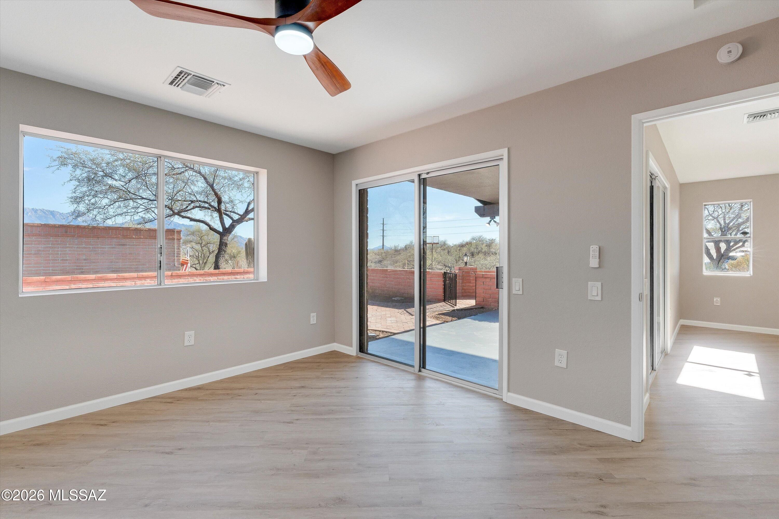 Charming Burnt Adobe Home on a Premium Cul-de-Sac with Sweeping Mountain Views! This beautifully updated, move-in-ready home features all-new kitchen and bathroom cabinets, brand-new stainless steel appliances, 2 new water heaters, flooring, interior paint, baseboards, plumbing, and electrical fixtures. The semi-open floor plan offers comfortable everyday living, with sliding glass doors that open to a private back patio and front courtyard, ideal for indoor-outdoor enjoyment. The spacious primary suite includes direct outdoor access, a walk-in closet, and an attached bonus room perfect for a home office, craft room, or exercise space. Complete with a 2-car garage, elevated setting, and incredible views--this home truly checks all the boxes.