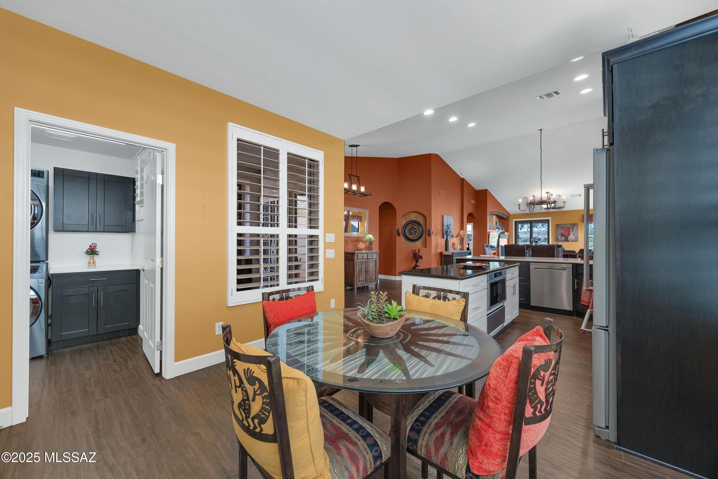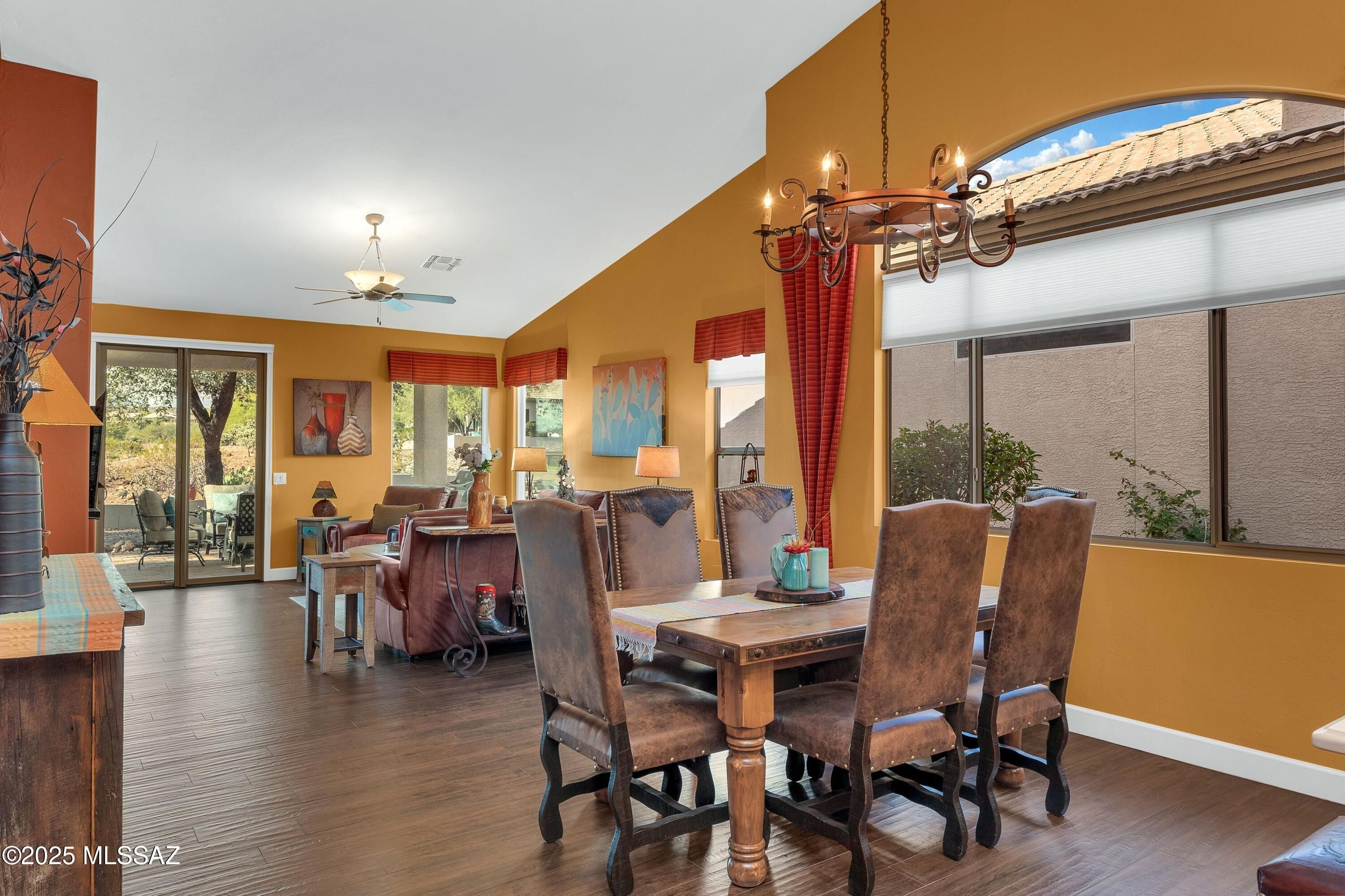 Extensively remodeled Portofino villa with open floor plan and very private patio overlooking the MountainView Golf Course. This TURNKEY, western-inspired townhouse offers modern comfort, HOA-maintained exterior, and comes fully furnisheda''ideal for move-in buyers or investors. A full SaddleBrooke Remodeling renovation opened the entry and transformed the kitchen with quartz counters, soft-close cabinetry, gas range with chimney hood, a large island with microwave and warming drawer, and coffee/wine station. Porcelain wood-look tile runs throughout, enhanced by new Marvin windows, a Pella slider, and a custom entertainment wall w/lit niches, gas-log fireplace, and 55' TV. Spa-style baths include tiled walk-in showers with custom storage; the primary adds barn-door privacy. Outside, the