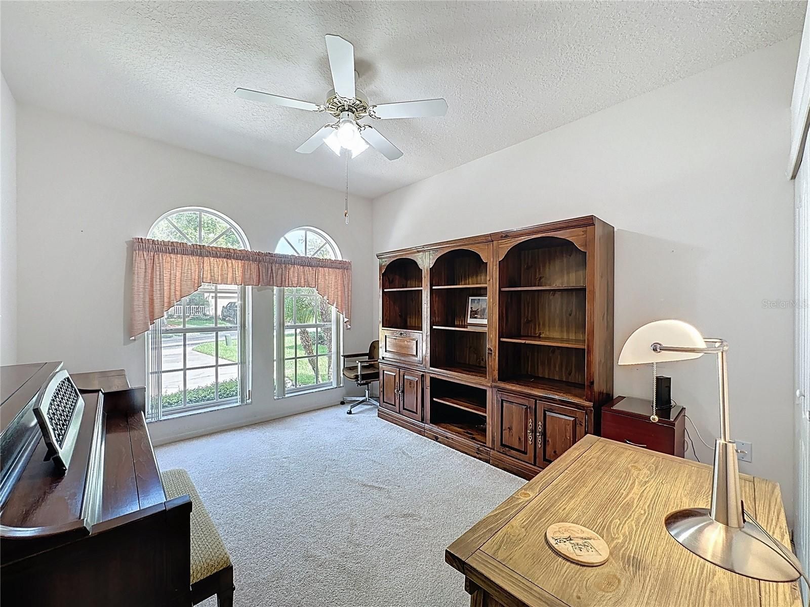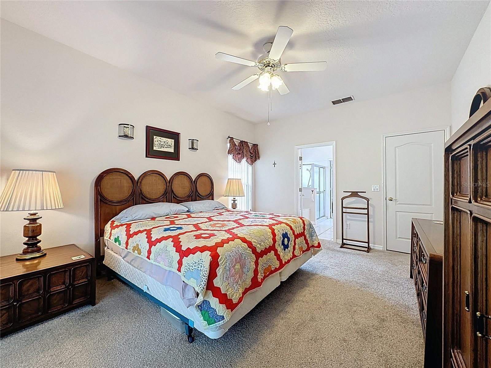 - Ceiling Fan(s), High Ceilings, Open Floorplan, Main Level Primary, Solid Surface Counters, Thermostat, Walk-In Closet(s)