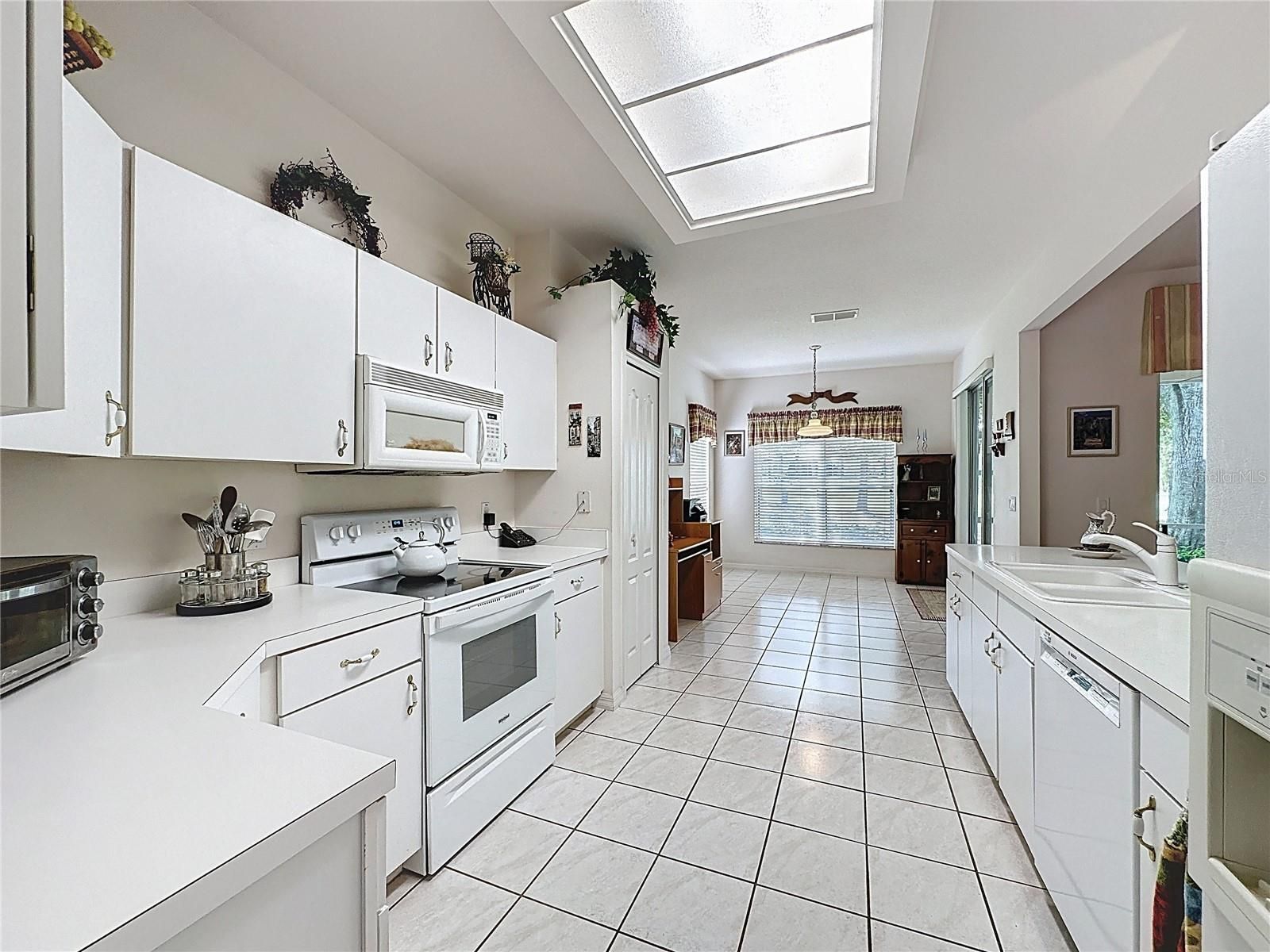 Price Reduction of $20,000. Home being sold "As Is". Popular St Laurent model located in 55+ gated Kings Ridge community. Brand new shingle roof as of July 2025. Located on the golf course with beautiful views. Home has 1790 SF with 3 BD/ 2 Ba with an expanded 2 car garage. Very open floor plan with no wasted space. Home has a galley style kitchen and separate breakfast nook. The primary bathroom has Jacuzzi tub, walk in shower and private toilet area. the Primary bedroom has a very large walk in closet. Enjoy some great views from the back screened in lanai. There is a separate laundry room and washer & dryer remain. Kings Ridge is a 55 Plus gated golf community located in the rolling hills of Clermont, Fl. Enjoy the Royal life style in the multi-million $ clubhouse with 3 heated pools, spas, tennis & pickle ball courts, billiards, shuffle board, shows, Bingo, cards and clubs galore. The monthly maintenance fees include: lawn maintenance including trimming of shrubs, care of irrigation system & irrigation water, internet, TV & home phone thru Opticaltel , maintenance of roads and outside painting of home every 7 years. Take your golf cart to the Kings Ridge Plaza where you can do your grocery shopping, banking or dine out. Approximately 30 minutes to Disney Parks or Universal Studios.