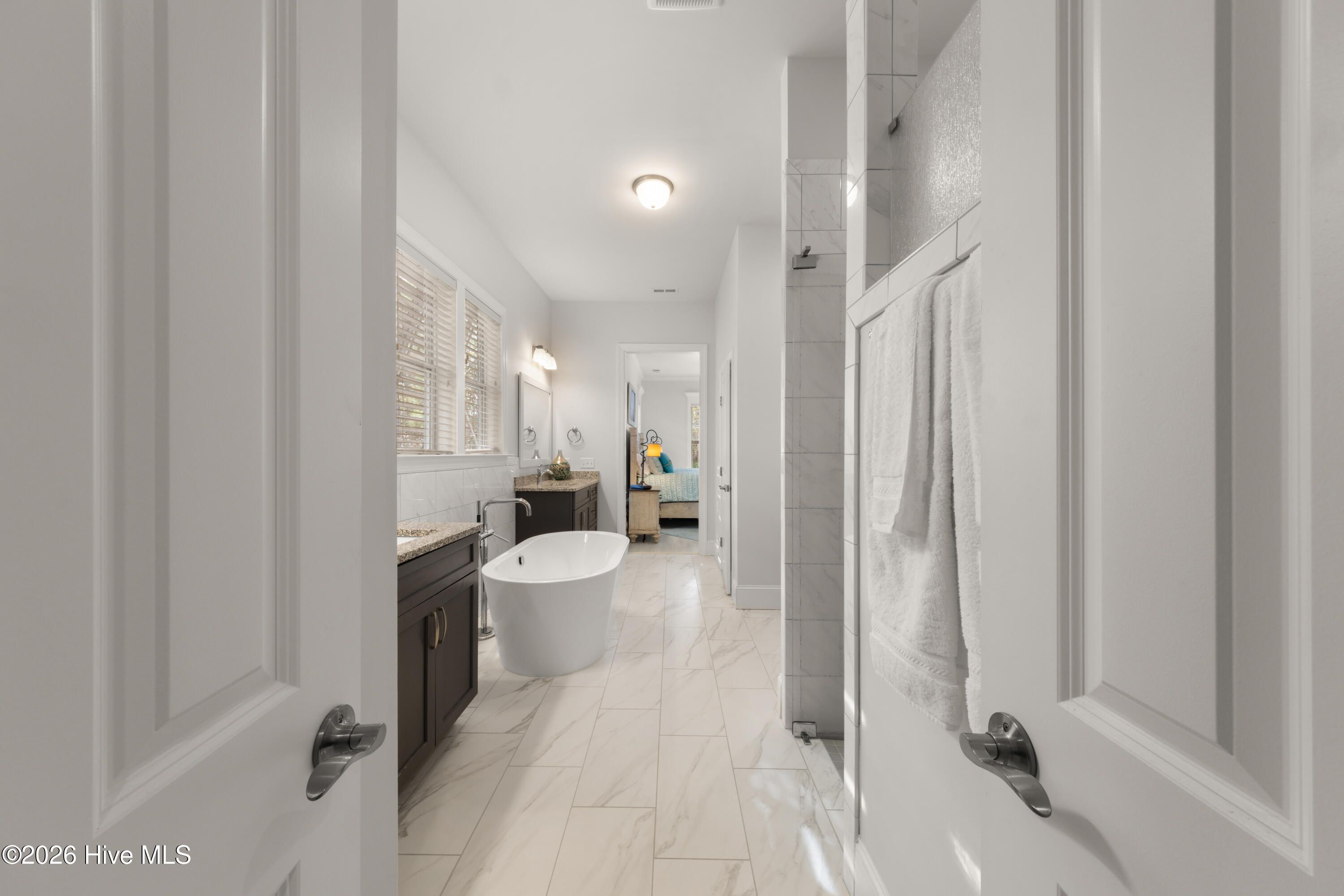 Experience the pinnacle of coastal elegance in this like-new custom residence by Hagood Homes, ideally located on a sprawling 0.55-acre cul-de-sac lot just steps from the Grove Gate, full-service Marina, and private Beach Club. Designed for seamless indoor-outdoor living, the home welcomes you with a grand Southern front porch and opens to an elegant foyer highlighted by sophisticated coffered ceilings. The expansive great room is the heart of the home, featuring deep tray ceilings, a modern fireplace, and telescoping glass doors that disappear to connect the interior to a sun-drenched sunroom, screened porch, and open deck—perfect for entertaining or relaxing in coastal comfort. Culinary excellence awaits in the chef's kitchen, anchored by a massive quartz island with bar seating and enhanced by statement lighting. Premium features include a striking vertical tile backsplash, gas cooktop, built-in oven and microwave, wine storage, and a spacious walk-in pantry. The primary suite is a true sanctuary, offering a spa-inspired bath with a freestanding soaking tub, walk-in tile shower, dual vanities, and a generous walk-in closet. Guest accommodations are equally impressive, with two first-floor guest rooms sharing a beautifully updated bath with a tiled walk-in shower, ideal for a potential second primary suite. Upstairs, a private bonus suite serves as a fourth bedroom complete with a full bath. The exterior is a botanical masterpiece, showcasing winding stone pathways, Japanese Maples, and lush landscaping that provides exceptional privacy. This premier location offers effortless access to St. James' most coveted amenities while maintaining a serene, private setting. As a resident of St. James Plantation, enjoy a gated coastal community with four secure entry points, a private oceanfront beach club with pool and showers, full-service marina, Beacon Restaurant & Tiki Bar, and numerous parks. Optional club memberships provide access to four championship golf courses (81 holes), four additional pools, three fitness centers, award-winning tennis, pickleball, and croquet. Discover why St. James has been ranked the #1 Coastal Community in the Carolinas for over 20 years. Schedule your private tour today and experience the exceptional lifestyle that awaits.