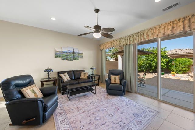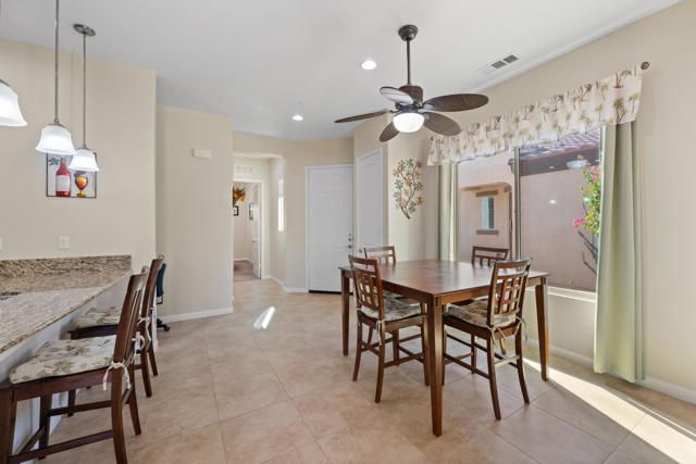Forget the moving truck, this gorgeous TURNKEY furnished 2-bedroom, 2-bathroom in the premier 55+ community of Sun City Shadow Hills, is the easiest move you'll ever make. Step inside this bright and welcoming home that perfectly blends comfort and functionality. The open-concept layout flows seamlessly from the large, well-appointed kitchen with STAINLESS STEEL APPLIANCES, pantry and workstation to the spacious dining and living area that opens to your private patio on a deep lot, a tranquil oasis ripe with mature fruit trees. Let's talk about UPGRADES - new paint; new bedroom carpets; fridge, microwave, washer and dryer purchased in 2023; workbench, cabinets and epoxy floor in the 2-car garage, adjustable LED lighting; and Smart WIFI controlled features including a Nest Thermostat; Raicho Irrigation Controller; LiftMaster Smart Garage Door; and Keyless Door Entry. Control your home from anywhere with confidence! This is more than a home; it's a complete, maintenance-free lifestyle package, ready for you to enjoy on day one. As a resident of Sun City Shadow Hills, you'll gain access to an incredible collection of amenities, including the CHAMPIONSHIP GOLF COURSE, two clubhouses, multiple pools, state-of-the-art fitness centers, tennis, pickleball, and a vibrant calendar of social clubs and activities. Your HOA fees also include high-speed internet! Don't let this opportunity pass you by.