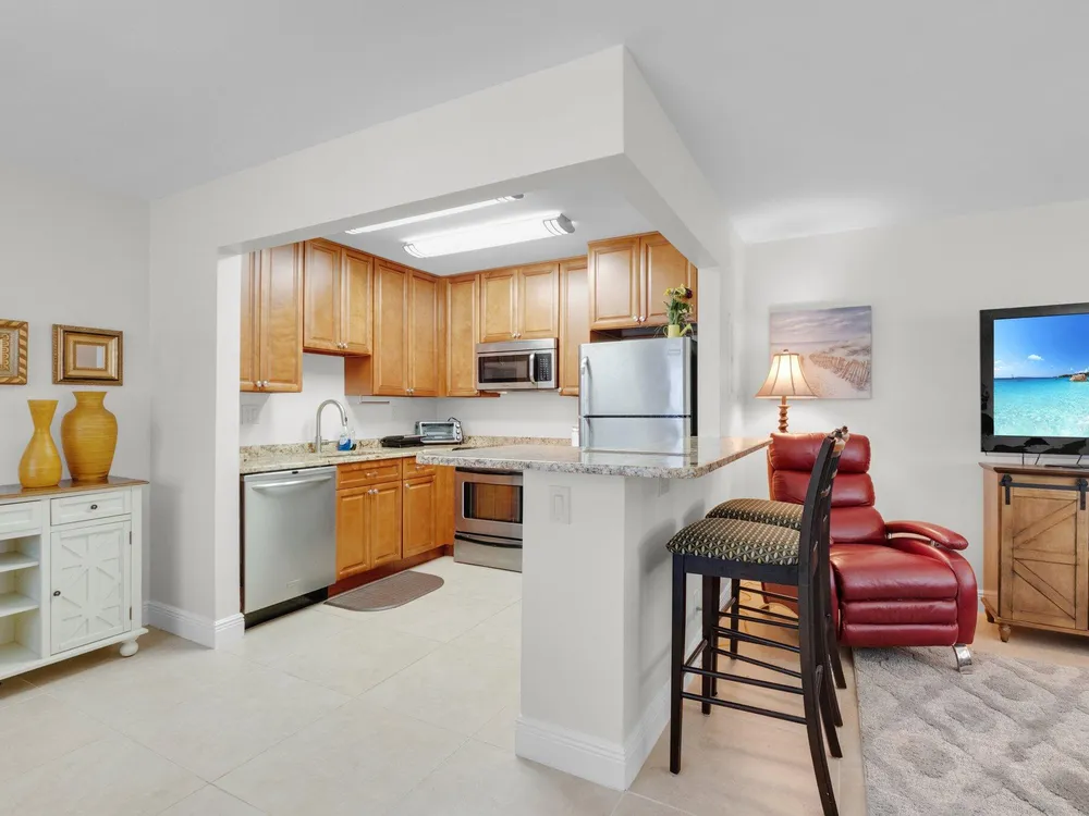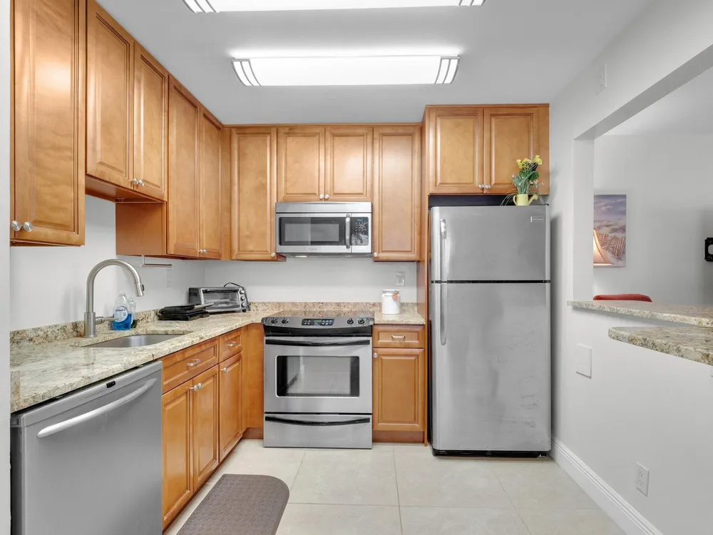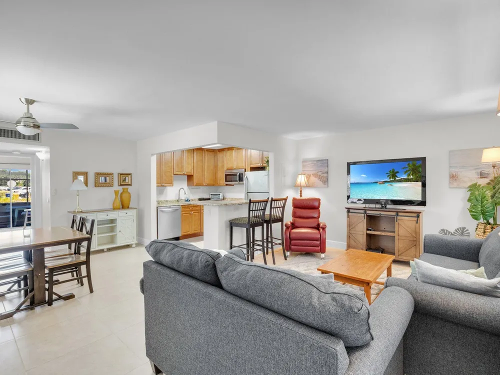 Beautifully Updated 1-Bedroom, 1.5-Bath Condo in Desirable Kings Point 55+ Golf Community! Rentable immediately! Discover this furnished, move-in-ready home featuring an updated kitchen and bathrooms, elegant tile flooring throughout, and complete impact windows for added security. The spacious patio includes a washer and dryer along with extra storage for your convenience. Enjoy easy access to the Monaco Clubhouse, located just a short walk away, and be close to the community's pools. Kings Point offers a vibrant lifestyle with amenities such as indoor and outdoor pools, a theater, cafeteria, fitness centers, and more. A courtesy bus is available to take you around the community and beyond.This worry-free unit is perfect for comfortable, low-maintenance living. SCHEDULE YOUR TOUR TODAY!