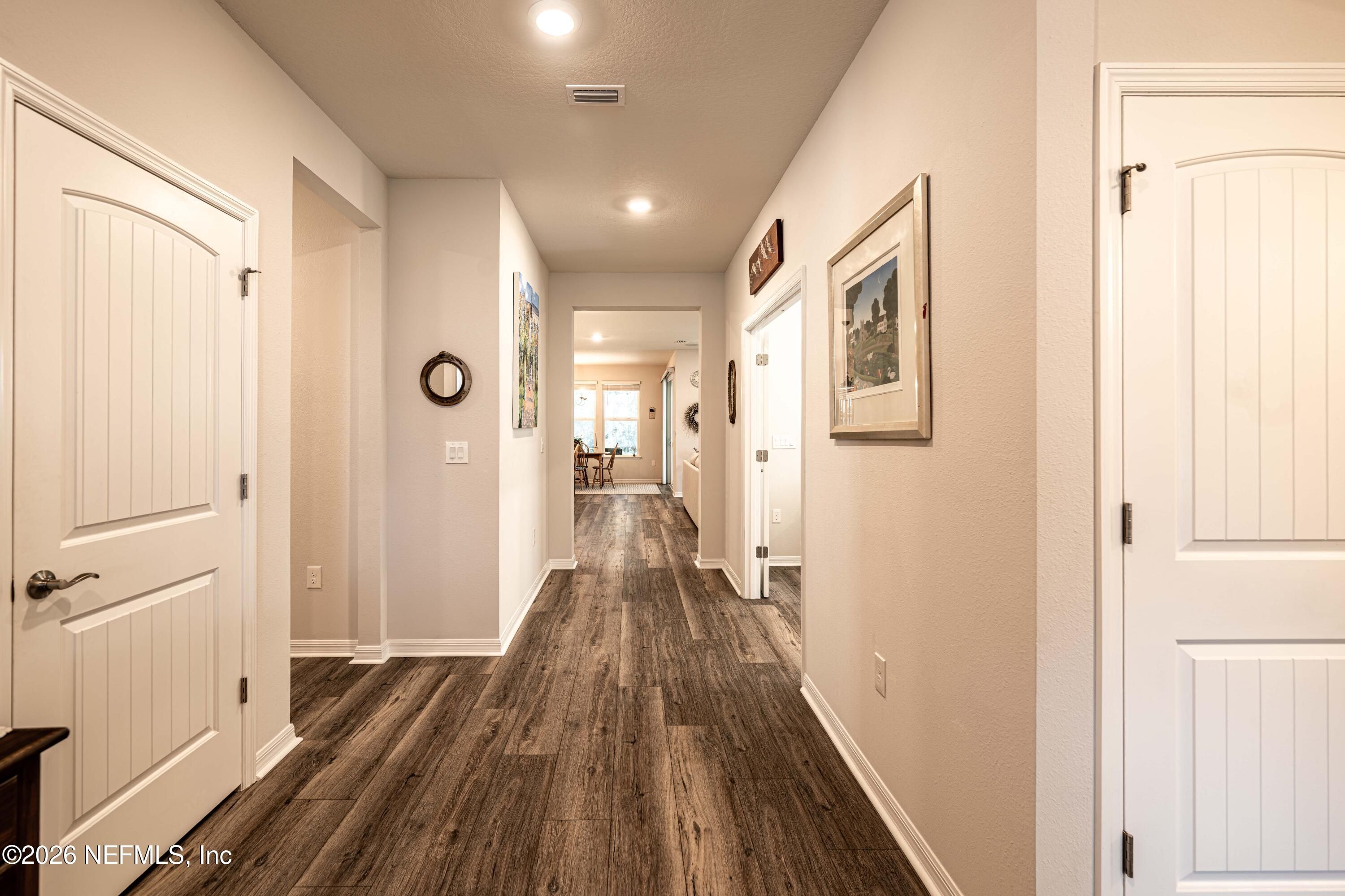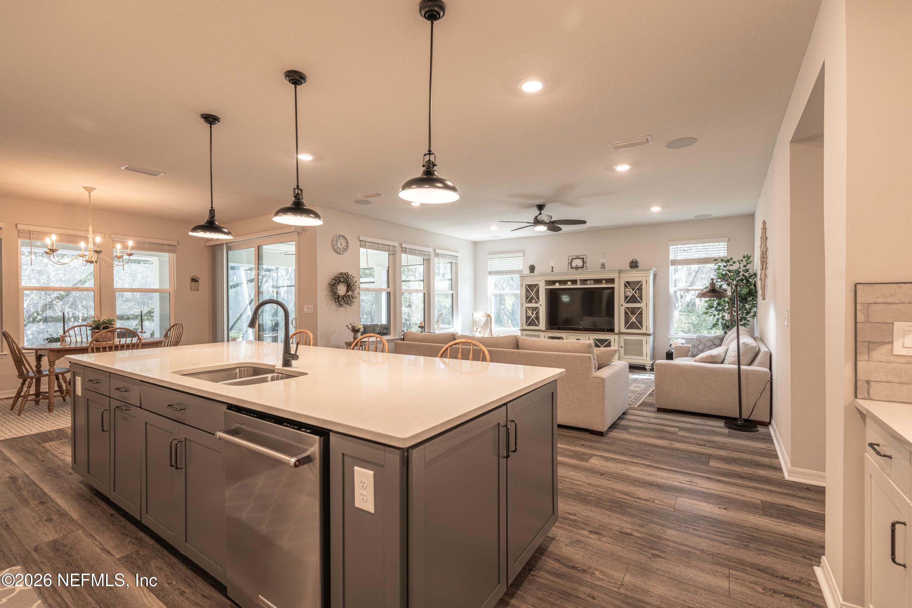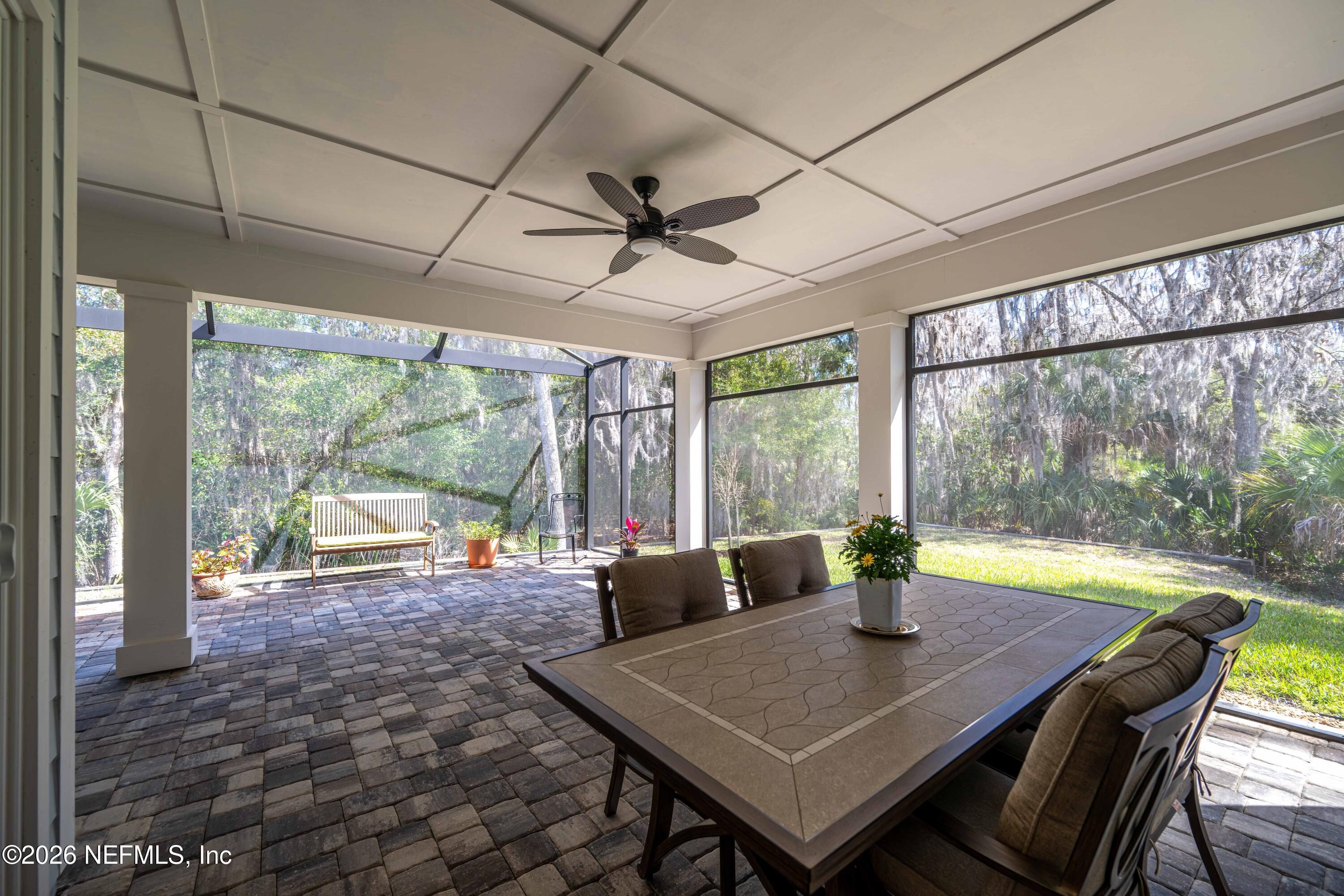 A spacious and serene private estate, situated on a secluded Cul de Sac, offers a luxurious ''Renown'' floor plan home. The property features a uniquely shaped lot with mature Canopy trees providing shade to the right and rear, creating a picturesque park-like ambiance from the interior of the screened lanai. The large gourmet chef's kitchen features elegant quartz countertops, generous cabinetry, and plenty of space for entertaining. The living room has been upgraded with surround sound speakers to enhance your life style experience. The home has three spacious bedrooms with in suite bathrooms and walk in closets, a separate den/flex room with glass doors, a spacious laundry room with a sink and cabinets. The 3 car garage features Screened garage doors and epoxied floor. Located in the active 55+ community of Del Webb Nocatee. The Canopy Club includes a restaurant, club house, fitness room, two pools, Large outdoor Jacuzzi, pickle ball courts, tennis courts, bocci ball courts, an Located in the active 55+ community of Del Webb Nocatee. The Canopy Club includes a restaurant, club house, fitness room, two pools, Large outdoor Jacuzzi, pickle ball courts, tennis courts, bocci ball courts, and numerous clubs and activities.