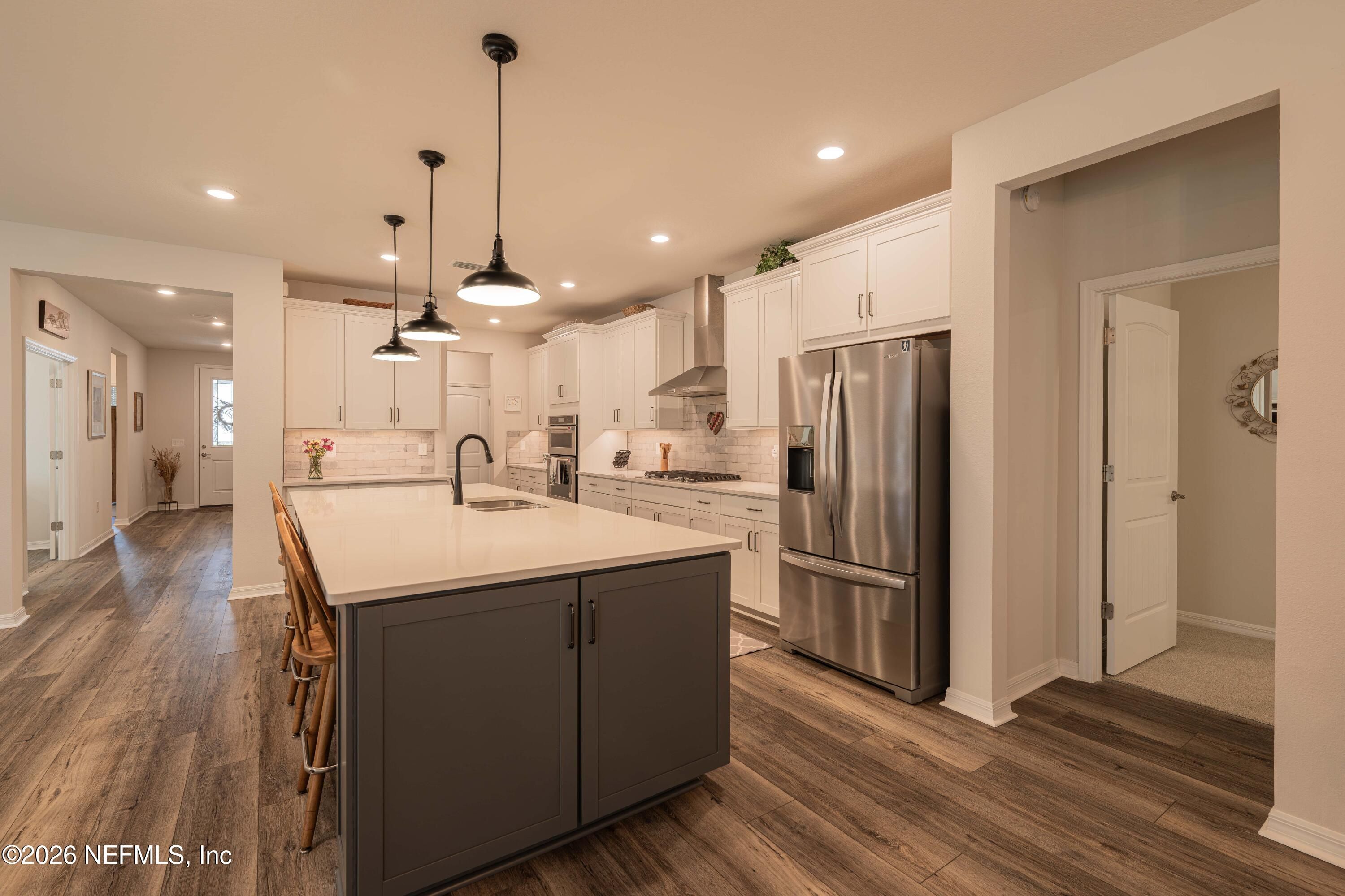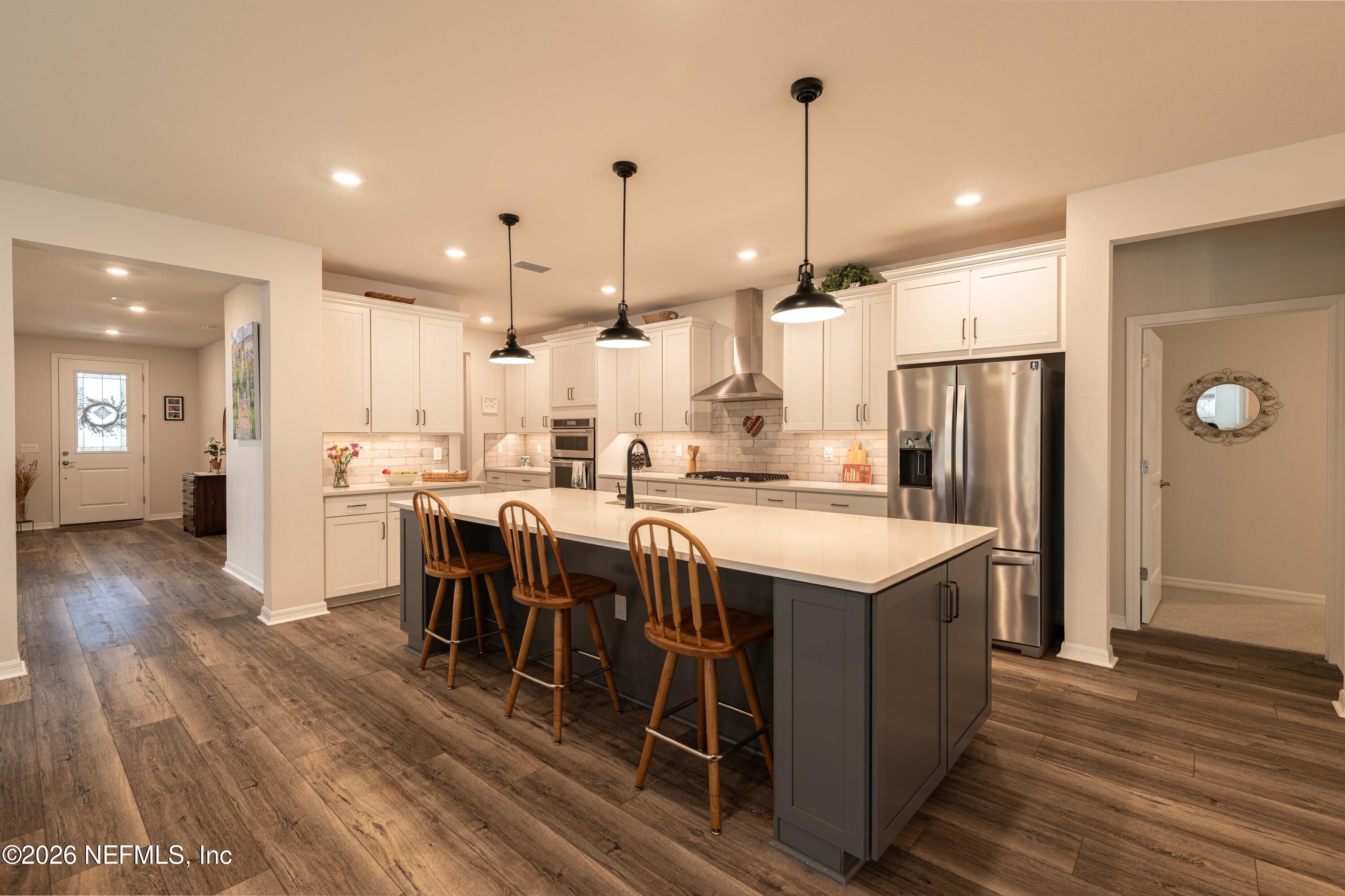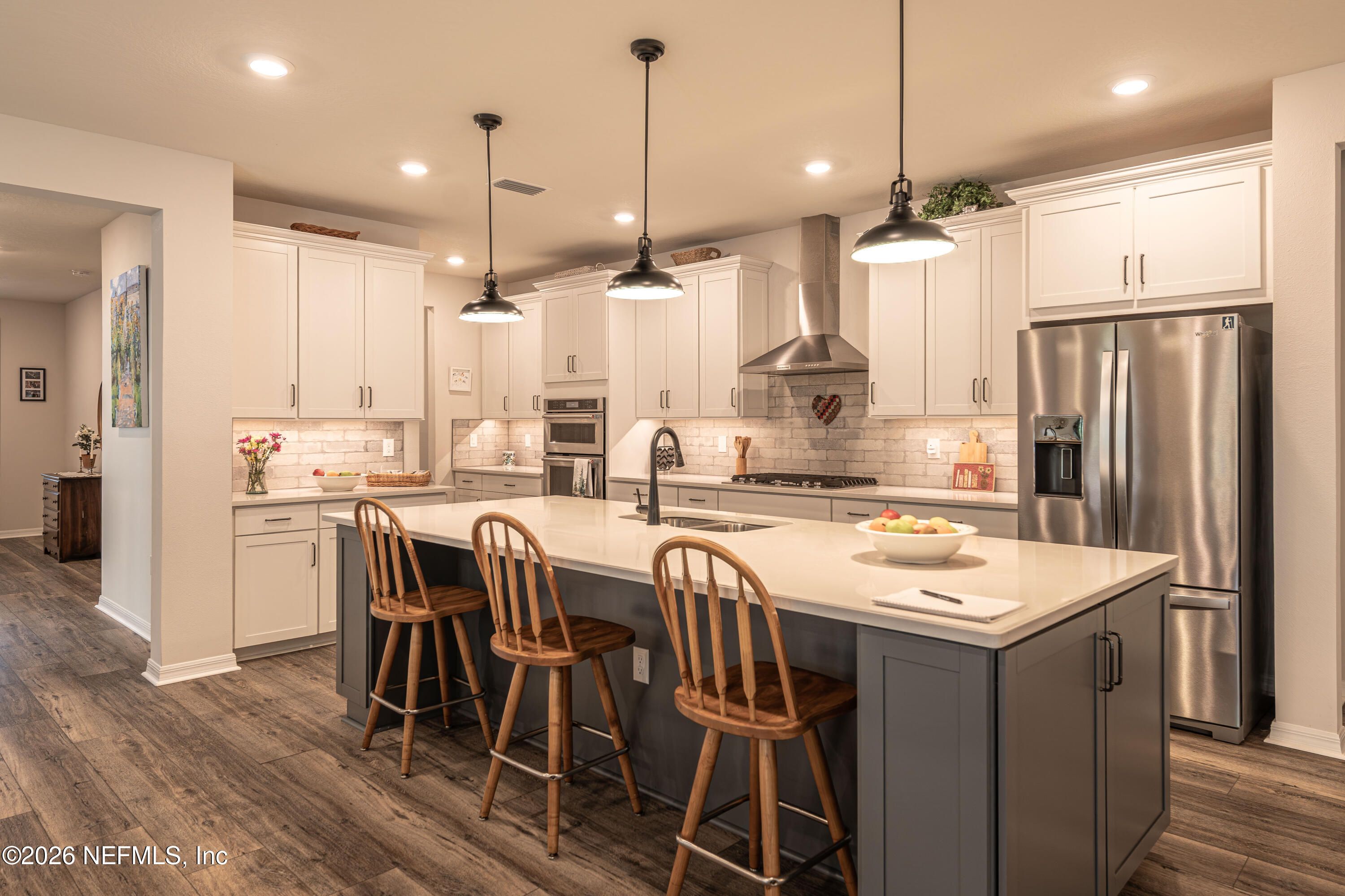 A spacious and serene private estate, situated on a secluded Cul de Sac, offers a luxurious ''Renown'' floor plan home. The property features a uniquely shaped lot with mature Canopy trees providing shade to the right and rear, creating a picturesque park-like ambiance from the interior of the screened lanai. The large gourmet chef's kitchen features elegant quartz countertops, generous cabinetry, and plenty of space for entertaining. The living room has been upgraded with surround sound speakers to enhance your life style experience. The home has three spacious bedrooms with in suite bathrooms and walk in closets, a separate den/flex room with glass doors, a spacious laundry room with a sink and cabinets. The 3 car garage features Screened garage doors and epoxied floor. Located in the active 55+ community of Del Webb Nocatee. The Canopy Club includes a restaurant, club house, fitness room, two pools, Large outdoor Jacuzzi, pickle ball courts, tennis courts, bocci ball courts, an Located in the active 55+ community of Del Webb Nocatee. The Canopy Club includes a restaurant, club house, fitness room, two pools, Large outdoor Jacuzzi, pickle ball courts, tennis courts, bocci ball courts, and numerous clubs and activities.