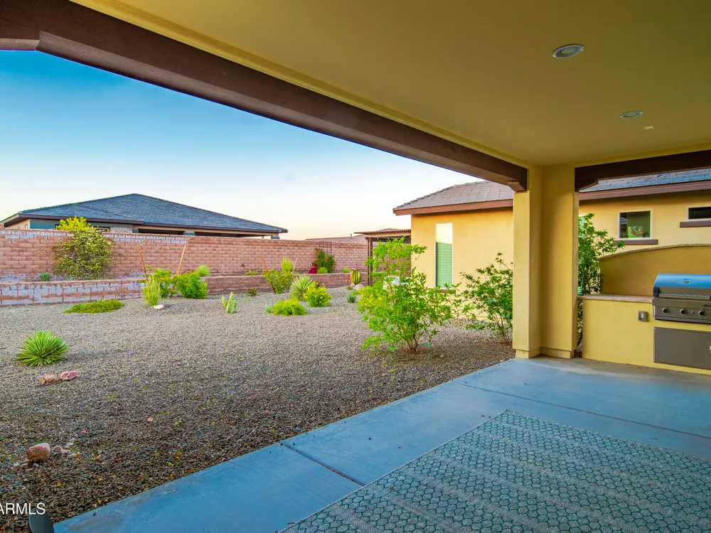 This highly sought after Cyprus model can be yours today! SPACIOUS 2 bedrooms & an office/den or room for another bedroom*LARGE WALK IN CLOSET w/ Window*Many upgrades. Wood look tile flooring*SS appliances*Soft close drawers*Gas cook top*Granite counters*Touch free faucet*Covered back patio boasts built in gas grill*Underground propane tank owned*Auto drip landscaping*A wall of Glass Telescopic doors. Extended height doors *Utility Sink in Laundry Room*extended Length 2 car garage w/ epoxy floor*Extended Length paved driveway*Move in Ready* A great investment for full/part time resort living or a rental. Backyard has a tall block wall. West side is a partial rebar fence. East side is not fenced.
