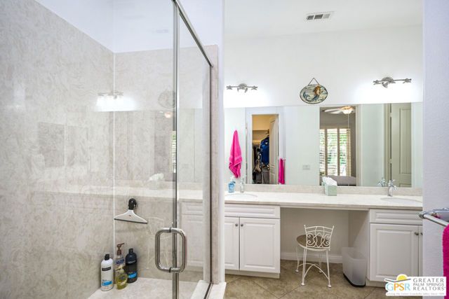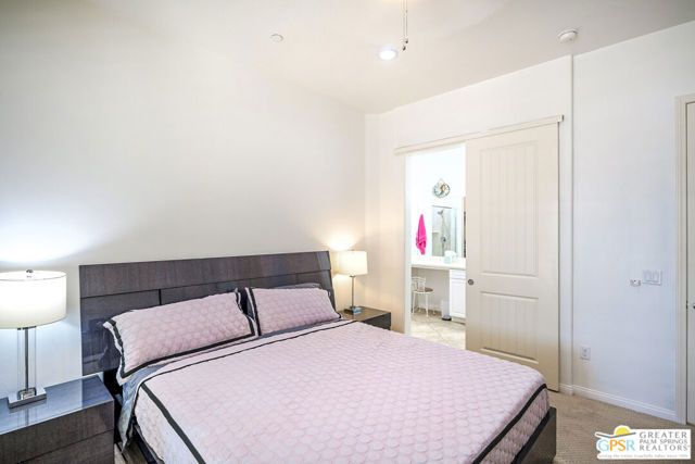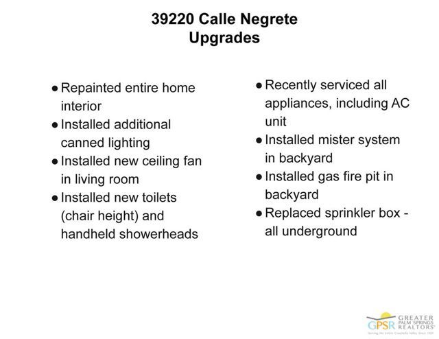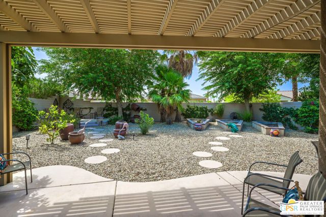 Seller is offering seller financing on this Beautifully Upgraded Hideaway Plan in Sun City Shadow Hills. Room for Pool! Built in 2012, this highly upgraded Phase 3 Hideaway plan offers 1,512 sq. ft. of open-concept living in one of the newest areas of Sun City Shadow Hills, Indio's premier 55+ active adult community. Featuring 2 bedrooms, 2 baths, plus a versatile den that can easily be a third bedroom or home office, this home checks all the boxes. The modern front elevation is enhanced by easy-care desert landscaping and a large, pool-sized lot. Inside, 24x24 diagonal-set modern tile flows through the main living spaces, complemented by plantation shutters throughout. The chef's kitchen boasts crisp white cabinetry, granite countertops, a stool-height prep island, dining area, and great room perfect for entertaining. The spacious primary suite includes patio access through a glass slider and features a barn-style door leading to the luxurious bath with dual vanities, walk-in shower, and a generous walk-in closet. Guest bedroom and primary closets have upgraded diagonal patterned carpet. The extended garage includes an insulated overhead door, anchored storage cabinets, and side door access to a walkway connecting to the driveway. Outdoor living shines here with an extended concrete patio, Alumawood cover, fire pit, tranquil water feature, raised garden beds, and gorgeous sunset skies.Enjoy resort-style living in Sun City Shadow Hills, with championship golf, pickleball, tennis, fitness center, pools, clubhouses, and endless activities. This move-in ready home offers comfort, upgrades, and space to design your dream desert lifestyle.