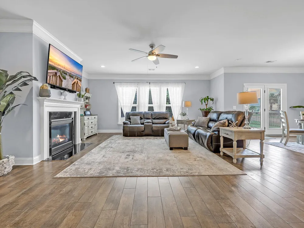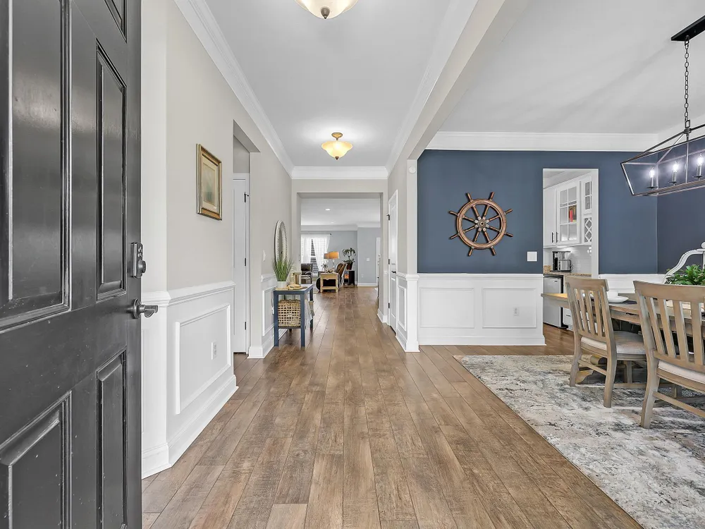 Welcome to this beautifully maintained 4-bedroom, 2.5-bath Vanderbilt model home by Pulte Homes. It is located in the desirable, gated Amherst section in the natural gas community of Berkshire Forest. Set on a spacious corner lot bordered by wooded land in both the front and back, this home offers exceptional curb appeal and a unique layer of privacy in one of Myrtle Beach’s premier neighborhoods. Step inside to find rich 3" oak wood laminate flooring, abundant natural light, and a layout that effortlessly blends style, functionality, and comfort. The open concept living area includes easy access to the fenced in back yard, a cozy fireplace, and distinctive flexible work zone, making it perfect for everyday living or entertaining. The kitchen is an absolutely centerpiece with stainless steel appliances, a gas range, granite countertops, butler’s pantry, breakfast island and nook, and 36" staggered birch cabinetry, ideal for those who love to cook and gather. Adjacent is a formal dining room, plus a private home office or study for remote work or quiet reading. The first-floor primary suite features a tray ceiling, large picture window, and en-suite bath with double vanities, floor-to-ceiling tiled shower, a linen closet, and a spacious walk-in closet. Upstairs, you’ll find a generous open loft with access to the front balcony, perfect as a second living area, playroom, or media space. Three additional bedrooms each offer walk-in closets and access to a shared full bath. The 2-car garage includes a stacked third bay with a utility sink, ideal for a third compact vehicle, golf cart, home gym, workshop, or hobby space. Living in Berkshire Forest means enjoying some of the best amenities in Myrtle Beach — and at 3925 Riley Hampton Dr., you're just a short walk away from them. These include a resort-style pool, hot tub, clubhouse, tennis and basketball courts, volleyball and bocce ball courts, playground, walking trails, and a large fishing lake with a pier that allows select non-motorized water sports. Don’t miss your chance to own this versatile, well-appointed home in a prime gated community with natural gas and top-tier amenities