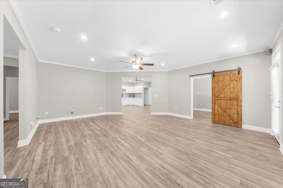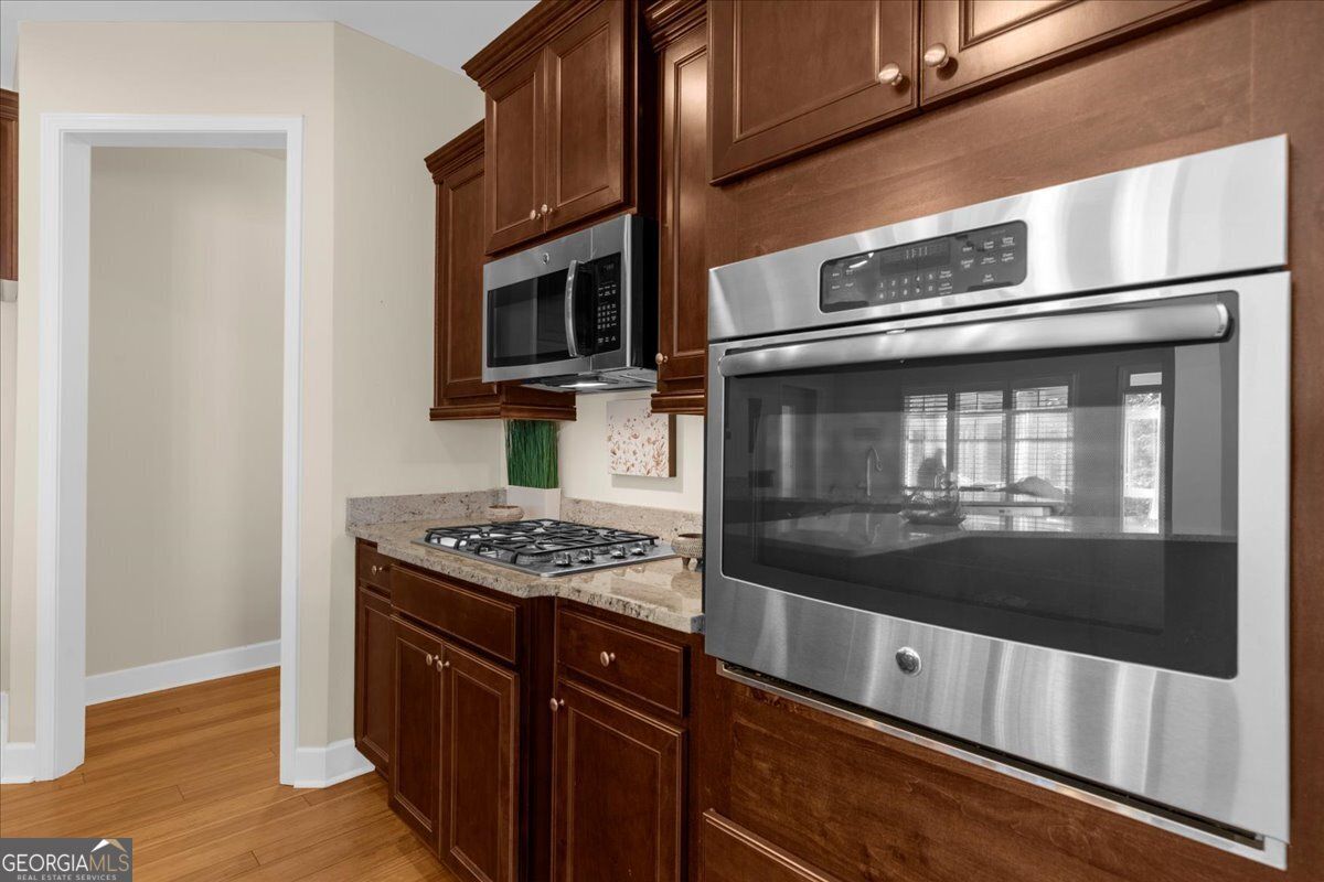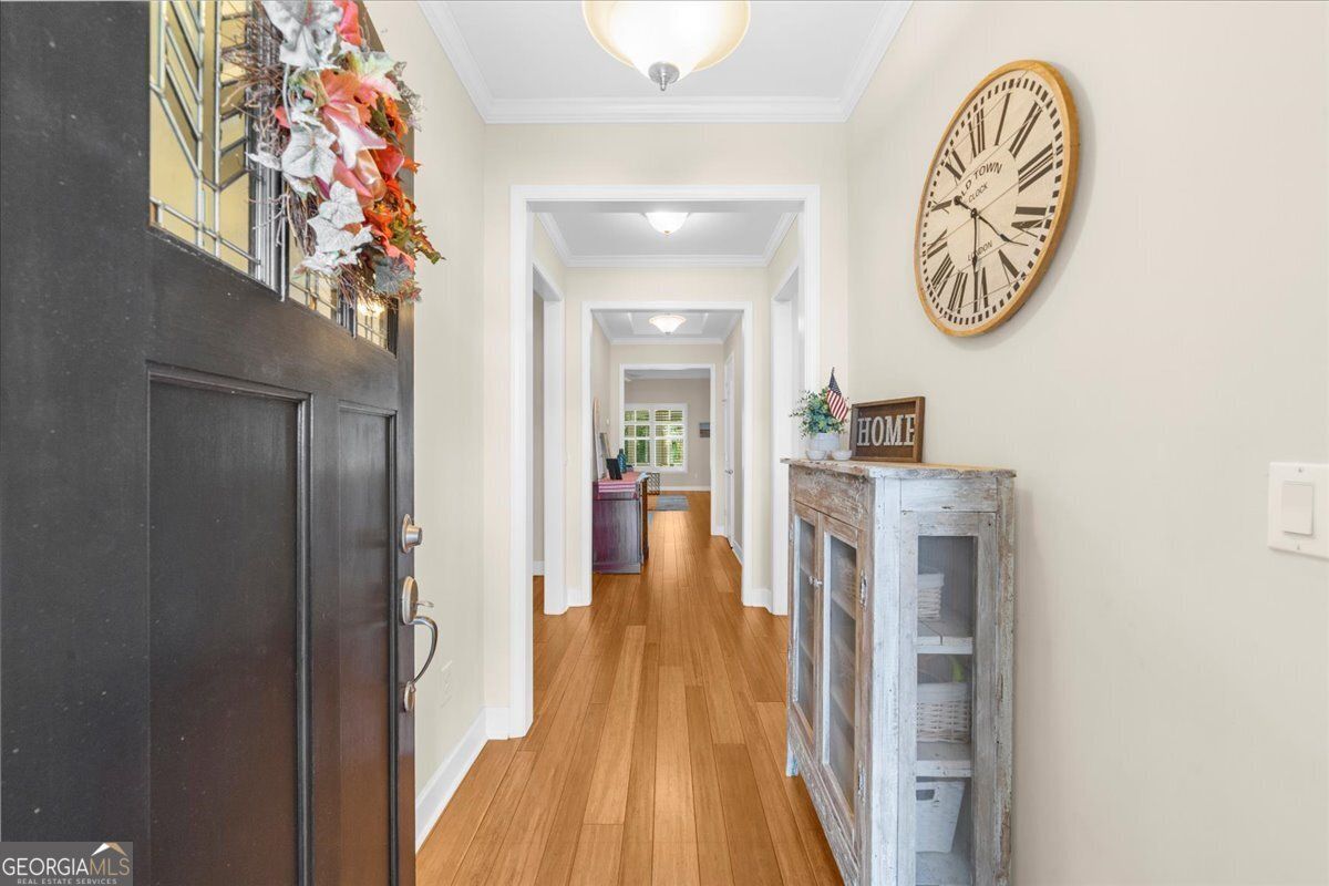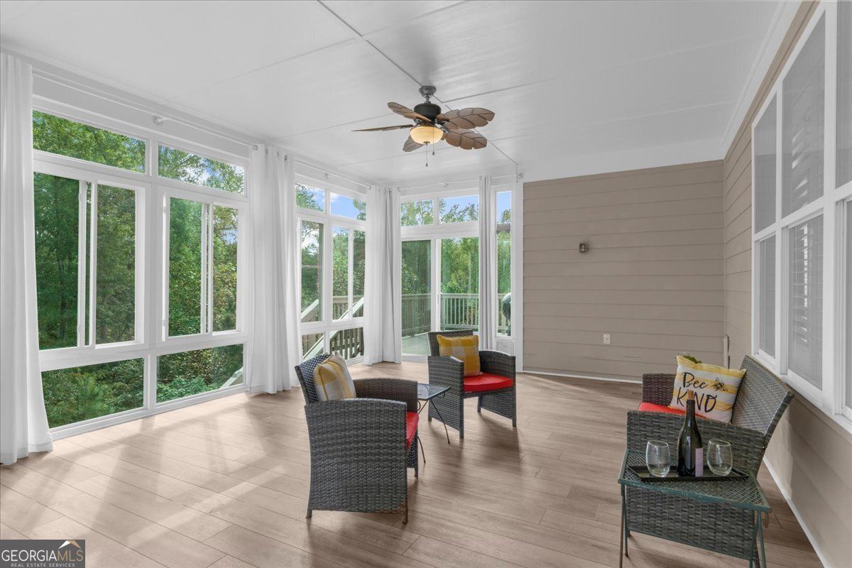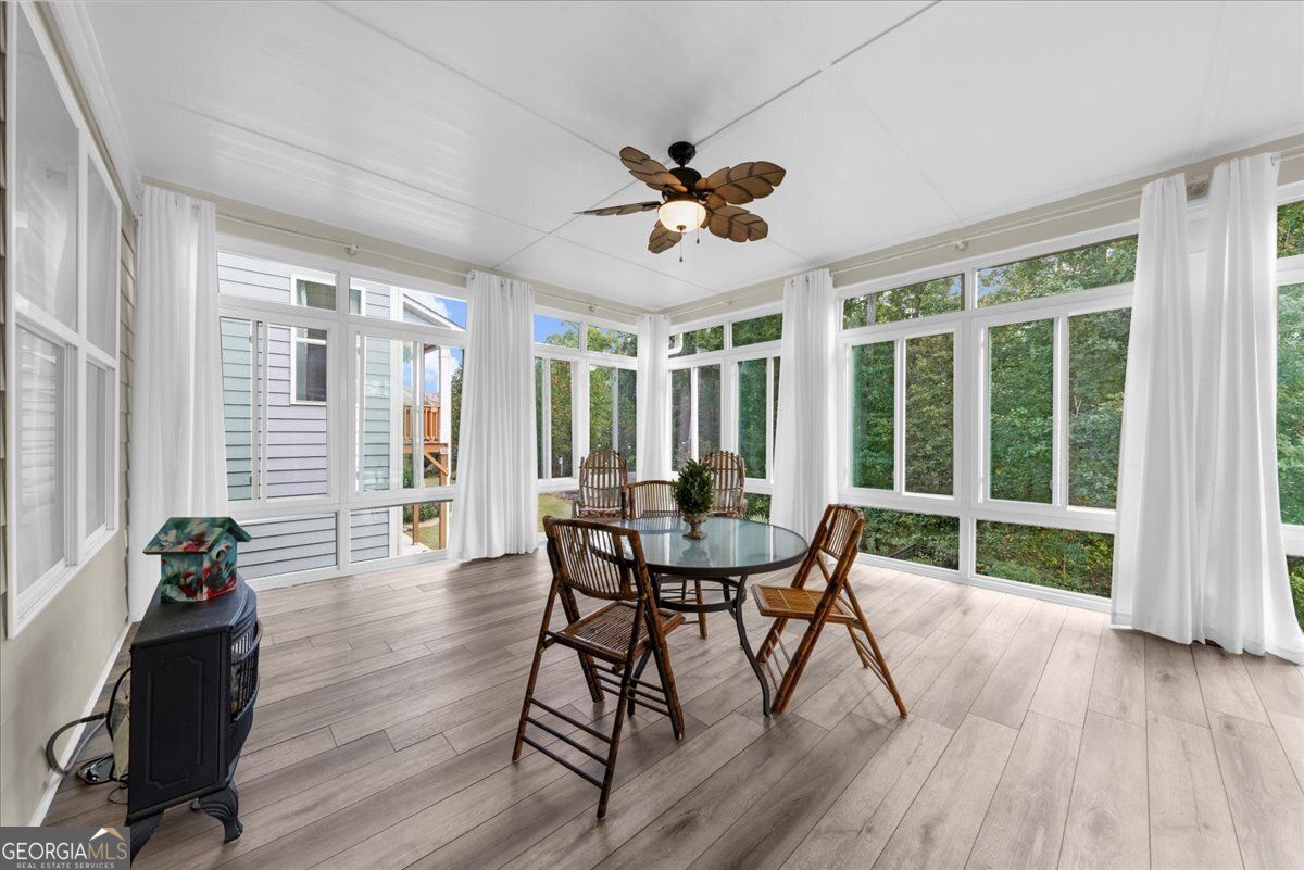 Explore Cresswind at Lake Lanier, an award-winning lakeside community offering a variety of indoor and outdoor activities designed for active adults. The 4,165 sq ft Maple model features an open floor plan with a finished terrace level that includes a kitchen, family room, four multi-purpose rooms, and a covered patio. The main floor boasts three bedrooms, two full bathrooms, a half bathroom, a living room, dining room, kitchen, an expansive 16 x 32 ft enclosed Lanai, and an extended garage. Smart home features allow control of lights and fans with voice-activated smart switches. Upon entering, you'll notice elegant bamboo hardwood floors throughout the main level and staircase. Plantation shutters adorn the windows, and double crown molding enhances the living room. The spacious living room flows into a dining area perfect for seating over twelve guests, with custom window placements providing extra room for furniture. The pantry door is strategically placed to improve traffic flow and maximize storage. The kitchen includes a breakfast bar, a large island for additional storage, a walk-in pantry, upgraded stained cabinetry with drawers in most cabinets, light granite countertops, stainless steel appliances, a gas cooktop, built-in oven, ceiling fan, and recessed lighting. The primary suite offers a walk-in shower, make-up vanity, dual undermount sinks, and a custom-designed walk-in closet with bamboo flooring matching the rest of the main level. Two guest bedrooms have walk-in closets and share a Jack and Jill bathroom with a tub/shower combination. A spacious laundry room is conveniently located near the kitchen. The STUNNING 16 x 32 ft WINDOW ENCLOSED LANAI overlooks the wooded rear property and features low-maintenance LVP flooring and a gas heater, making it a cozy space for entertaining. Exterior features include a deck with a natural gas Weber grill, doggie doors connecting the house to the sunroom and deck giving easy access to the stairway for your furry friends down to the lushly landscaped backyard. Plant your own vegetables in the spacious garden box and harvest fresh blueberries from the abundant blueberry bushes. On the terrace level, LVP flooring and dimmable lighting extend throughout. a convenient SECONDARY KITCHEN equipped with refrigerator, sink, cabinets, and granite counters. The open family room is designed for gatherings, while four flex rooms offer space for various purposes such as crafts, workshops, recreational activities, or a library. The 4TH BEDROOM is spacious enough for a king-size bed and is ideal for an IN-LAW SUITE WITH AN ADJOINING LIVING ROOM OR FOR A PRIVATE GUEST BEDROOM. The full bathroom features porcelain tiles, a sleek modern vanity, and a tiled walk-in shower. The covered patio utilizes an alternate support system to increase usable outdoor area. The EXTENDED GARAGE is WIRED FOR EV CHARGING. Cresswind at Lake Lanier features a 43,000 square foot, three-story clubhouse with indoor and outdoor pools, kayaking, fishing, courtesy boat docks, over 120 clubs, arts and crafts room, pickleball, tennis, fitness center, dance and fitness classes, poker, games, billiards, performances, chorus, concerts, and dances. An on-site activities director, property manager, and maintenance staff ensure smooth operation of all facilities. Residents are welcoming and actively encourage new neighbors to participate in community activities. As a 12+ year resident of Cresswind at Lake Lanier, I know you will love the lifestyle the community has to offer!