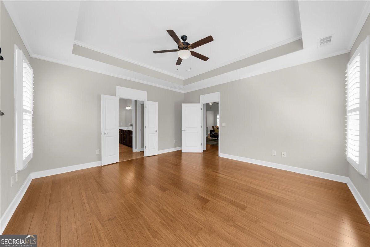 - Double Vanity, Main Level Primary, Rear Stairs, Split Bedrooms, Tray Ceiling(s), Walk-In Closet(s), Dual Pane Window(s), Window Treatments, Den, Entrance Foyer, Laundry Facility, Sunroom