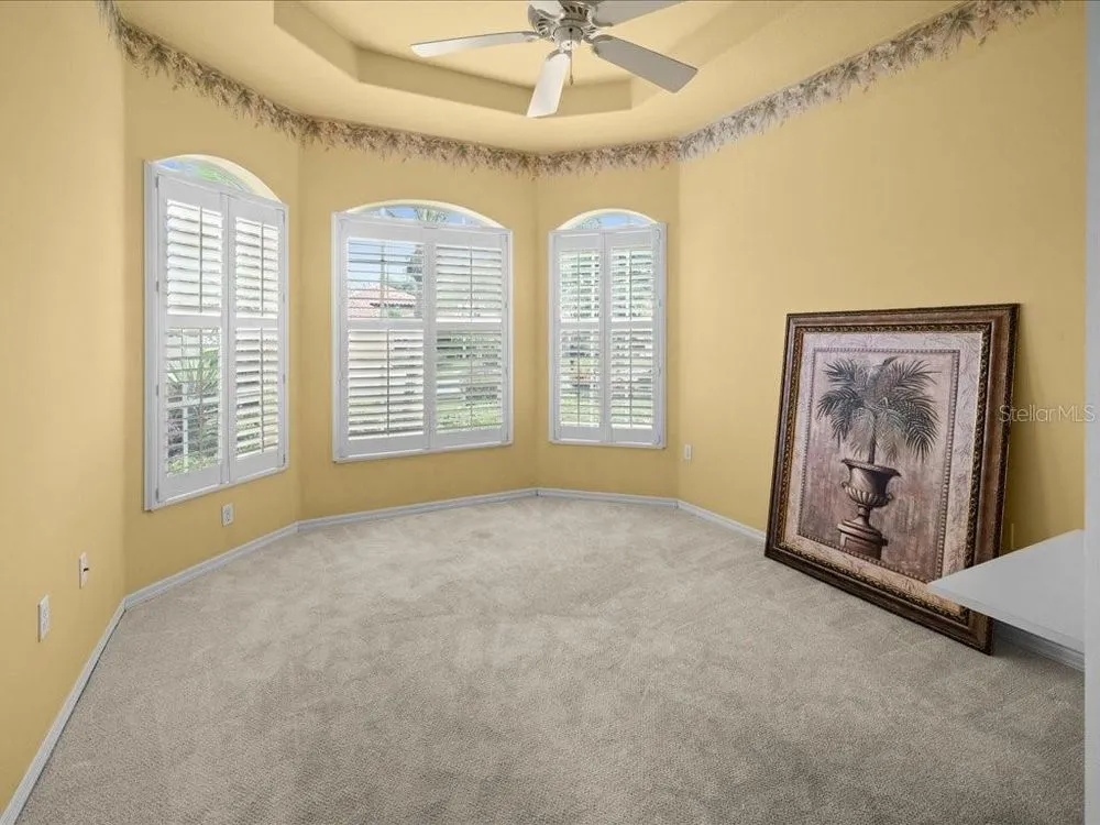 One or more photo(s) has been virtually staged. Discover serene lakefront living in the prestigious Heron Creek Golf & Country Club in North Port, Florida! This lovingly maintained 3-bedroom, 2-bath single-family home offers peaceful water views, a heated pool and spa with full screened enclosure, and lush tropical landscaping for added privacy and beauty. Step inside the 8' Double Entryway doors to find a bright and cheerful open concept layout with formal dining room and large Great Room with tray ceiling and 8' Tall Sliders to Lanai! The spacious Kitchen features newer stainless steel kitchen appliances, double undermount sink, deluxe raised panel cabinetry, granite countertops, and dinette area with Aquarium windows make it perfect for everyday comfort and entertaining. The built-in mirrored hutch and dry bar create a lovely backdrop whether you enjoy the formal dining experience or need flexible space for your Grand Piano! The Primary En-Suite is tucked away and features a tray ceiling, deluxe woodworking and trim, ceiling fan, oversized baseboard, large walk in closet with built ins and partition, a large bathroom with dual sinks, vanity area, tiled shower and water closet. In addition, you have two bedrooms, one sunny yellow with a fold-down desk from the closet, and the other shown as a home office with Executive Desk and credenza included! Other features include tile flooring throughout the main living areas, two in-floor outlets, luxury vinyl plank in the primary bedroom, freshly painted in a neutral coastal color palette, extra deep (31 feet) garage leading to Laundry Room with cabinets and laundry tub, architectural appointments inside and out, and a BRAND NEW TILE ROOF in 2024! Live the luxury lifestyle that comes with residing in this Arthur Hills designed Golf Course community, where more than 430 acres have been curated perfectly to balance environmentally protected nature preserves, expansive lakes and green space with the 27-hole Championship Golf Course. You'll be sure to enjoy the activities and events hosted at the elegant clubhouse, and have access to the fitness center, tennis courts, community pool, and more! NO CDD Fee, and LOW Quarterly dues cover lawn care, tree and shrub maintenance, irrigation water/system, INTERNET and Cable TV. Live, work, and play at Heron Creek—where every day feels like a getaway!