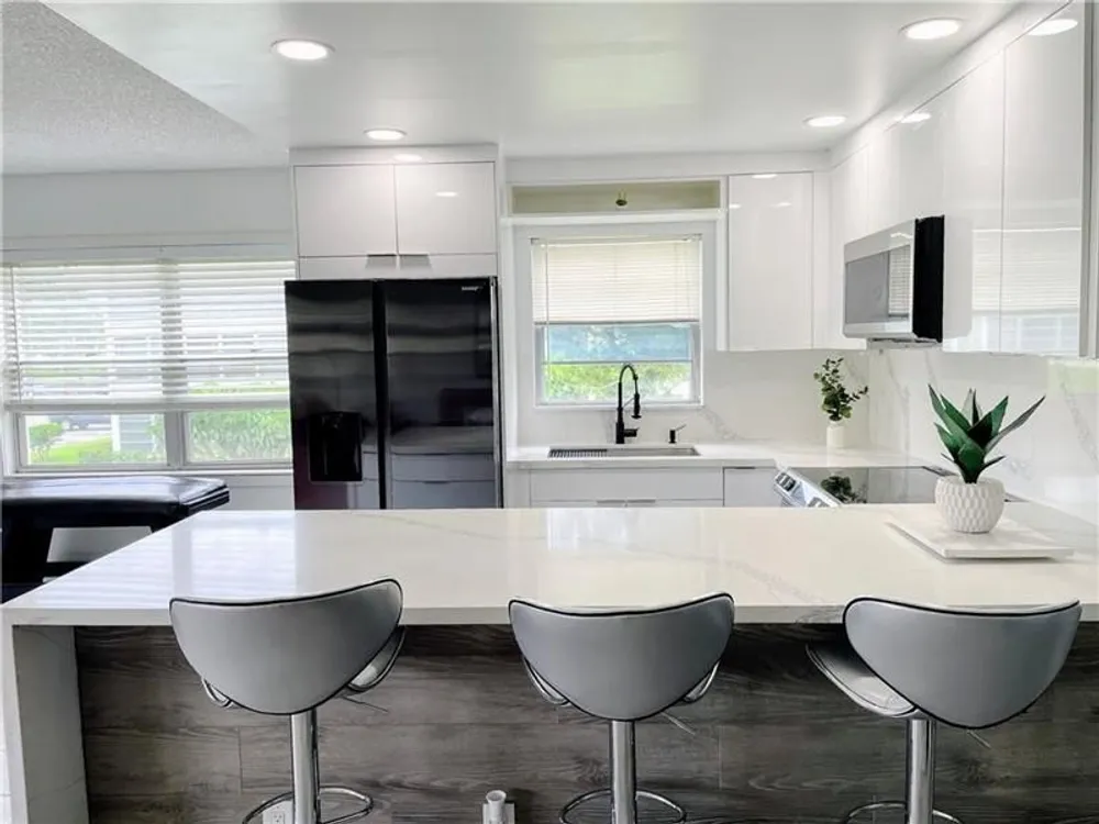 Move right into this beautifully renovated condo in the desirable gated 55+ community of Century Village. The open-concept kitchen impresses with stainless steel appliances, oversized countertops, and modern finishes. Tile flooring flows throughout, leading to an enclosed balcony with sliding windows—perfect spot for enjoying evening breezes.Century Village delivers an unmatched lifestyle with association fees covering insurance, cable, water, courtesy bus service, and access to countless amenities. Residents enjoy indoor and outdoor pools, a clubhouse, fitness center, tennis, pickleball, shuffleboard, ping pong, billiards, cards, a theater, library, and more.With rentals permitted, this condo is both a perfect place to call home and a smart investment.