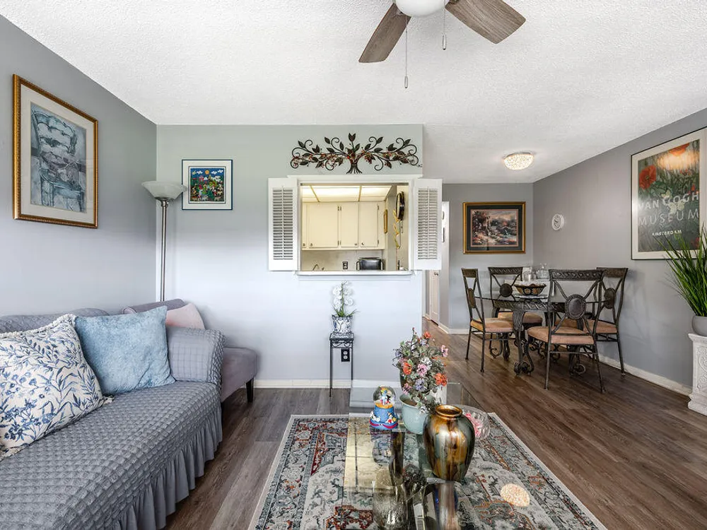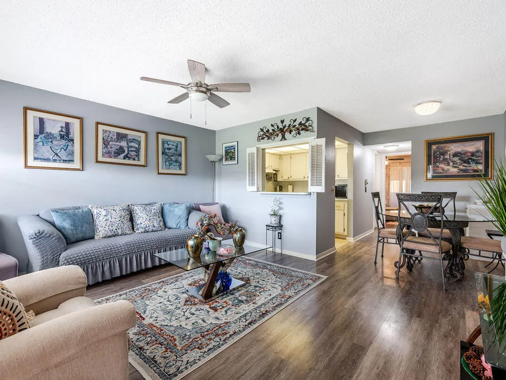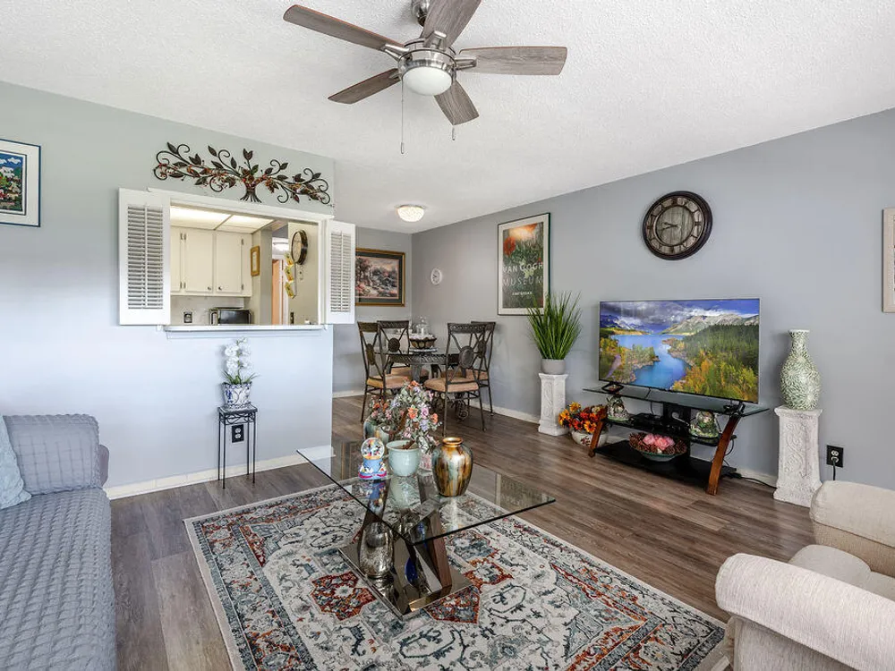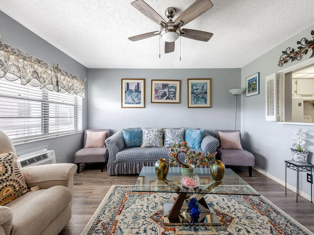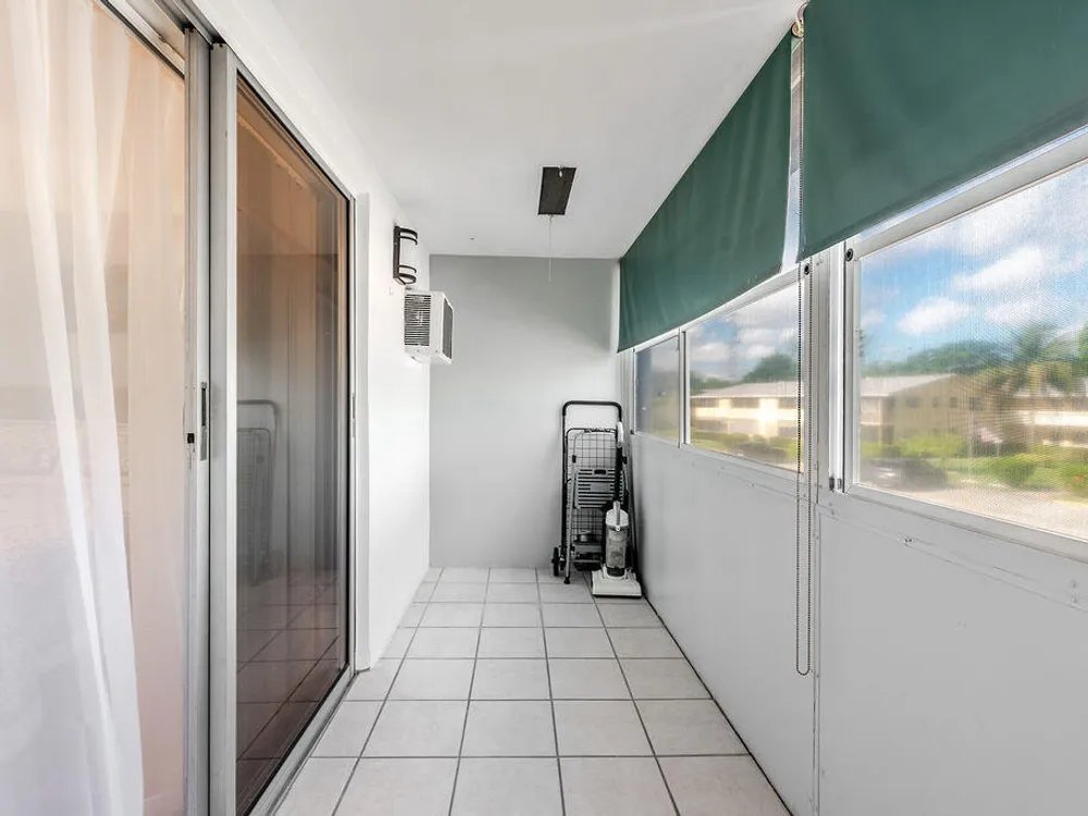 Welcome to this well-maintained second-floor condo in the sought-after gated community of Century Village in West Palm Beach. This light-filled 1-bedroom, 1-bath unit offers a comfortable and convenient lifestyle with 24/7 security. Enjoy the ease of access to nearby amenities--just a short walk to the pool, laundry facilities, and a private storage room. The condo features a kitchen with a passthrough to the living area, a large pantry, and durable laminate flooring throughout. The spacious bedroom offers generous closet space, while the screened-in patio provides a peaceful spot to relax.