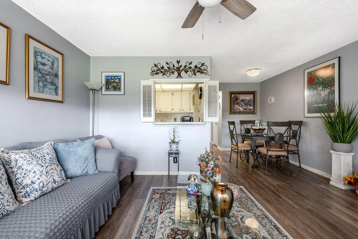 Welcome to this well-maintained second-floor condo in the sought-after gated community of Century Village in West Palm Beach. This light-filled 1-bedroom, 1-bath unit offers a comfortable and convenient lifestyle with 24/7 security. Enjoy the ease of access to nearby amenities—just a short walk to the pool, laundry facilities, and a private storage room. The condo features a kitchen with a passthrough to the living area, a large pantry, and durable laminate flooring throughout. The spacious bedroom offers generous closet space, while the screened-in patio provides a peaceful spot to relax. Only 5 miles from Palm Beach International Airport and close to the Turnpike and I-95, Century Village is ideally positioned for travel and daily convenience. Don't miss this great opportunity to enjoy the South Florida lifestyle in a vibrant 55+ community!