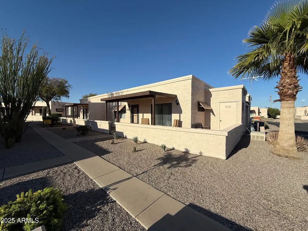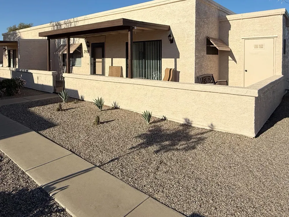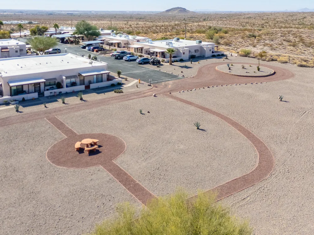 The ultimate low-cost, low-maintenance, full-time or part-time living solution. This is the finest unit to ever come to market. The current snowbird owners purchased this home in November 2021 in its original 1984 build condition, They embarked on updating this unit with no expense spared. Virtually everything in the home was replaced. The patio was tiled, a Samsung 4-piece premium kitchen appliance package was added, quartz countertops, a top-of-the-line water softener, and a new water heater was installed in March 2025. Top-of-the-line Lifeproof vinyl plank flooring, new base and door trim, and the list of updates and replaced fixtures and fittings goes on and on. 10/13/2025 complete new high efficiency 2 stage HVAC system installed with a 10 year warranty. If you were to buy a 1-bedroom, non-remodeled unit in Vista Hermosa today and embark on a remodel, it would be impossible to bring it up to anywhere near this standard when completed, at the price this home is being offered for. Situated perfectly within the community, not directly facing the resident and guest parking spots with nice desert landscape frontage directly outside the unit. Trash collection, exterior maintenance and landscaping is included in monthly HOA fee. Located in the pristine Vista Hermosa over 55 Community. Sitting high up above the city of Florence with spectacular, 360-degree views. There is a numbered parking spot and ample guest parking. The sun exposure is fantastic, rising on the patio which faces east. Vista Hermosa is a hidden gem offering peace, tranquility, and a front-row seat to stunning scenery. There is a wonderful sense of pride amongst the residents which is evident as you tour the community. Florence has that small old town feel with everything you need not far away. This is a wonderful opportunity to own a turnkey, move-in-ready home. All units and buildings had the roofs redone in 2023 and full exterior paint completed in January 2025. Enjoying the winters spent in Florence so much, the owners decided to make Florence a permanent home and upsized to Sun City Anthem at Merrill Ranch retirement community, hence this home has now come to market. Required disclosure: one of the owners is a licensed Realtor and holds an active Real Estate license in the state of Arizona.