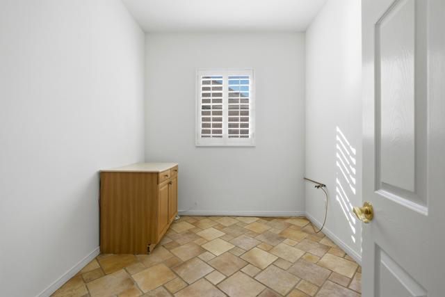 Sun City Palm Desert - Monaco (Extended). Located on a quiet cul-de-sac. this extended Monaco offers exceptional flexibility with three extended suites, including a rare double guest suite -- ideal for hosting guests or accommodating an in-home caregiver. The oversized east-facing rear yard is a true highlight, featuring a pool and spa surrounded by an expansive flagstone patio, lush landscaping, and a built-in BBQ island -- perfect for entertaining or relaxing in privacy. The gated front courtyard and leaded glass entry doors create inviting curb appeal. Inside, 12-foot ceilings elevate the greatroom, while mosaic tile and Pergo flooring, along with plantation shutters throughout, provide a cohesive and upgraded finish. The kitchen is designed for both function and gathering, featuring composite counters, a large island with breakfast bar, double wall ovens, a spacious pantry, and a skylight that fills the space with natural light. The extended primary suite offers direct access to the rear patio, a walk-in closet with built-in storage plus a bonus closet. The ensuite bath includes dual sinks with a sitting vanity, a walk-in shower, and a separate stall shower with textured glass doors. The double guest bedroom suite includes a wet bar, two closets, and a private bath with shower/tub combination. The additional extended guest suite also has its own shower/tub bathroom. A separate utility space or office adds even more versatility. The 2+ golf cart garage includes built-in cabinetry and overhead hanging rack storage. One AC unit was replaced in 2025, the other in 2013. A rare extended Monaco offering space, privacy, and resort-style outdoor living.