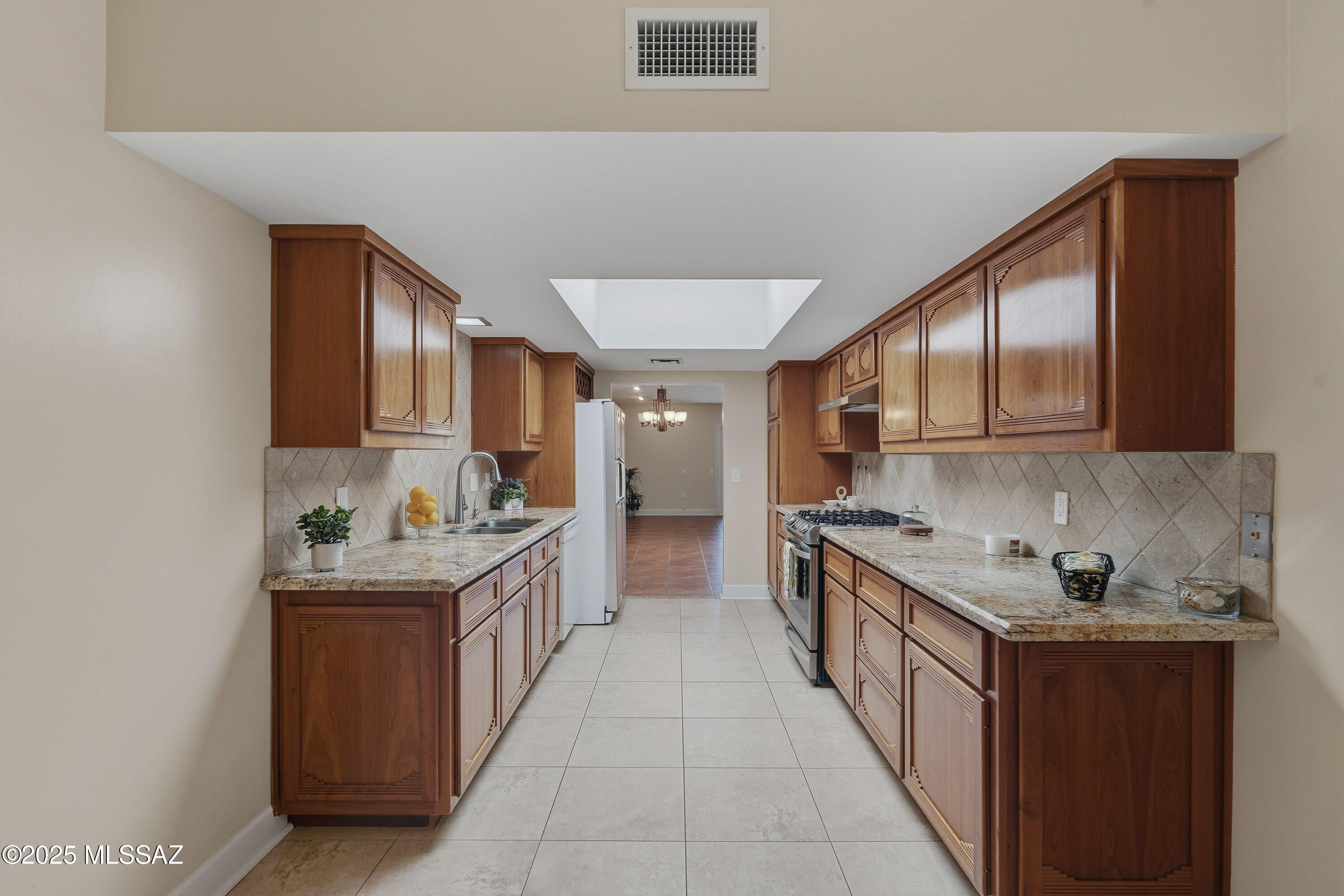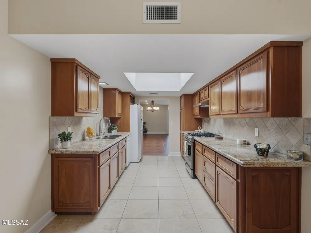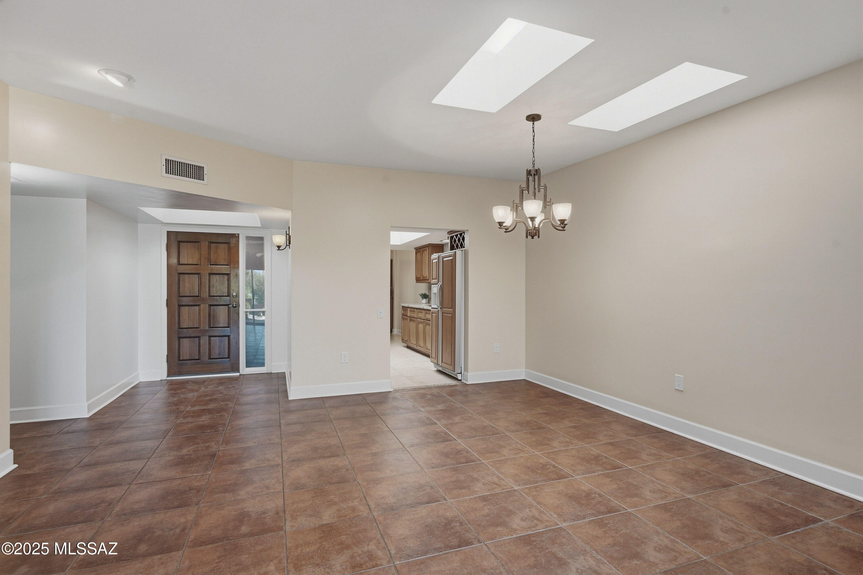 Experience comfortable desert living in this solidly constructed 2-bedroom plus den townhouse. This charming home features gorgeous tile flooring throughout and skylights that flood the interior with natural light, creating a warm and welcoming atmosphere.The spacious living and dining areas are perfect for entertaining, complete with a wet bar for your gatherings. The master suite includes a walk-in closet, offering both comfort and functionality. A versatile den provides space for a home office, craft room, or guest area.Enjoy mountain views from the covered back patio, surrounded by mature landscaping that offers privacy and tranquility. Some mountain views can also be enjoyed from the front of the home, adding to the serene setting.