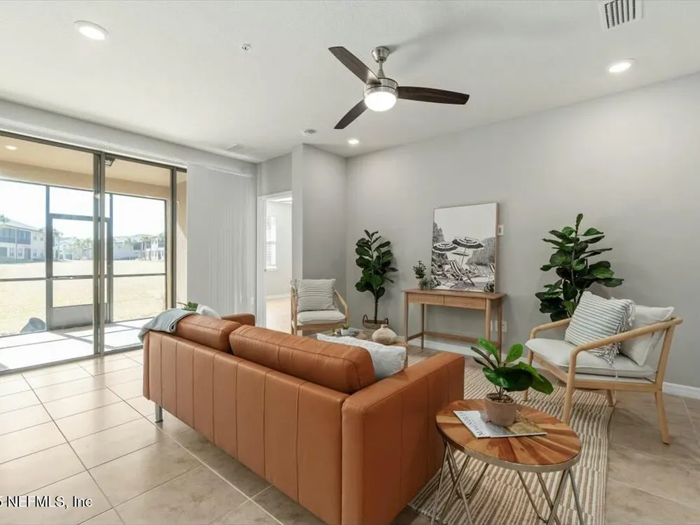 Welcome to 394 Orchard Pass Ave in the highly desirable Del Webb Ponte Vedra in Nocatee. Designed for both comfort and style, this meticulously maintained Heron floorplan offers 2 bedrooms, 2 baths, plus a versatile flex room ideal for an office, den, or guest space. Inside, the open-concept layout is enhanced by tile flooring and abundant natural light. The gourmet kitchen boasts quartz countertops, stainless steel appliances, cabinetry with pull out drawers, and an oversized island, making it the perfect space for entertaining. The spacious primary suite serves as a private retreat, featuring an ensuite bath with dual vanities with extra drawers, a walk-in shower, and a large closet. The secondary bedroom and bath provide comfort and privacy for guests. Step outside to enjoy the screened lanai, overlooking a tranquil backyard—a As a resident of Del Webb Ponte Vedra, you'll have access to world-class amenities, including the Anastasia Club, which offers a resort-style pool, indoor lap pool, state-of-the-art fitness center, pickleball & tennis courts, walking trails, and a full social calendar. Plus, you're just minutes from Nocatee Town Center, shopping, dining, and the stunning Ponte Vedra beaches. This is your opportunity to enjoy luxury, low-maintenance living in one of Northeast Florida's premier active-adult communities!