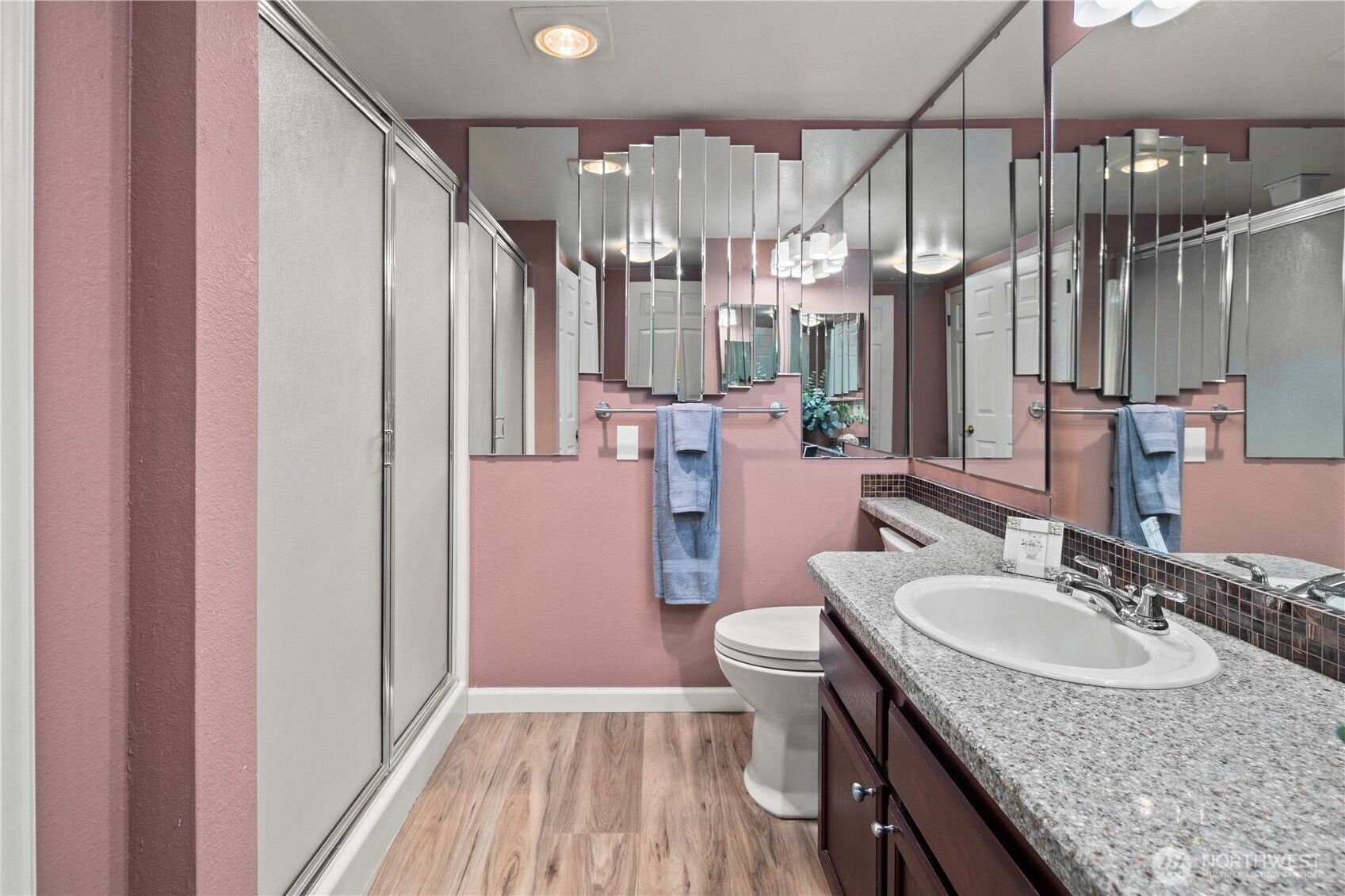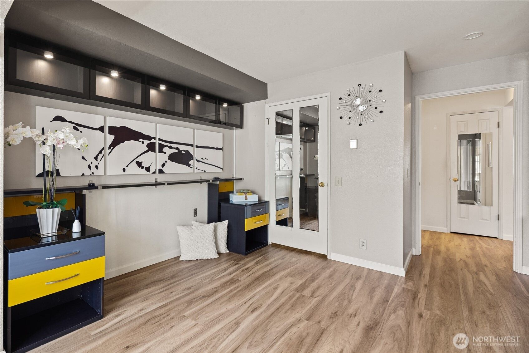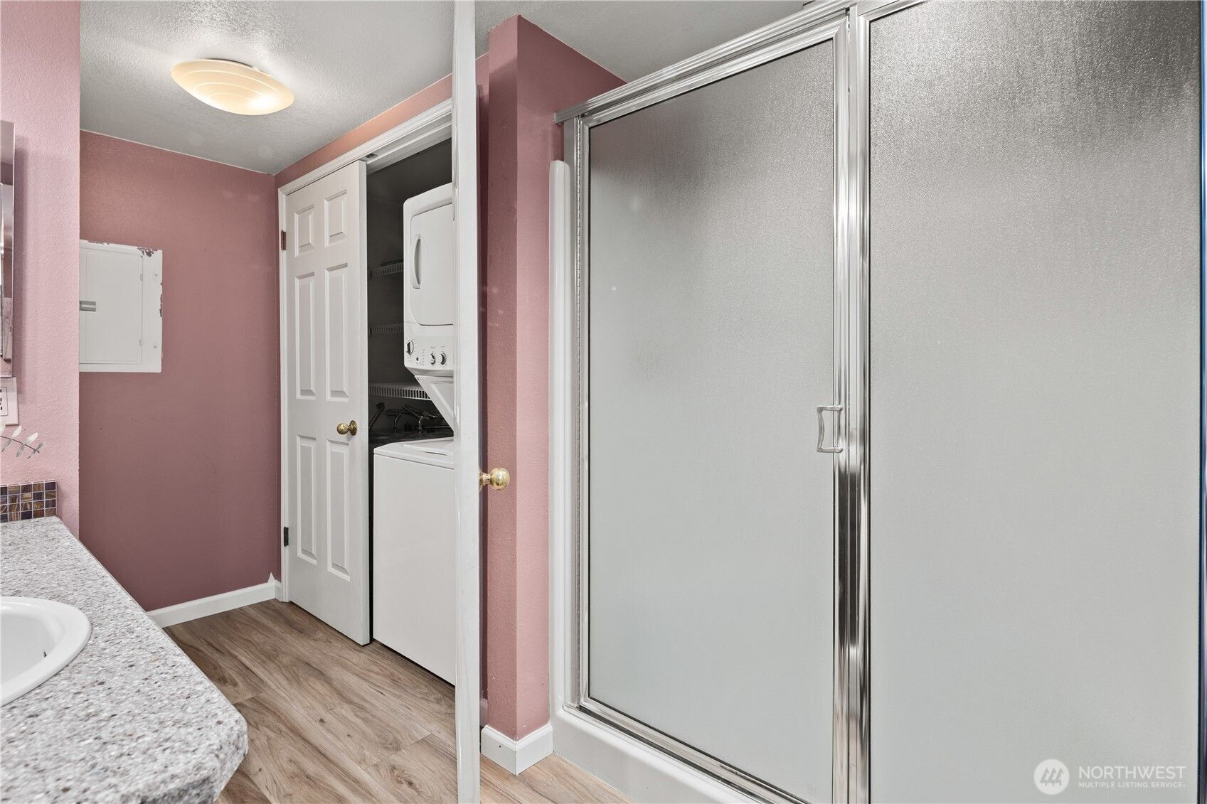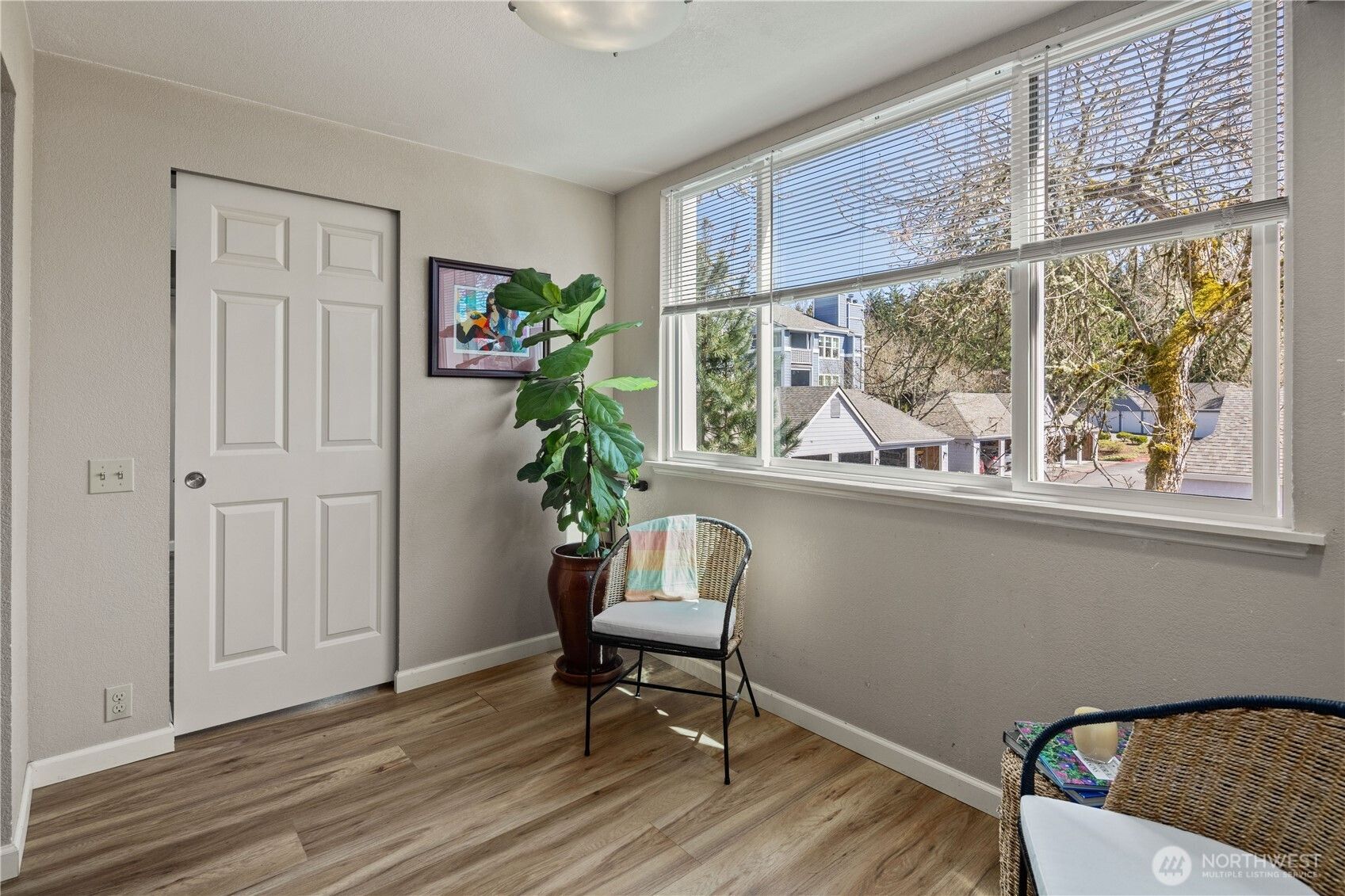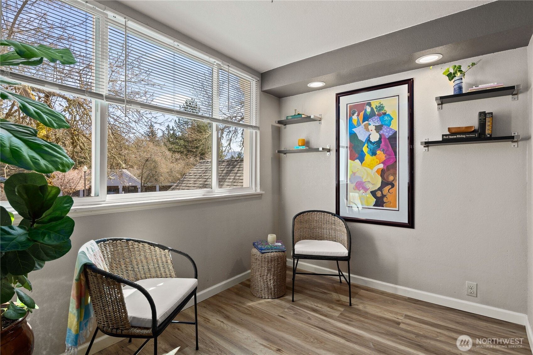 This charming 1-bedroom, 1-bath condo blends comfort, convenience, and effortless living in premier 55+ Providence Point. Step inside to luxury vinyl plank flooring throughout, a modern kitchen with stainless steel appliances (all under two years old), stone countertops, under-cabinet task lighting and an open living–dining layout ideal for everyday living. An enclosed sunroom extends the living space, offering a bright, versatile retreat perfect for lounging, hobbies, or a dedicated workspace. A pocket door allows you to close it off for added privacy. The spacious bedroom includes a walk-in closet, and the bathroom features a step-in shower for easy access. Additional perks include a private storage room just steps from the unit, an elevator close by, and an assigned parking space. The Winthrop Building enhances daily life with guest parking, inviting gathering areas on every floor, and a west-facing patio ideal for soaking up afternoon sun or enjoying friendly conversation. Residents enjoy a vibrant independent-living community with exceptional amenities: an indoor pool, clubhouse, fitness classes, tennis and pickleball courts, putting green, pea-patch gardens, scenic walking trails, and a full calendar of social, cultural, and recreational events.