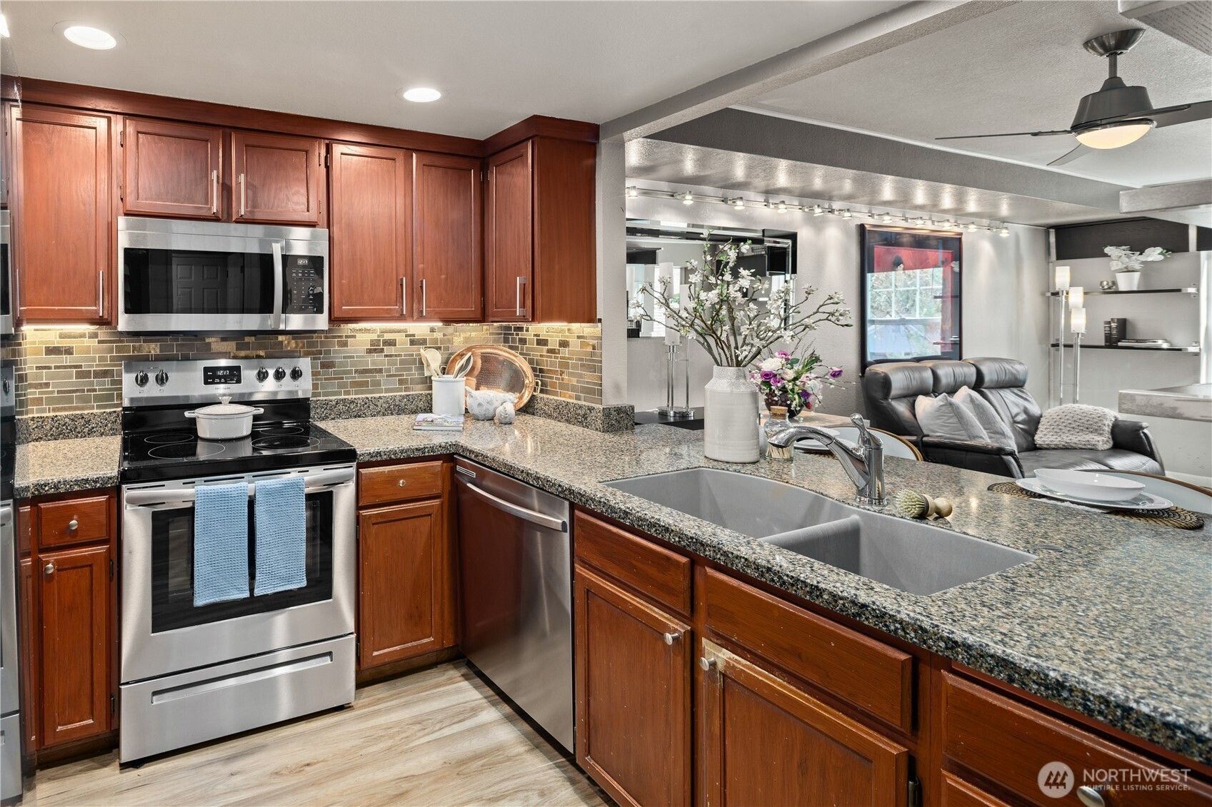 - Dishwasher, Disposal, Dryer, Microwave, Refrigerator, Stove(s)/Range(s), Washer